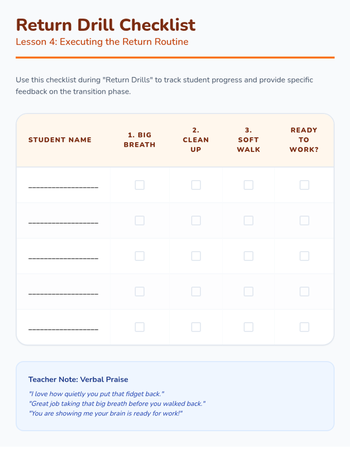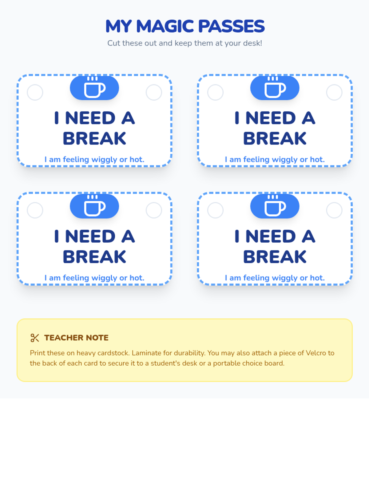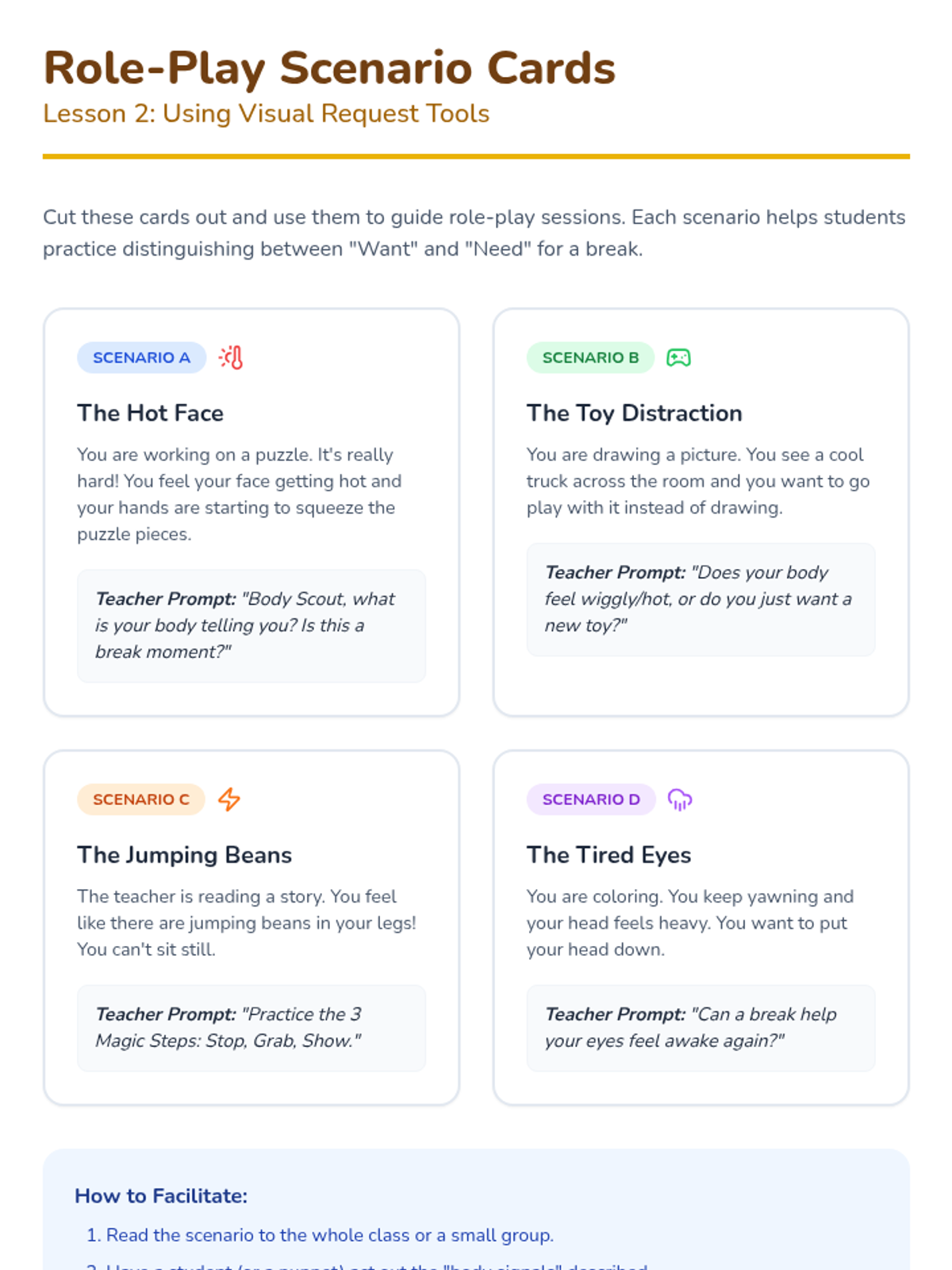 A 5-lesson sequence for Kindergarten students focusing on interoception and the procedural steps of requesting and returning from a break to support self-regulation.