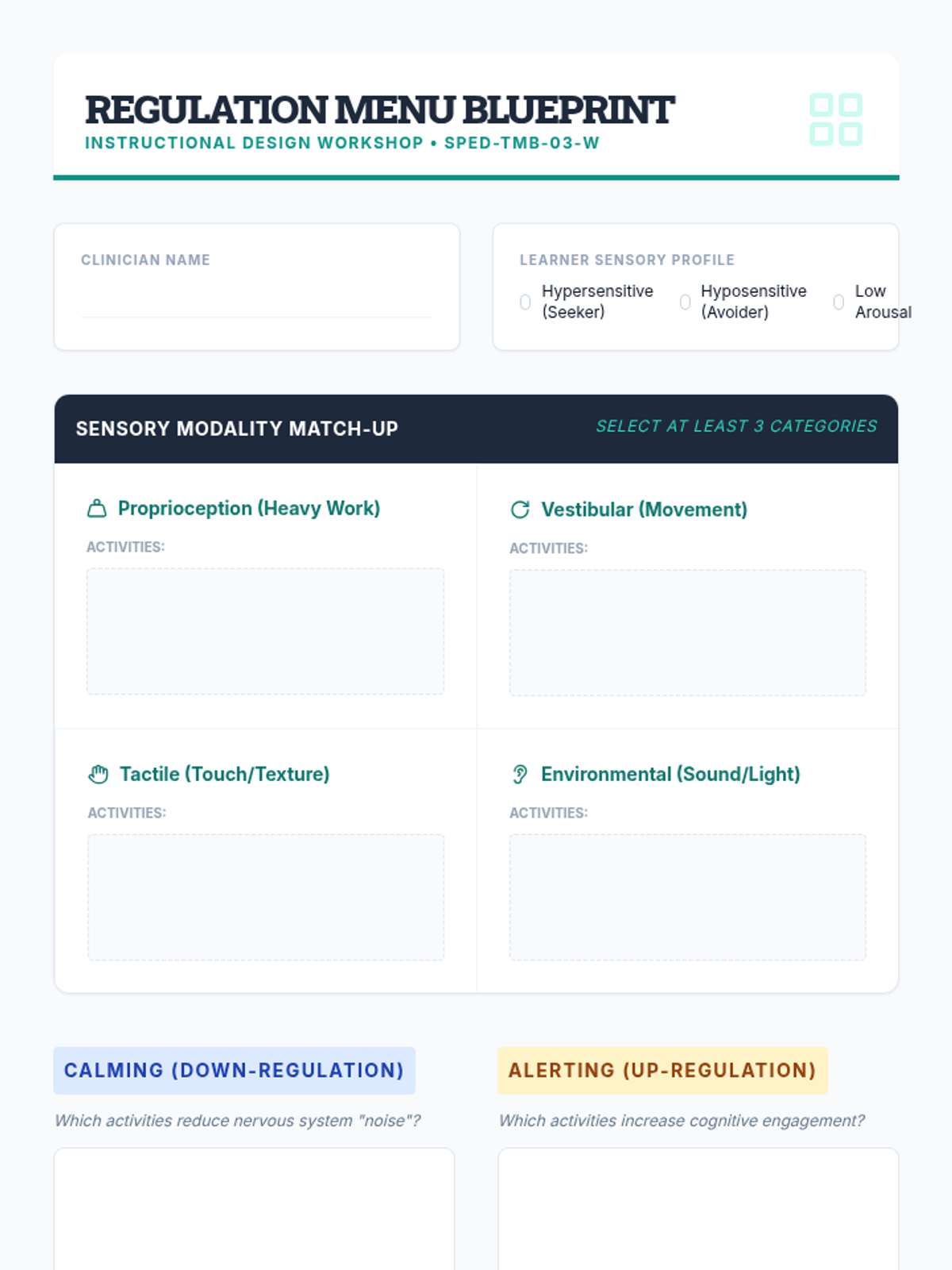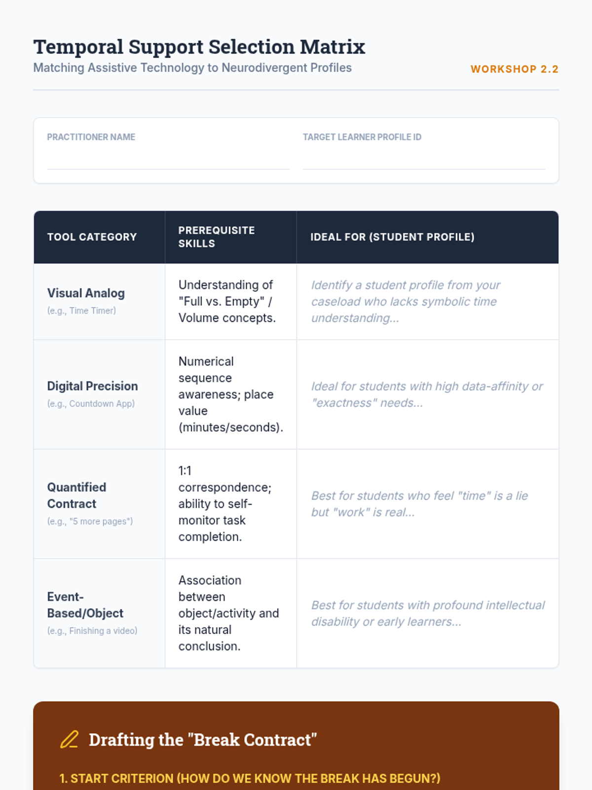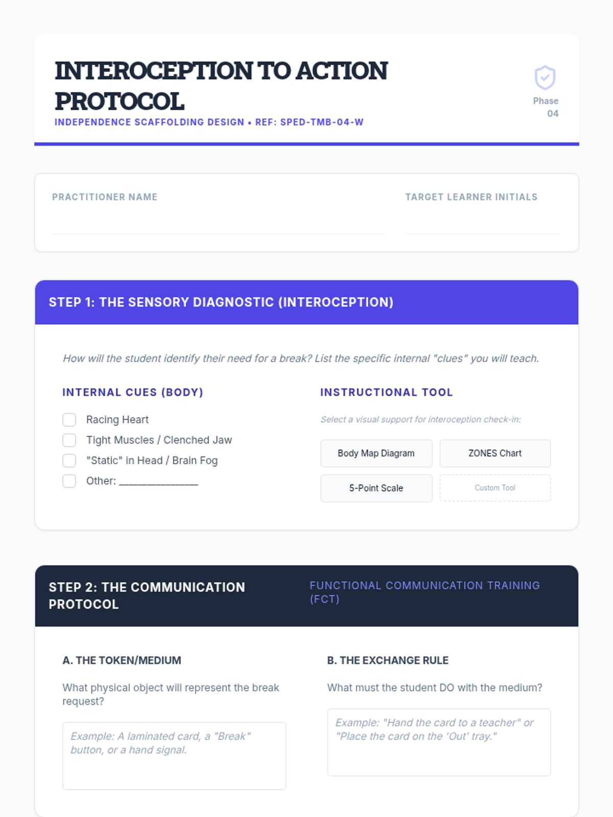 This advanced sequence guides graduate students through the design, implementation, and evaluation of strategic break protocols for neurodivergent learners. It covers the neurobiological basis for self-regulation, visual supports, sensory modality matching, and data-driven efficacy evaluation to foster student independence.
