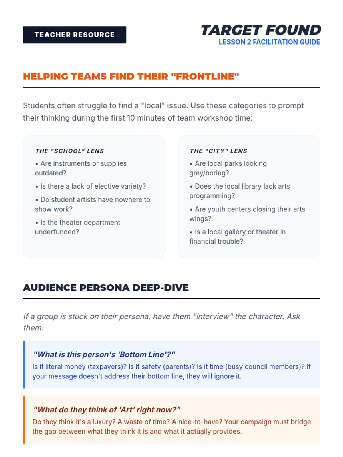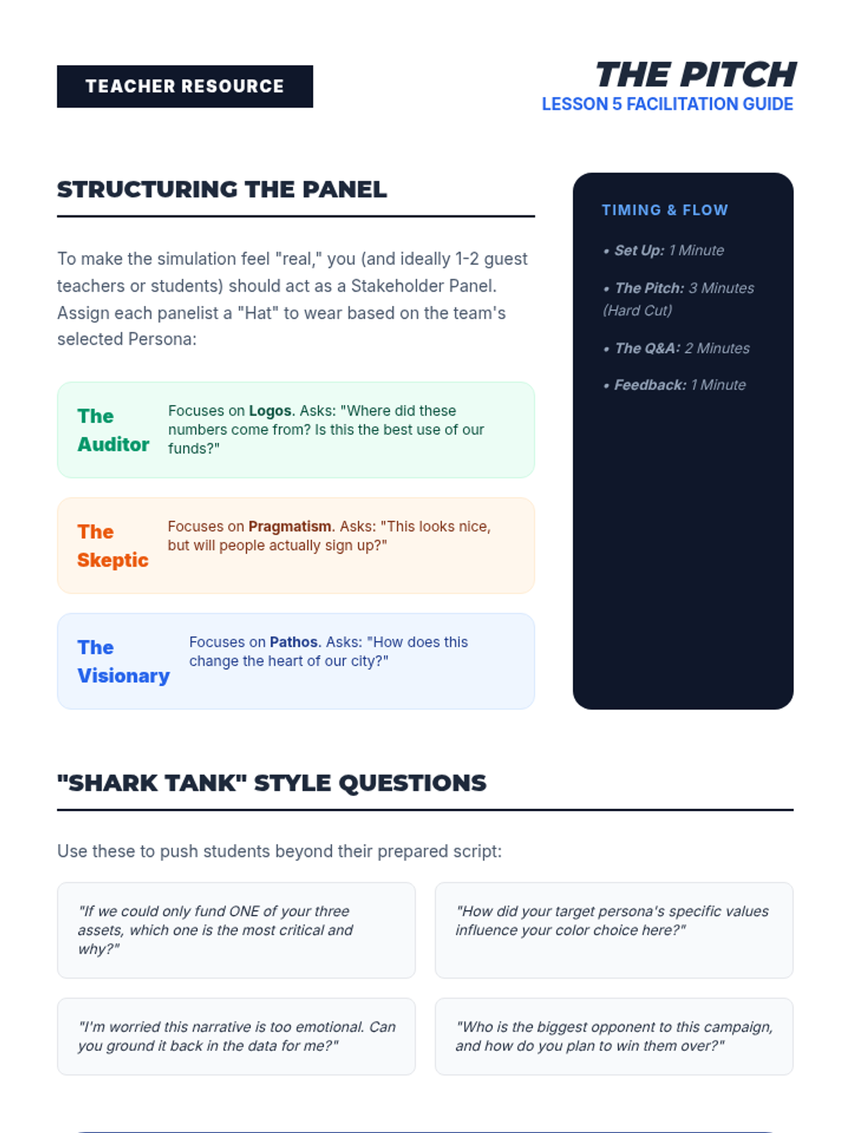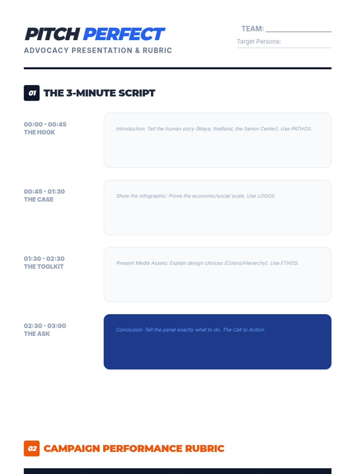 A project-based sequence where 10th-grade students design a comprehensive media campaign for a local arts initiative, mastering rhetorical analysis, audience profiling, data visualization, and professional pitch techniques.
