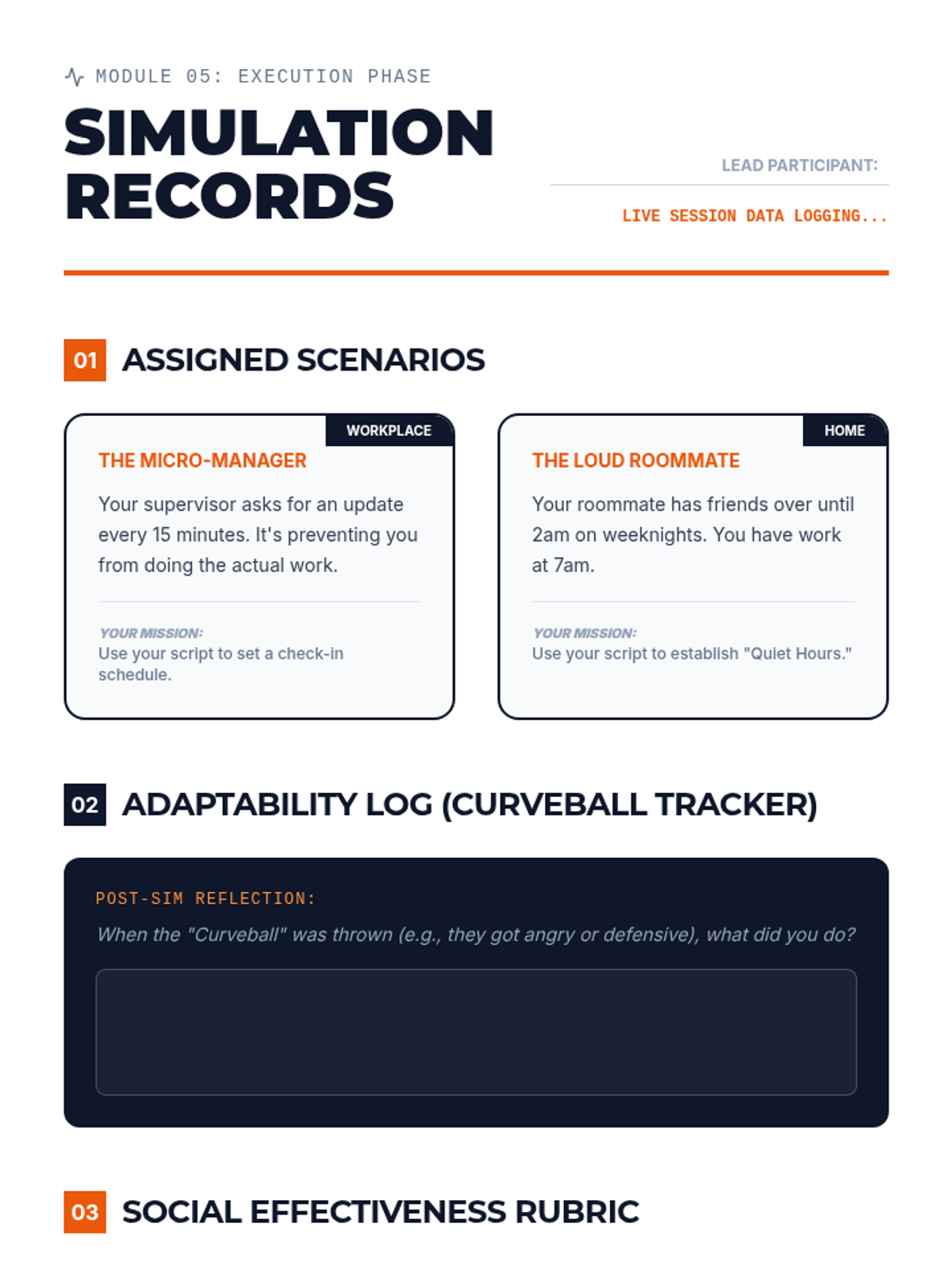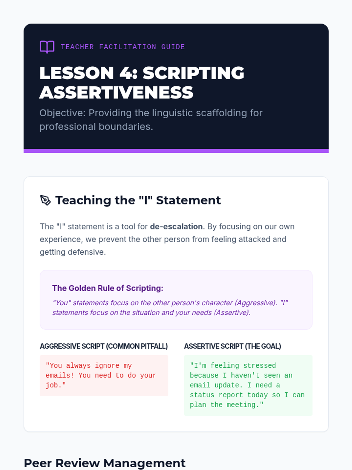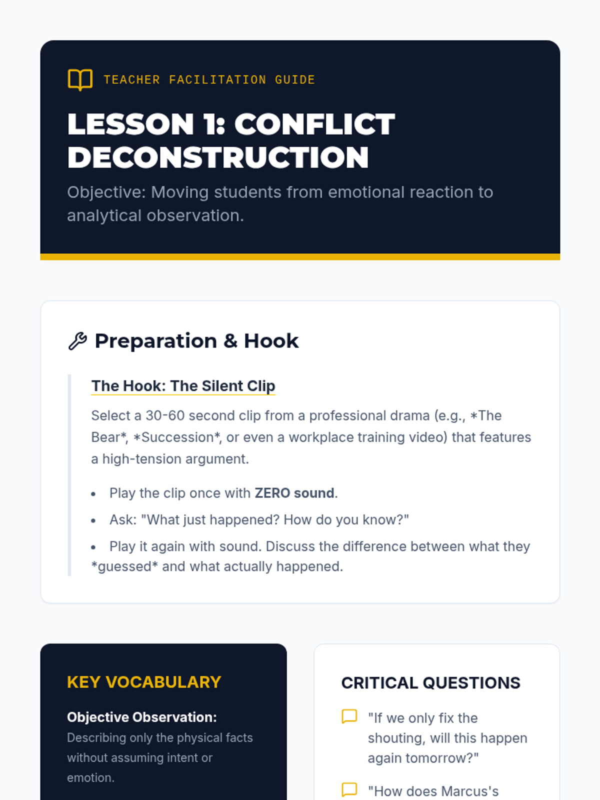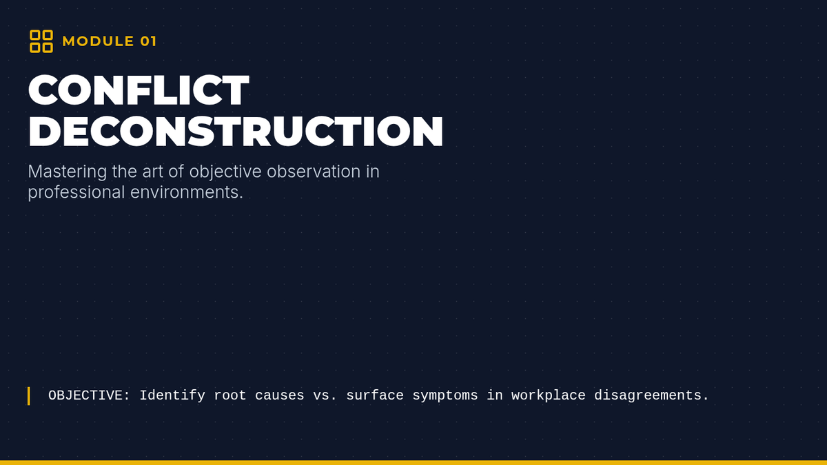 A comprehensive 5-lesson sequence for 12th-grade students focusing on identifying, analyzing, and resolving social conflicts in professional and collegiate environments. Students progress from deconstructing conflict to real-time role-play simulations.