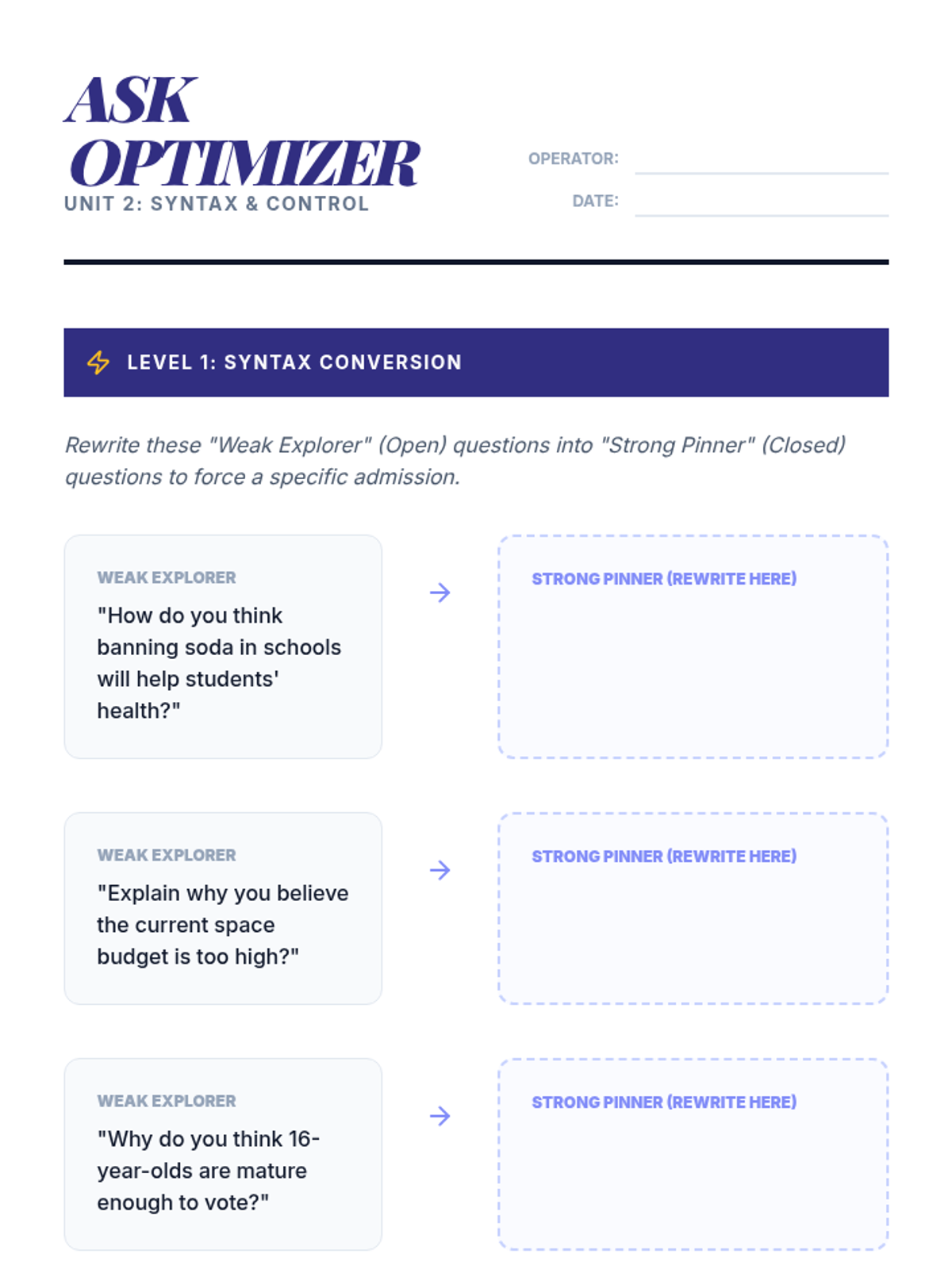This sequence teaches 8th-grade students the art of Cross-Examination (CX) in competitive debate. It covers strategic questioning, open vs. closed inquiry, building logical traps, defensive answering techniques, and synthesizing CX admissions into rebuttal speeches.