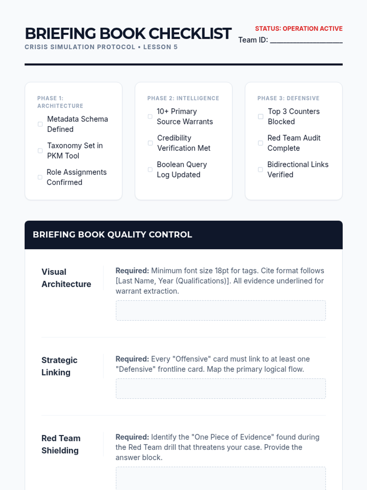 A graduate-level sequence focused on the logistical and strategic architecture of debate research. Students learn to design, implement, and stress-test sophisticated knowledge management systems for rapid information retrieval in competitive settings.