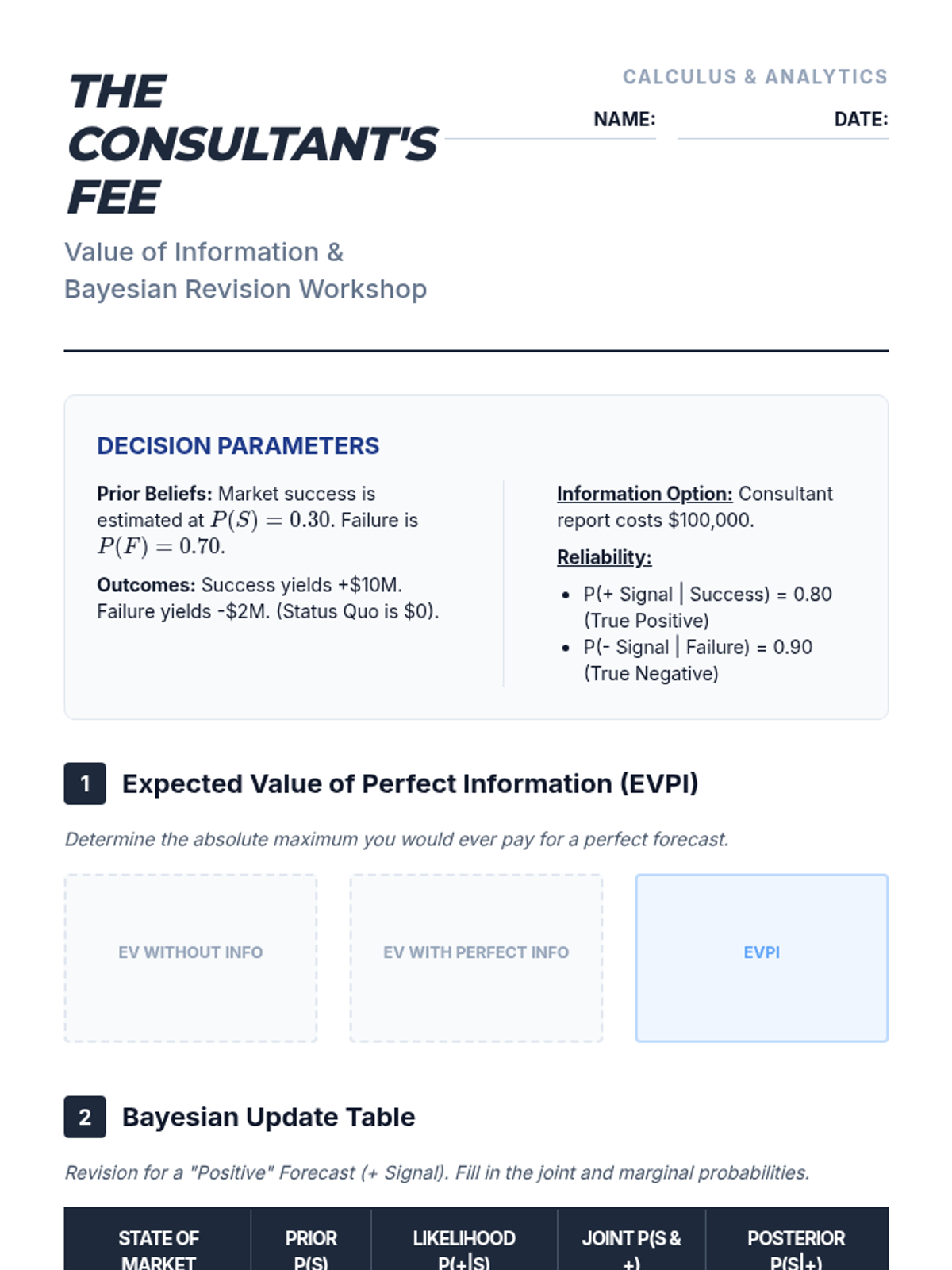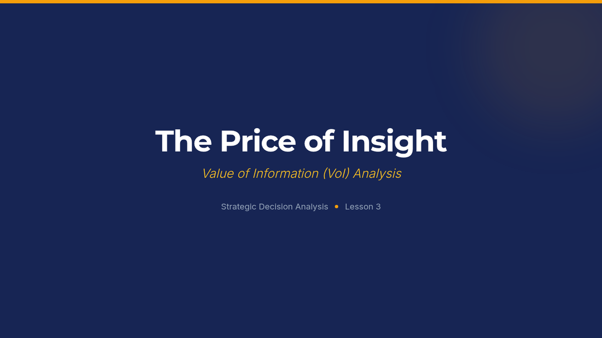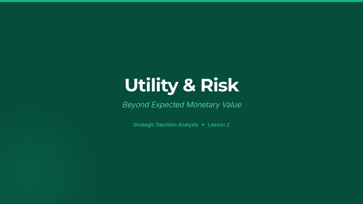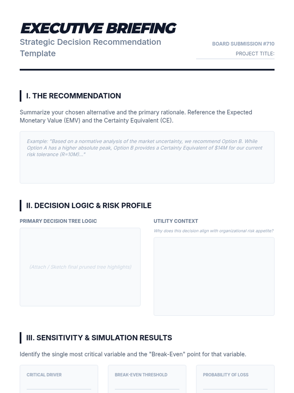 A rigorous graduate-level sequence on normative decision theory, covering decision trees, utility theory, Value of Information (VoI), and sensitivity analysis for strategic organizational decision-making.
