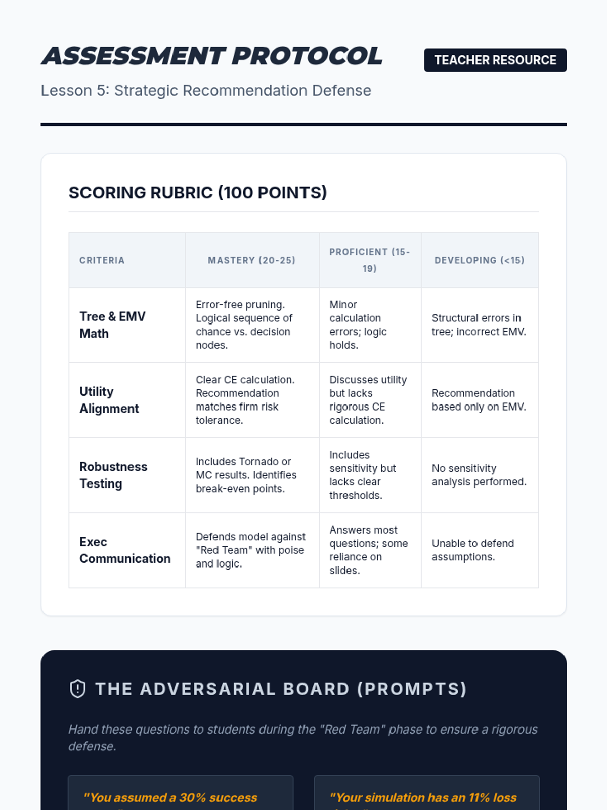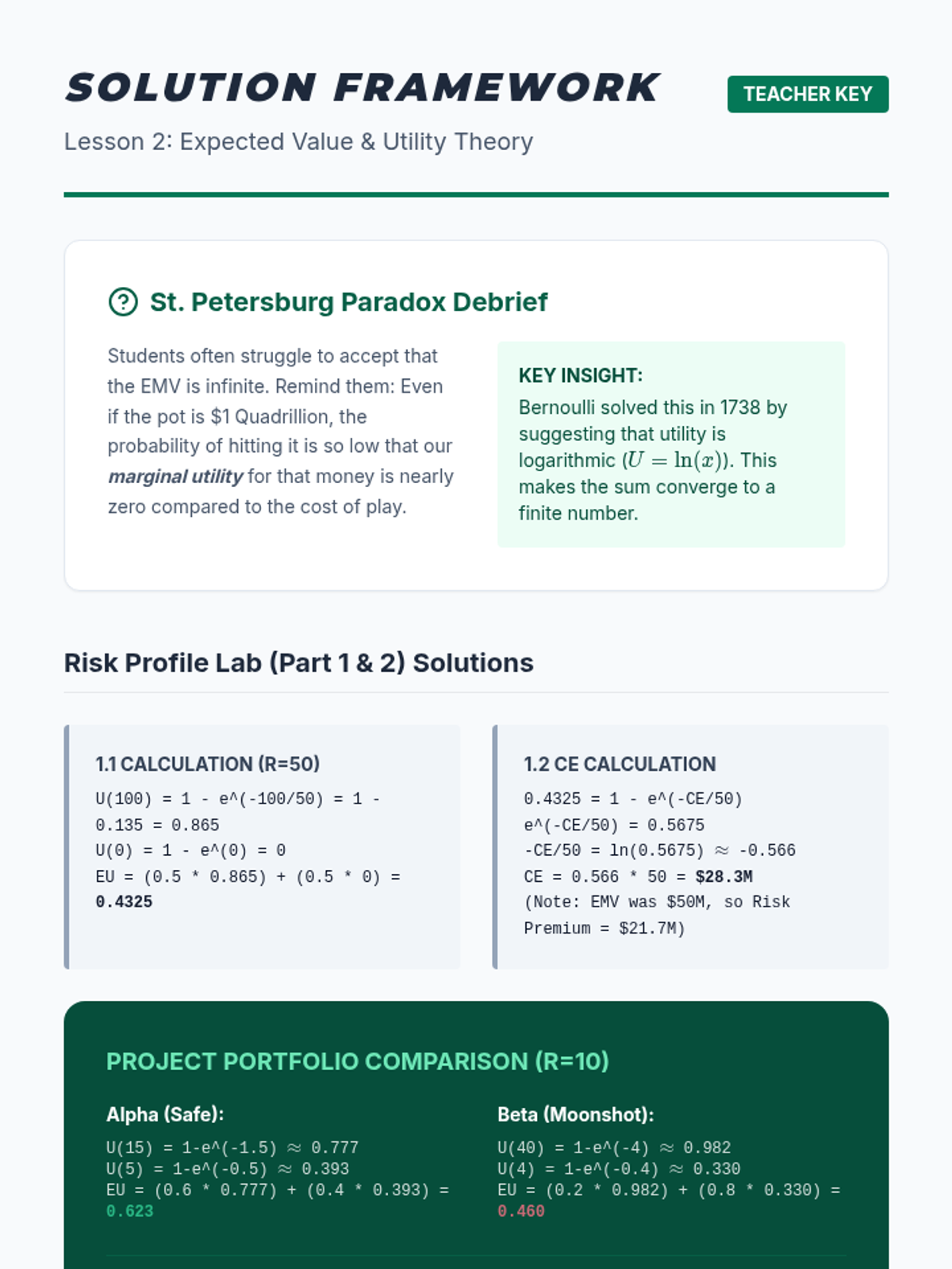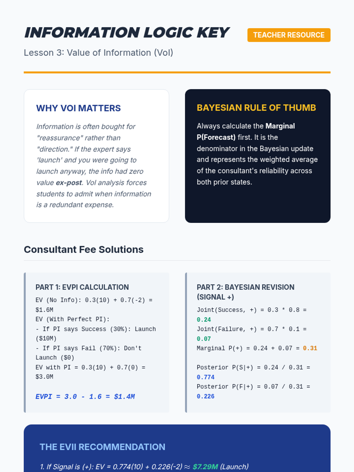 A rigorous graduate-level sequence on normative decision theory, covering decision trees, utility theory, Value of Information (VoI), and sensitivity analysis for strategic organizational decision-making.