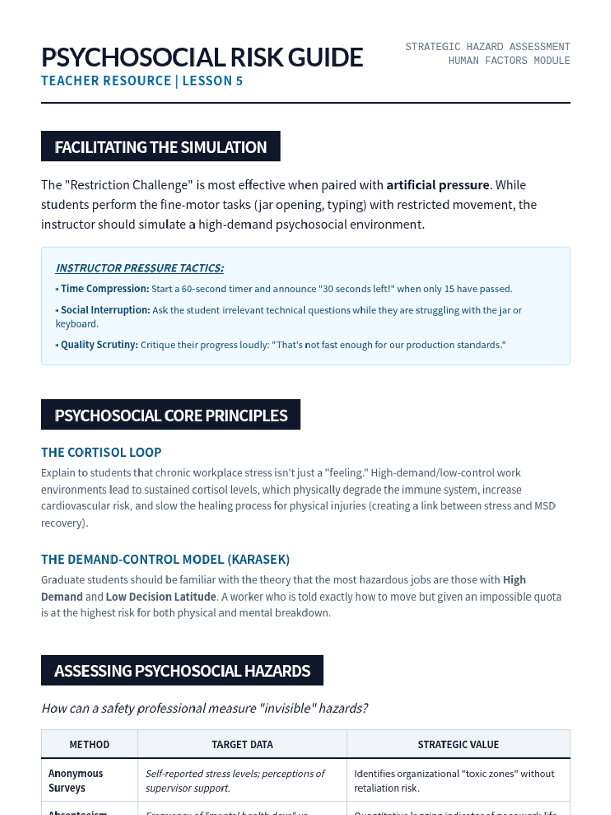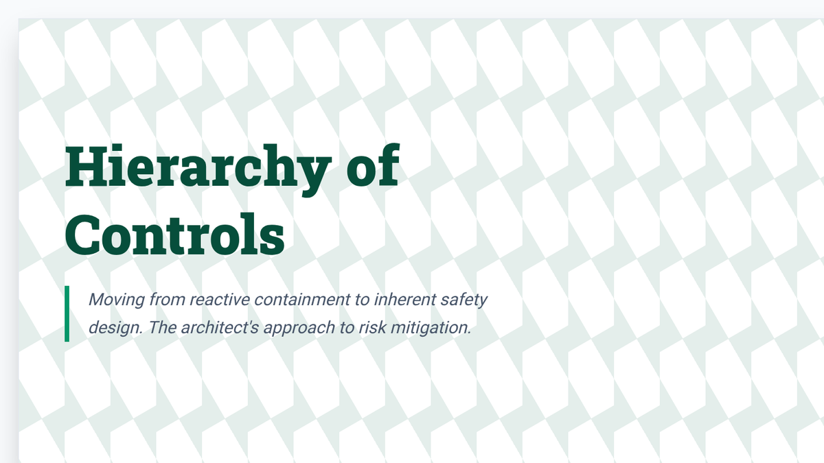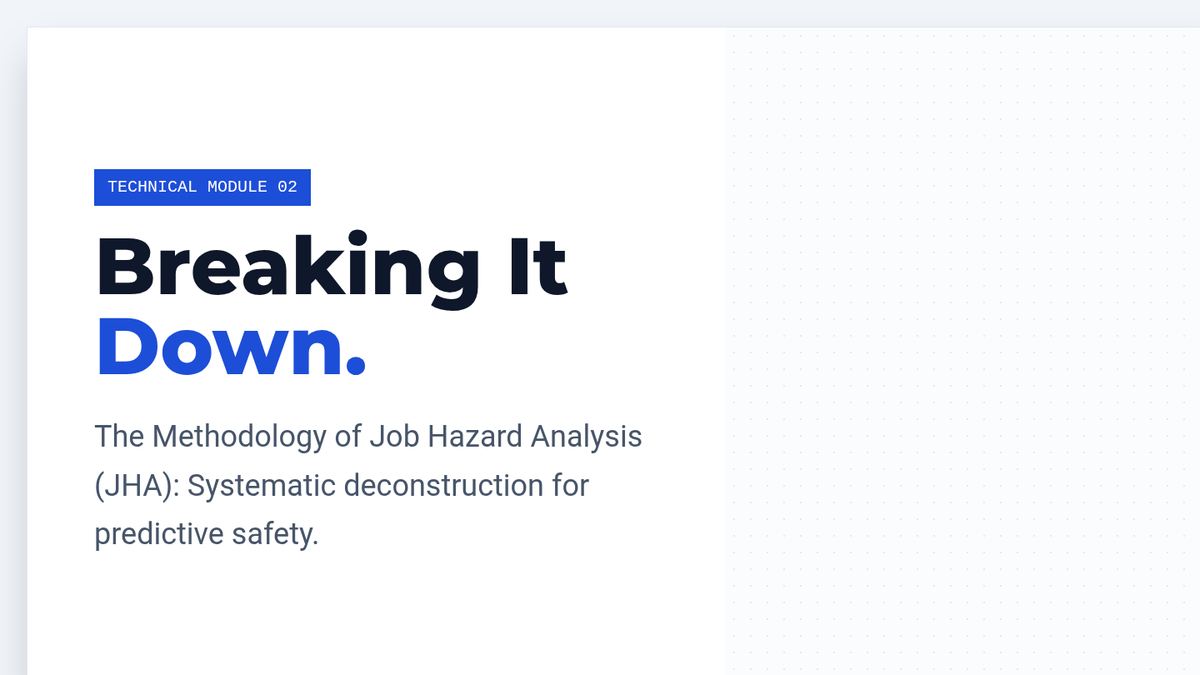 A graduate-level sequence focused on systematic hazard identification and risk control. Students master Industrial Hygiene, Job Hazard Analysis (JHA), Hierarchy of Controls, and Hazard Communication (GHS) to develop predictive safety strategies in high-risk environments.