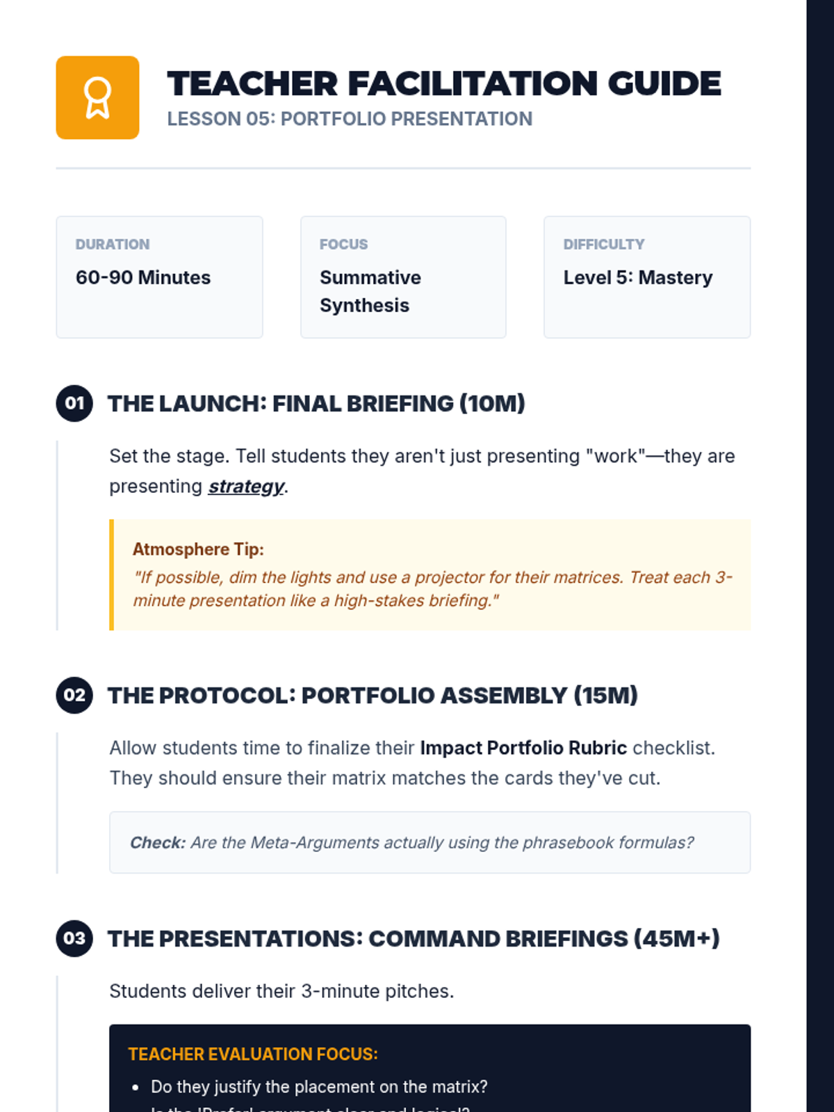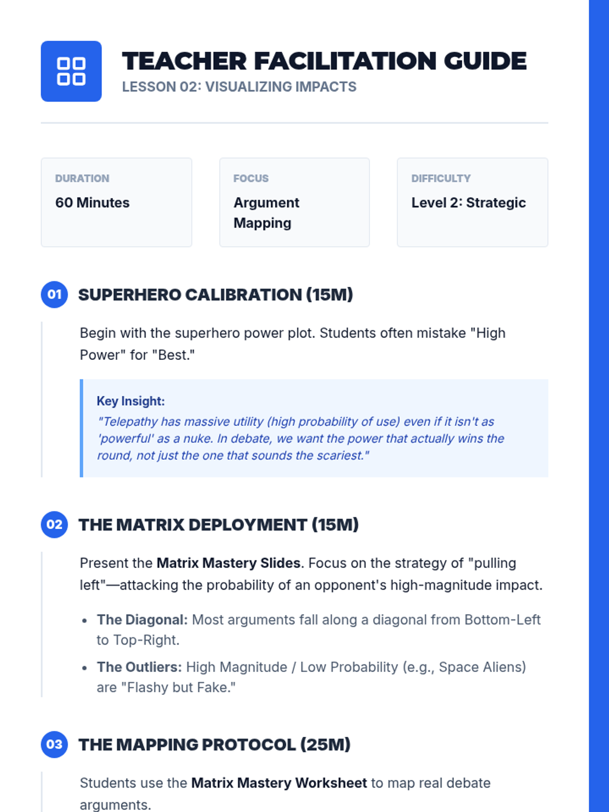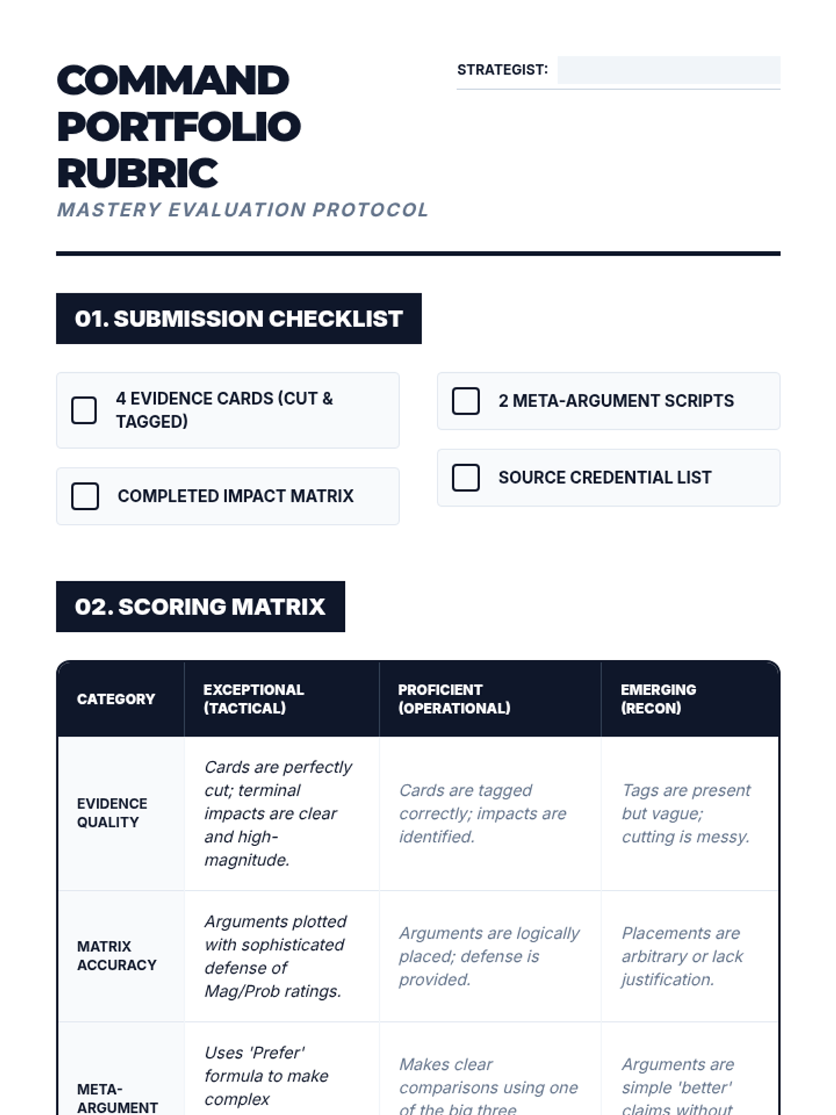A 9th-grade unit on Impact Calculus, focusing on evidence synthesis, strategic argument mapping using matrices, and the construction of meta-arguments to win high-stakes debates.