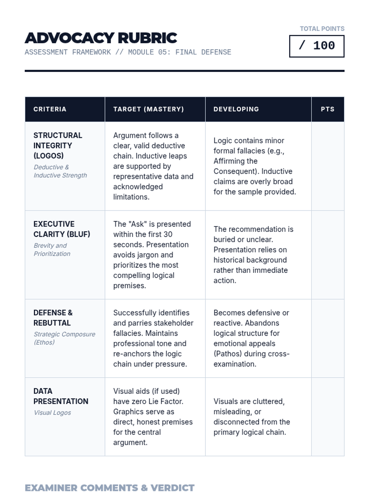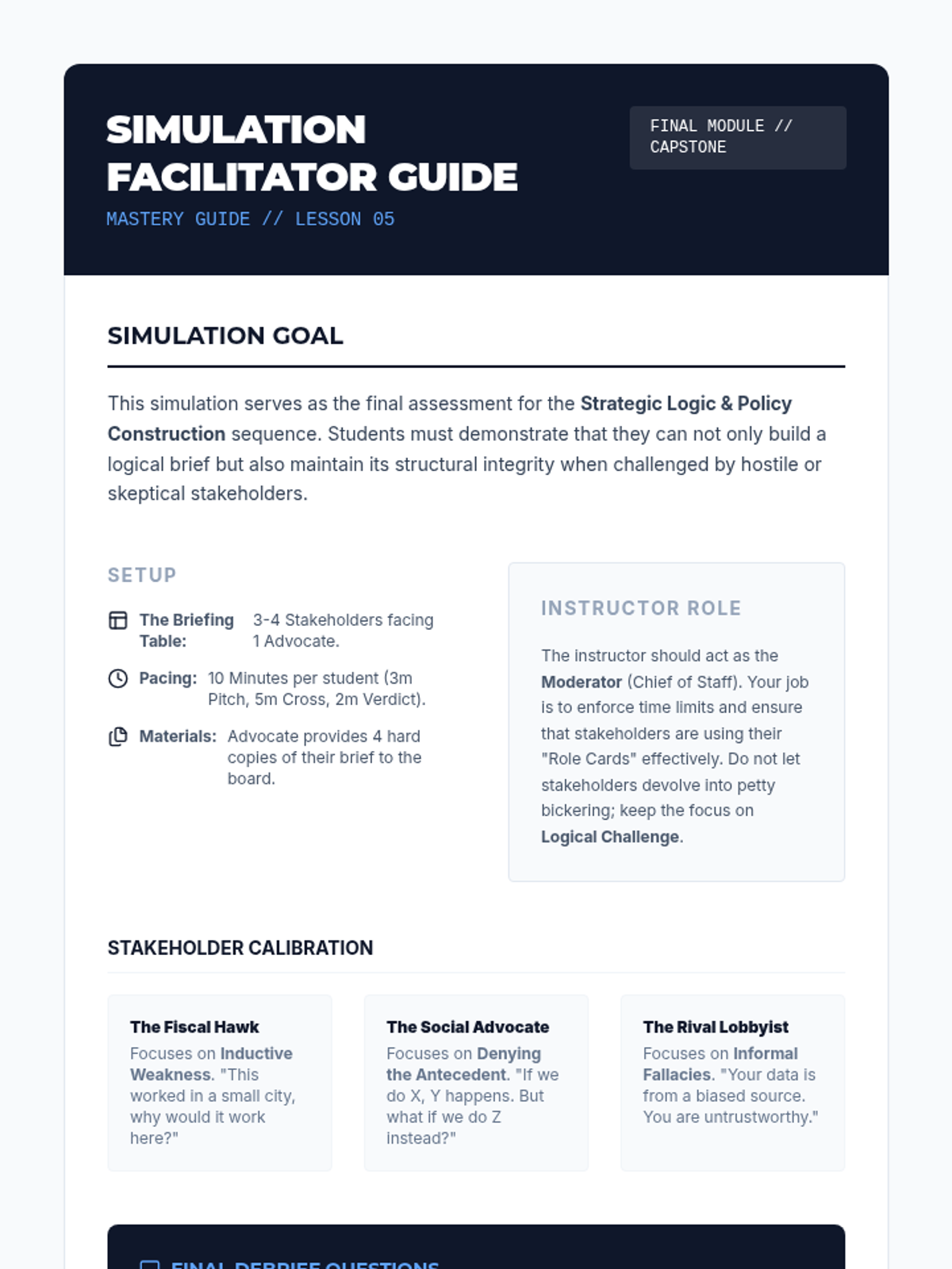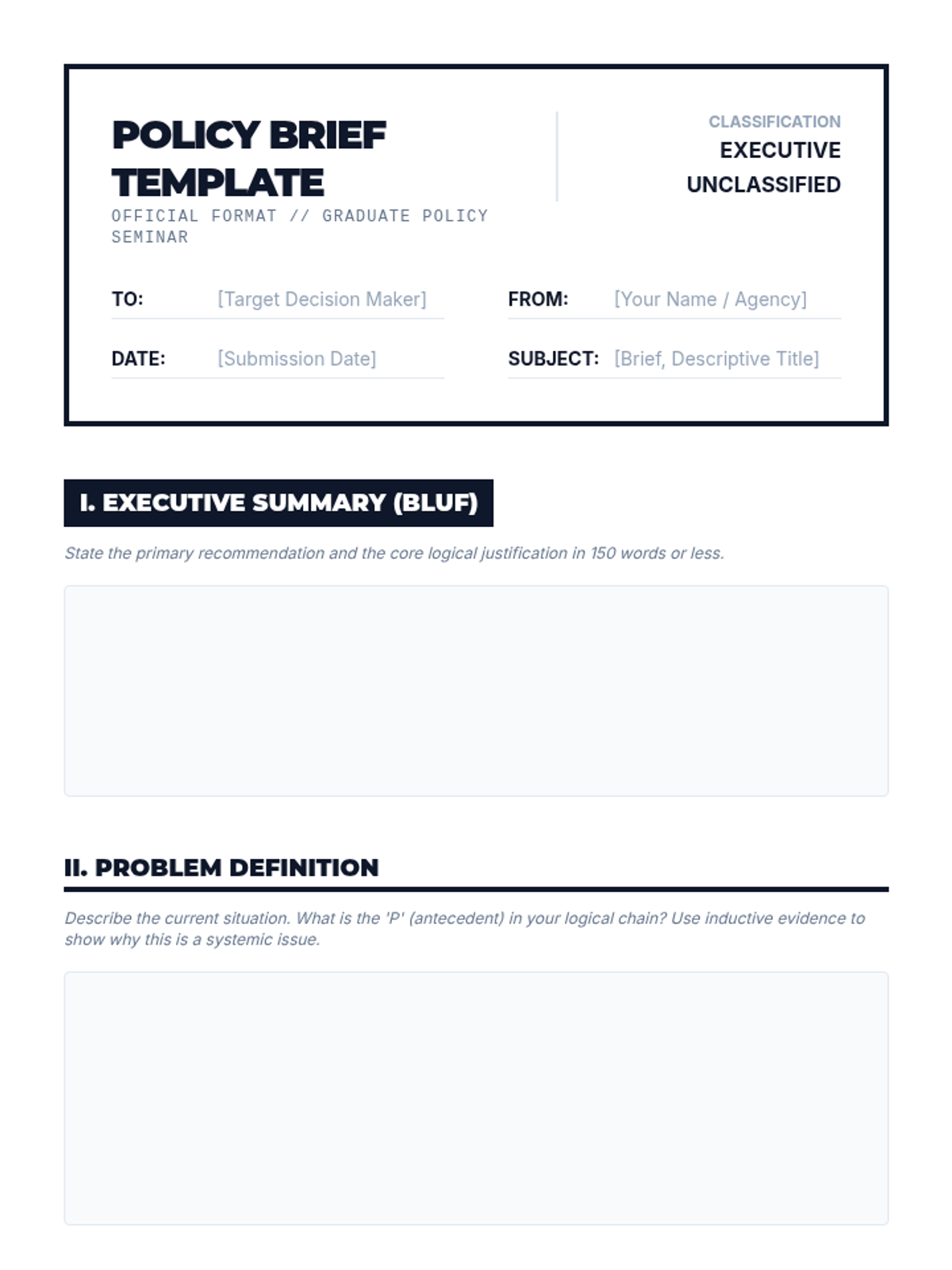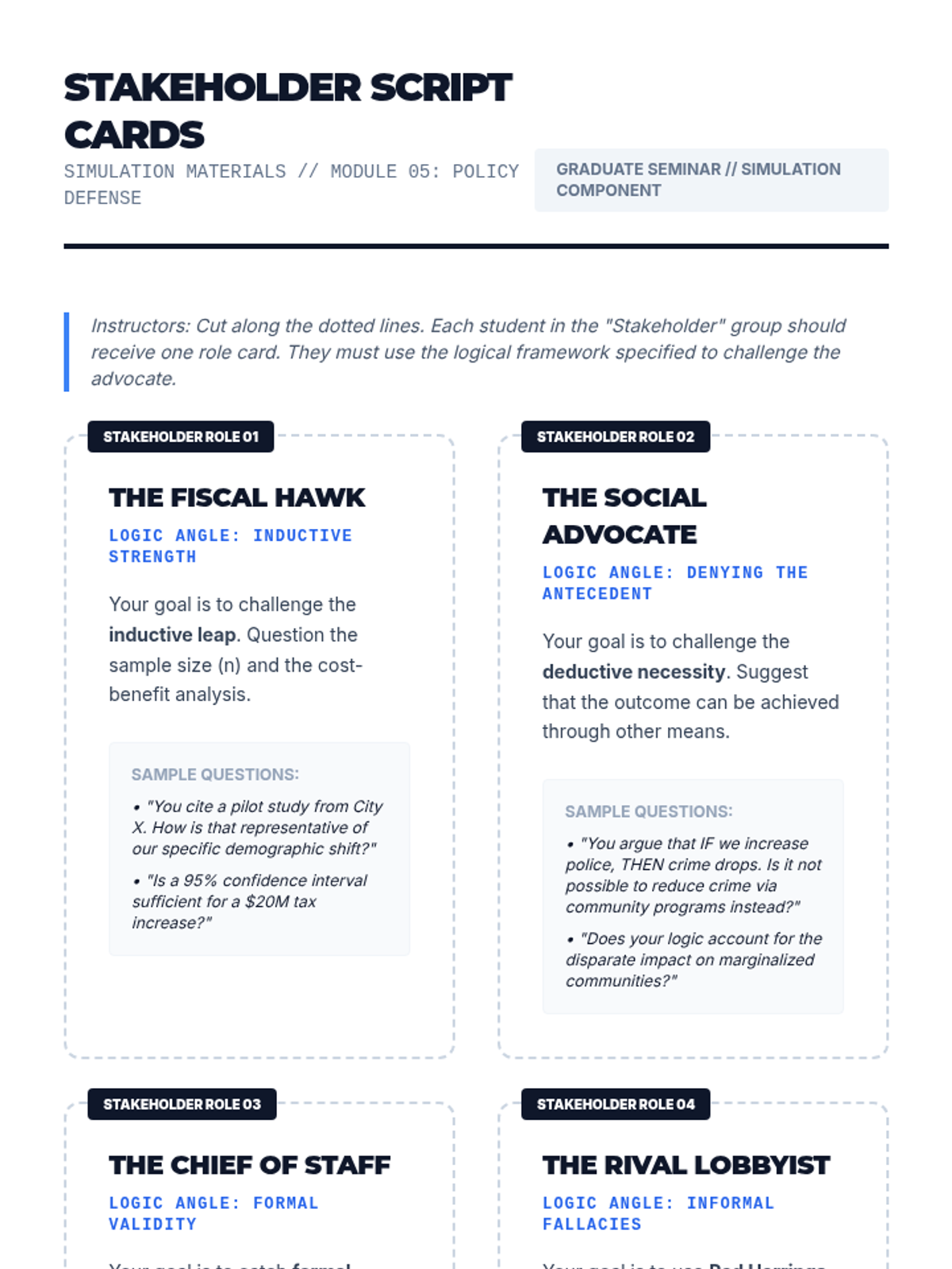 This sequence focuses on the rigorous application of deductive and inductive reasoning within the context of policy formulation and advocacy for graduate students. Participants will move from abstract logical structures to the creation and defense of a professional policy brief.