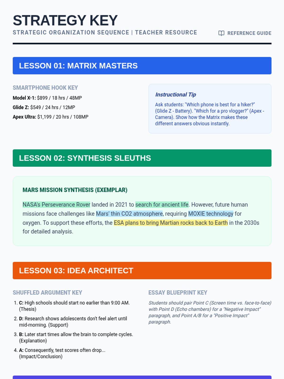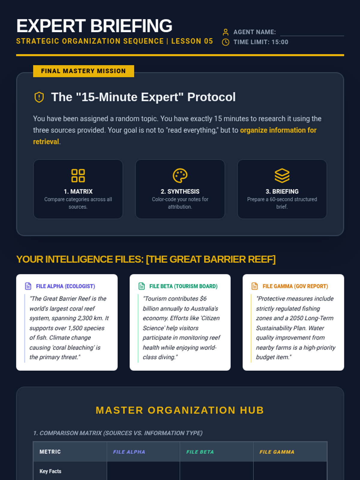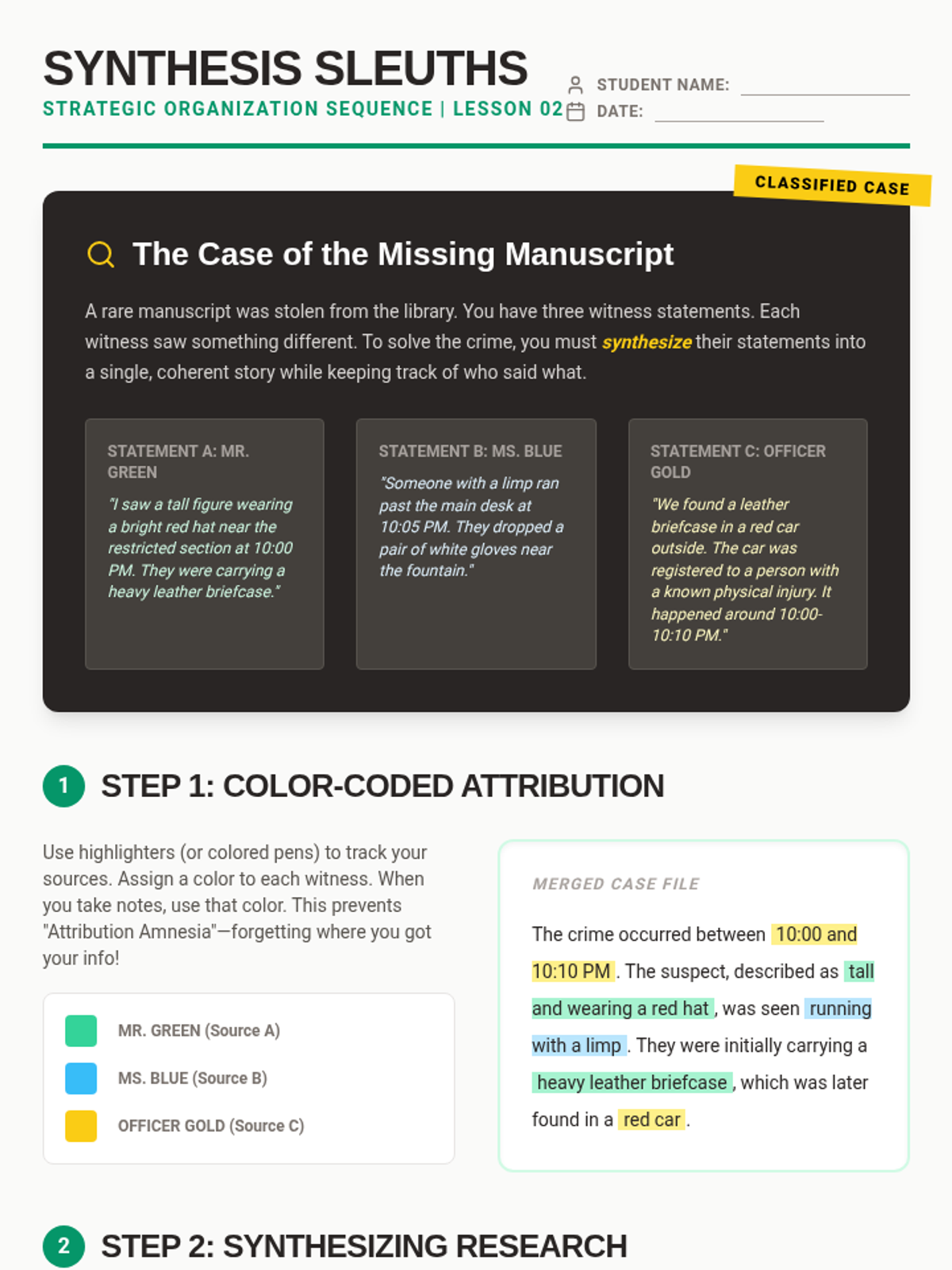 A sequence for 11th-grade students focusing on advanced note-taking strategies to support working memory. Students learn to use matrix notes, the index card method, and source synthesis to organize and manipulate information for research and exam preparation.