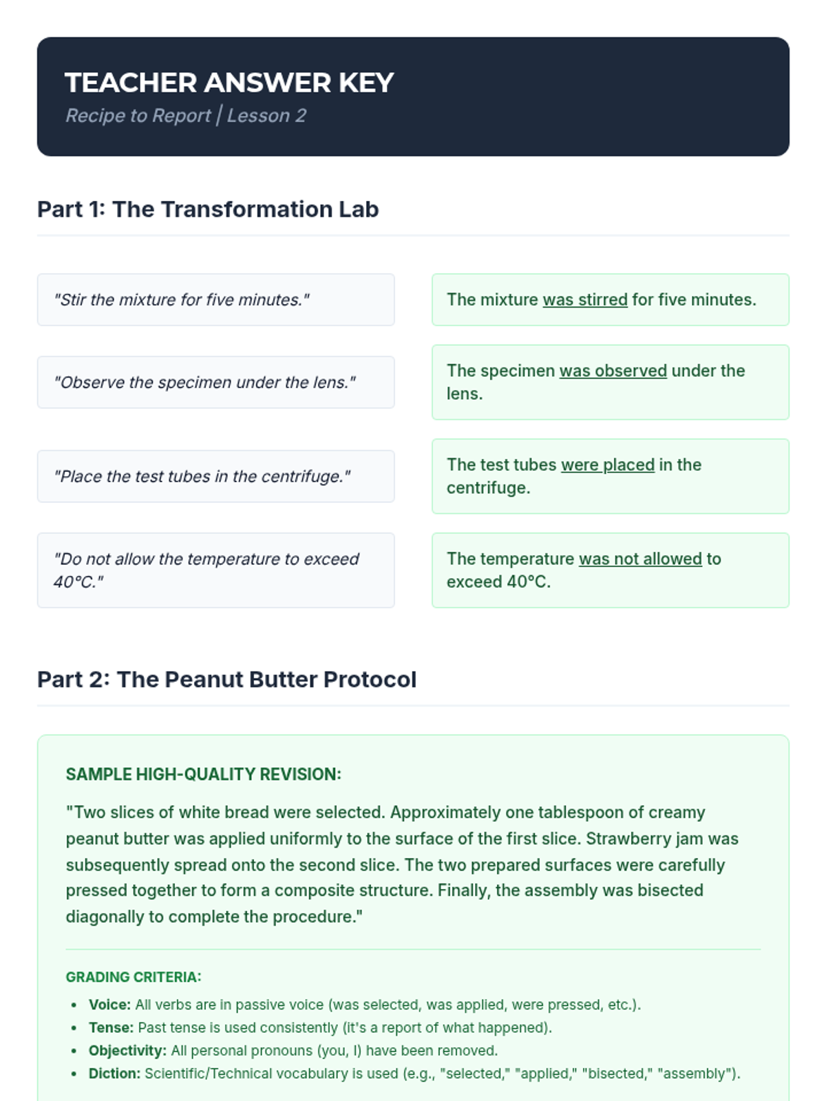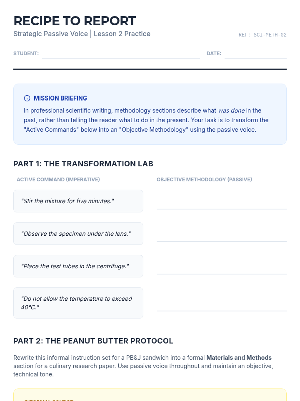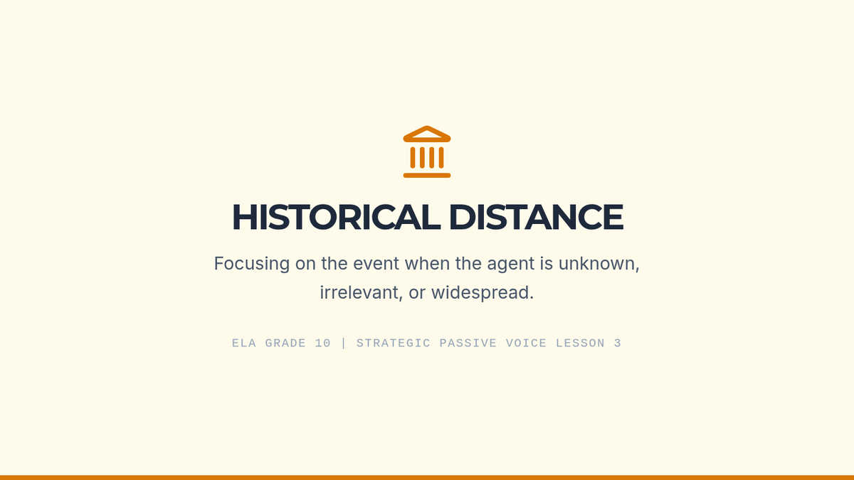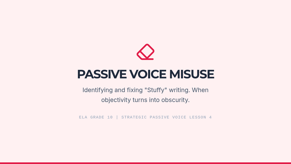 A 10th-grade ELA sequence focused on the strategic use of passive voice in academic, scientific, and historical writing to achieve objectivity and professional tone.