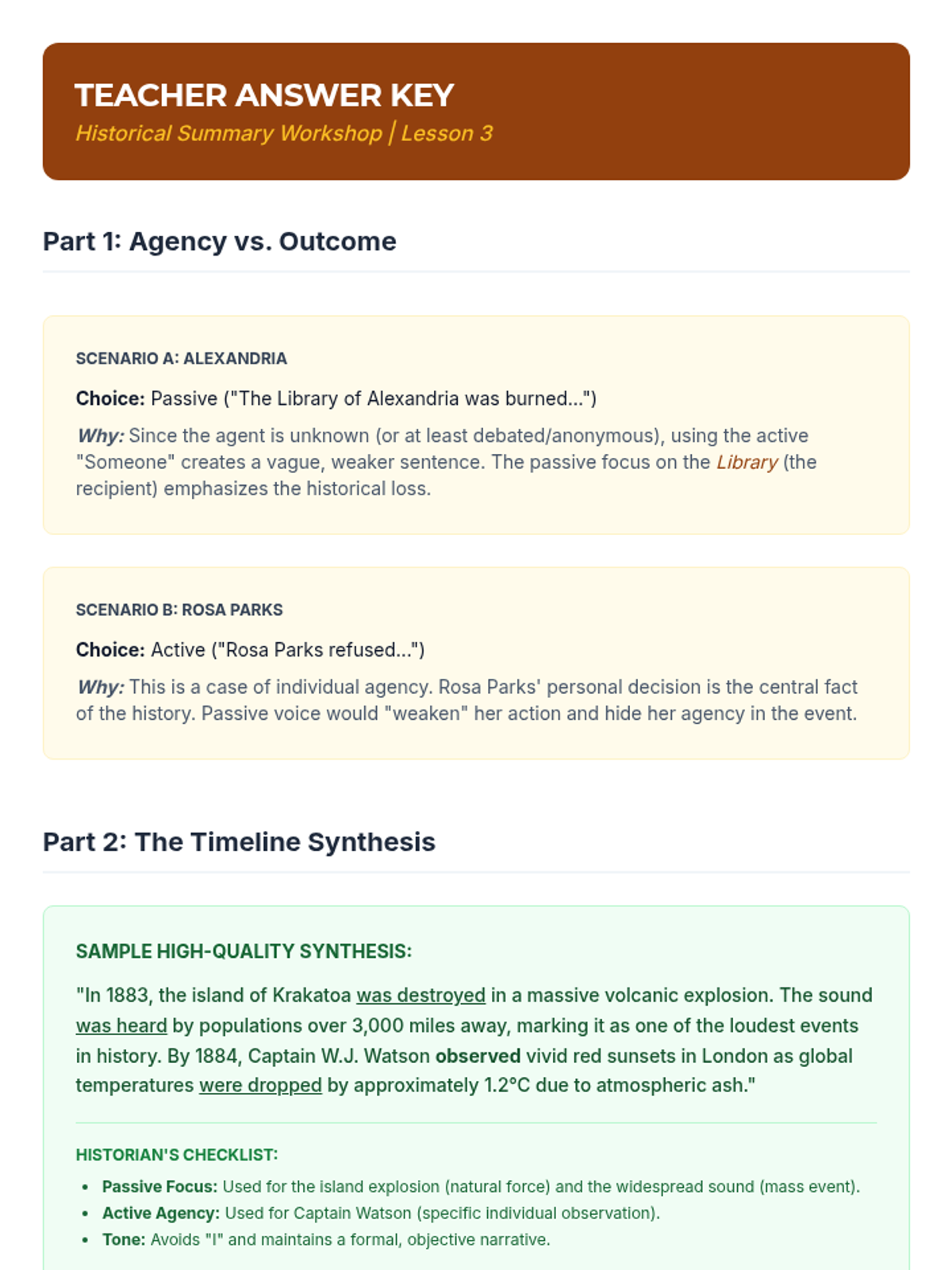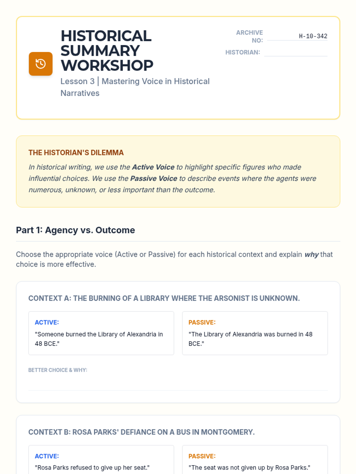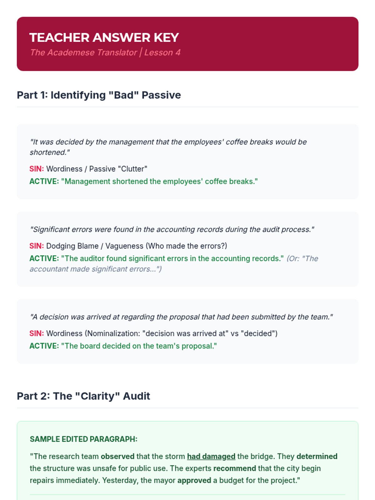 A 10th-grade ELA sequence focused on the strategic use of passive voice in academic, scientific, and historical writing to achieve objectivity and professional tone.