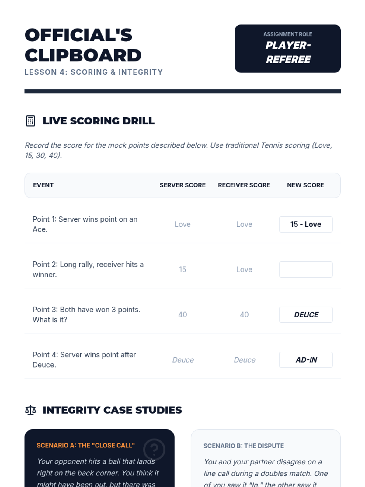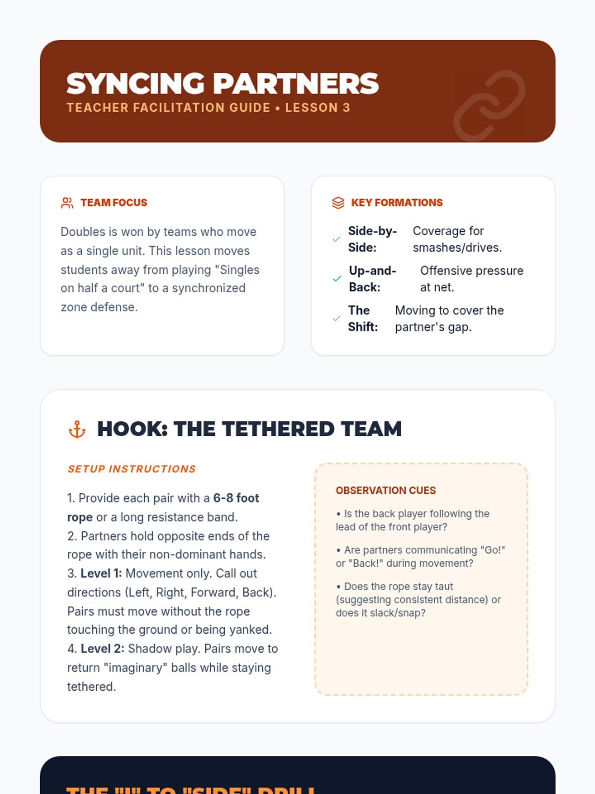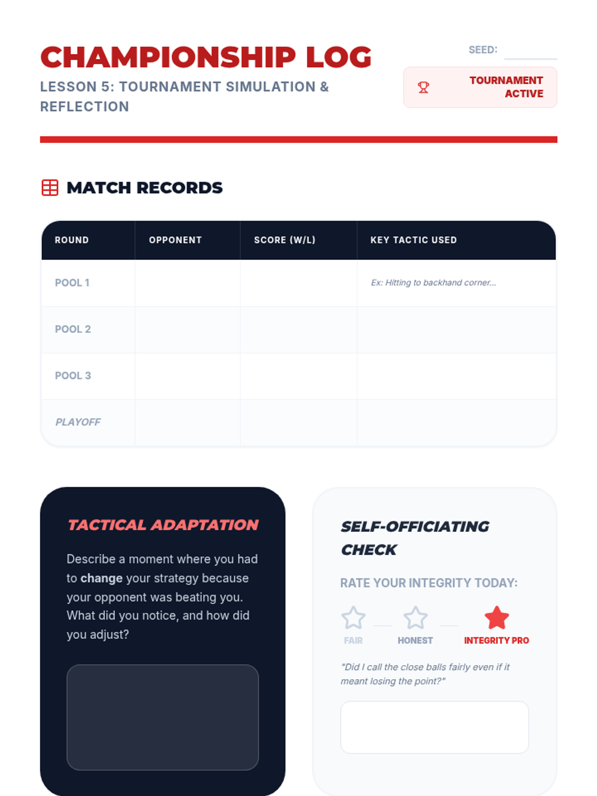 This sequence transitions 9th-grade students from basic mechanics to tactical application and competitive play in racket sports. It covers serving regulations, scoring systems, singles and doubles positioning, and self-officiating, culminating in a structured tournament simulation.