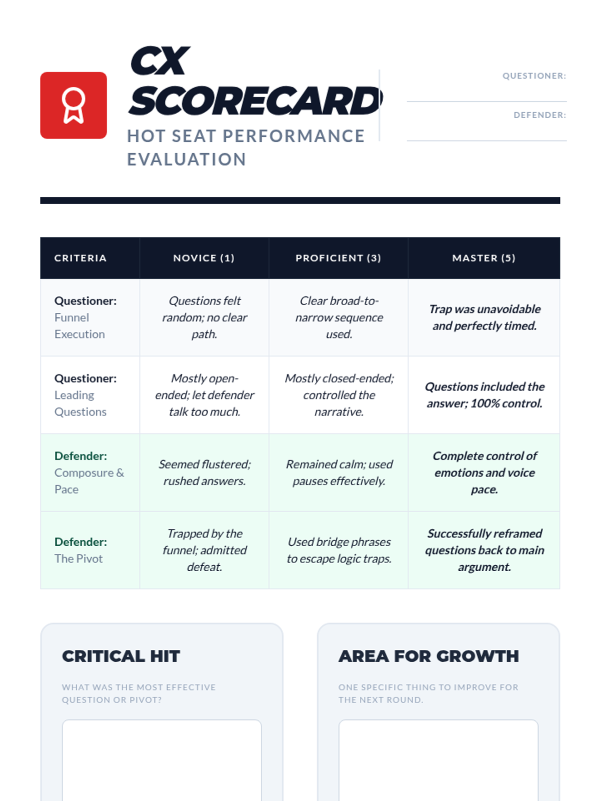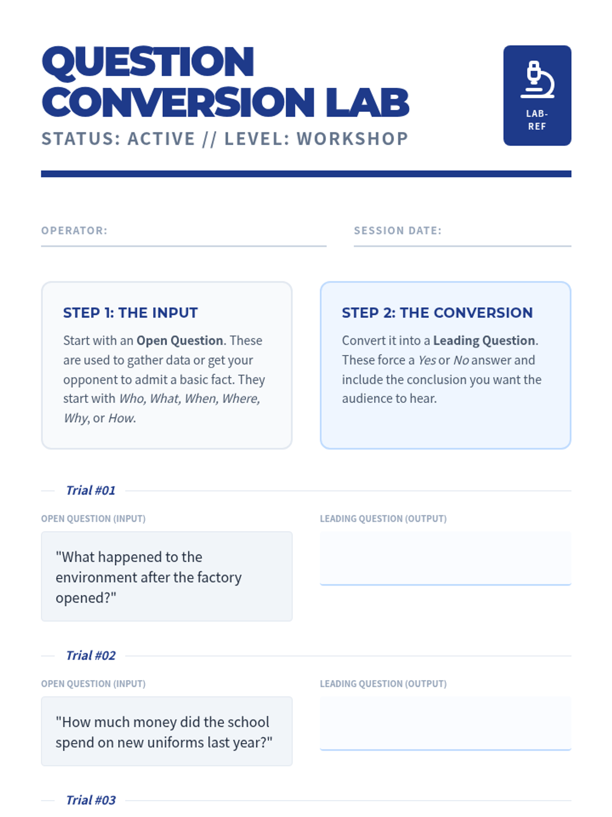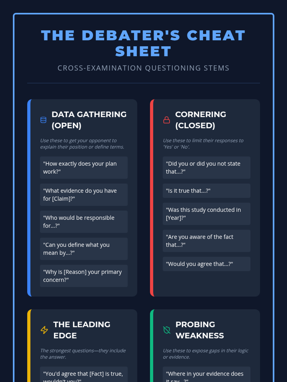 This sequence immerses students in the high-stakes environment of cross-examination, moving them beyond prepared speeches to dynamic intellectual interaction. Students learn to identify logical fallacies, structure leading questions, use the funnel technique, and defend their own positions under pressure.