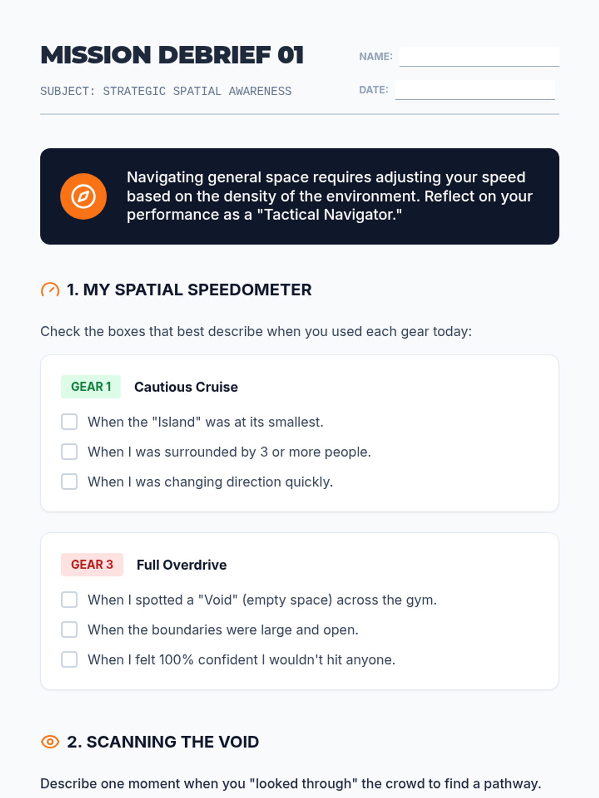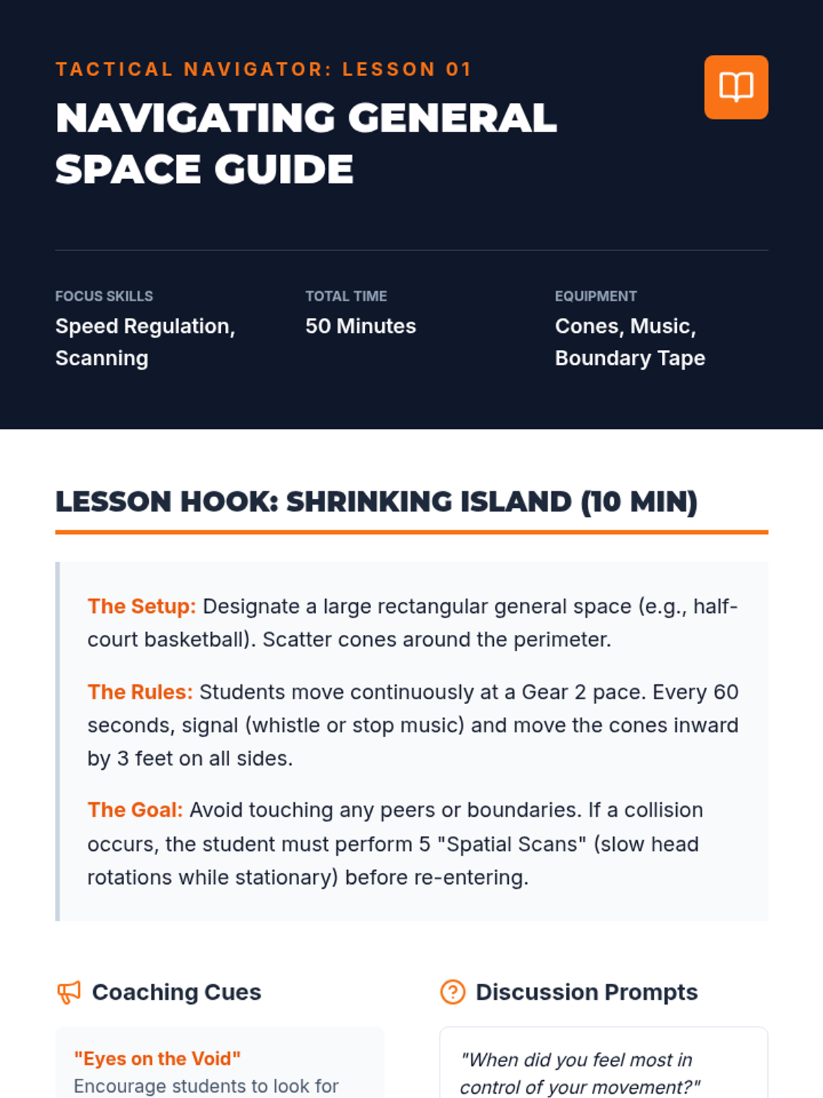 This sequence guides sixth-grade students through the transition from basic spatial recognition to strategic application in dynamic environments, focusing on agility, offensive space creation, and defensive zone principles. Students will learn to manipulate space and pathways to gain strategic advantages in both competitive and cooperative physical activities.