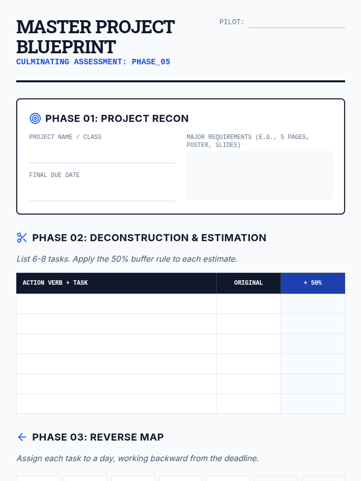 This sequence teaches 9th-grade students with executive function needs how to use digital calendars for backwards planning. Students learn to deconstruct large projects, estimate time accurately, and block out dedicated work sessions to manage their workload effectively.