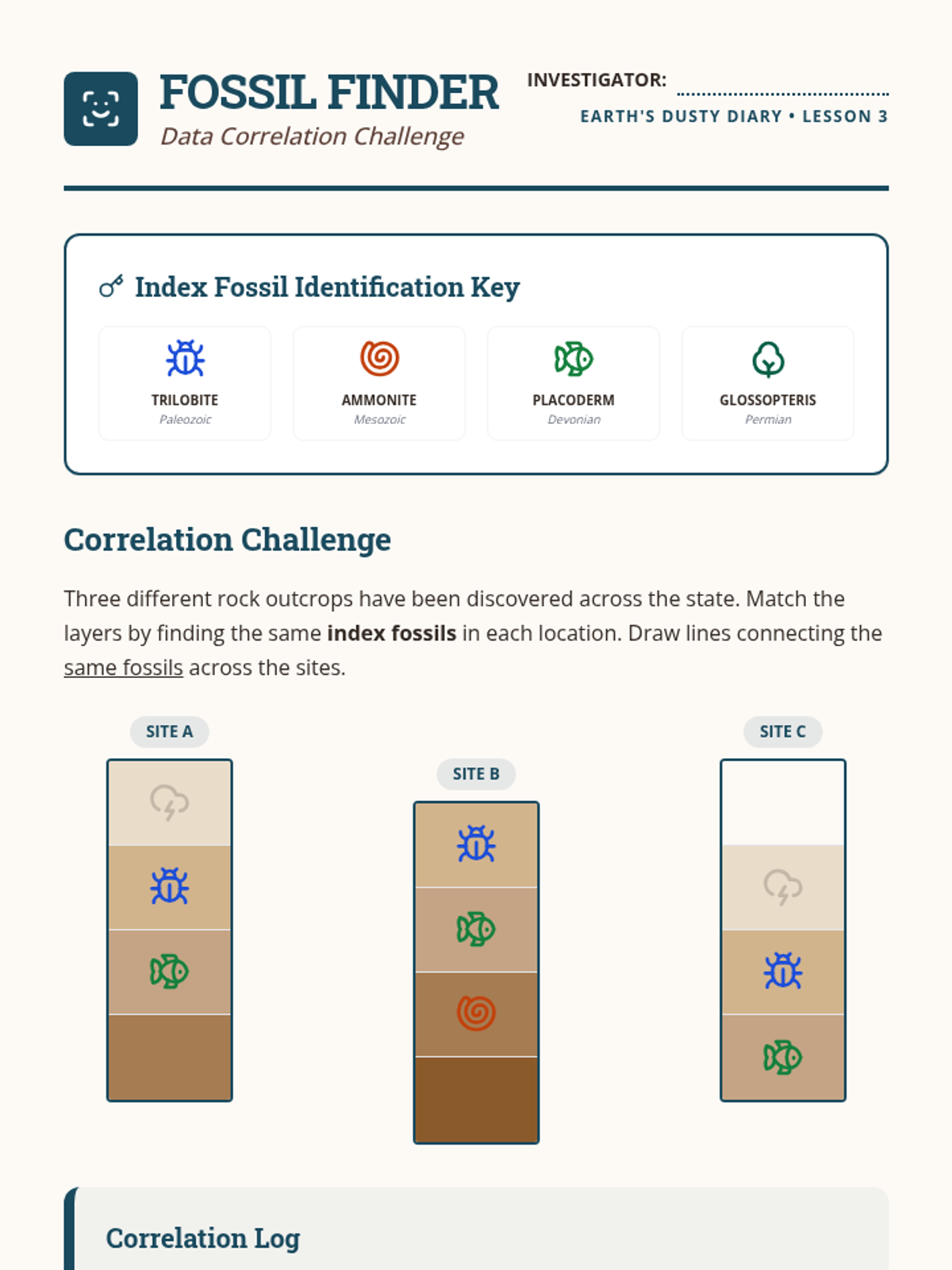 Students explore the principles of stratigraphy and relative dating to understand how rock layers act as a chronological record of Earth's history. This sequence covers the Law of Superposition, index fossils, geological disturbances, and the vast scale of geological time.