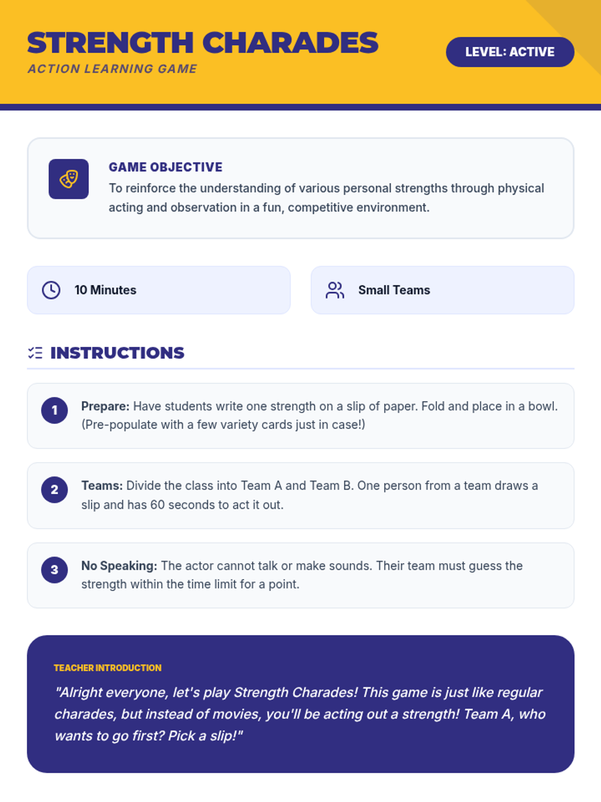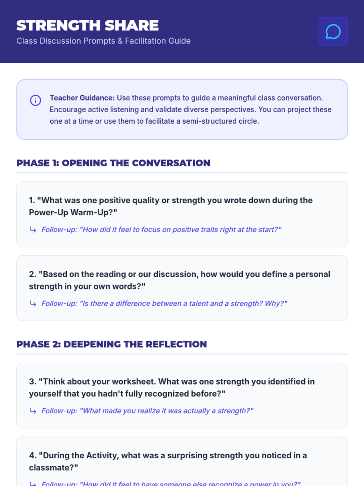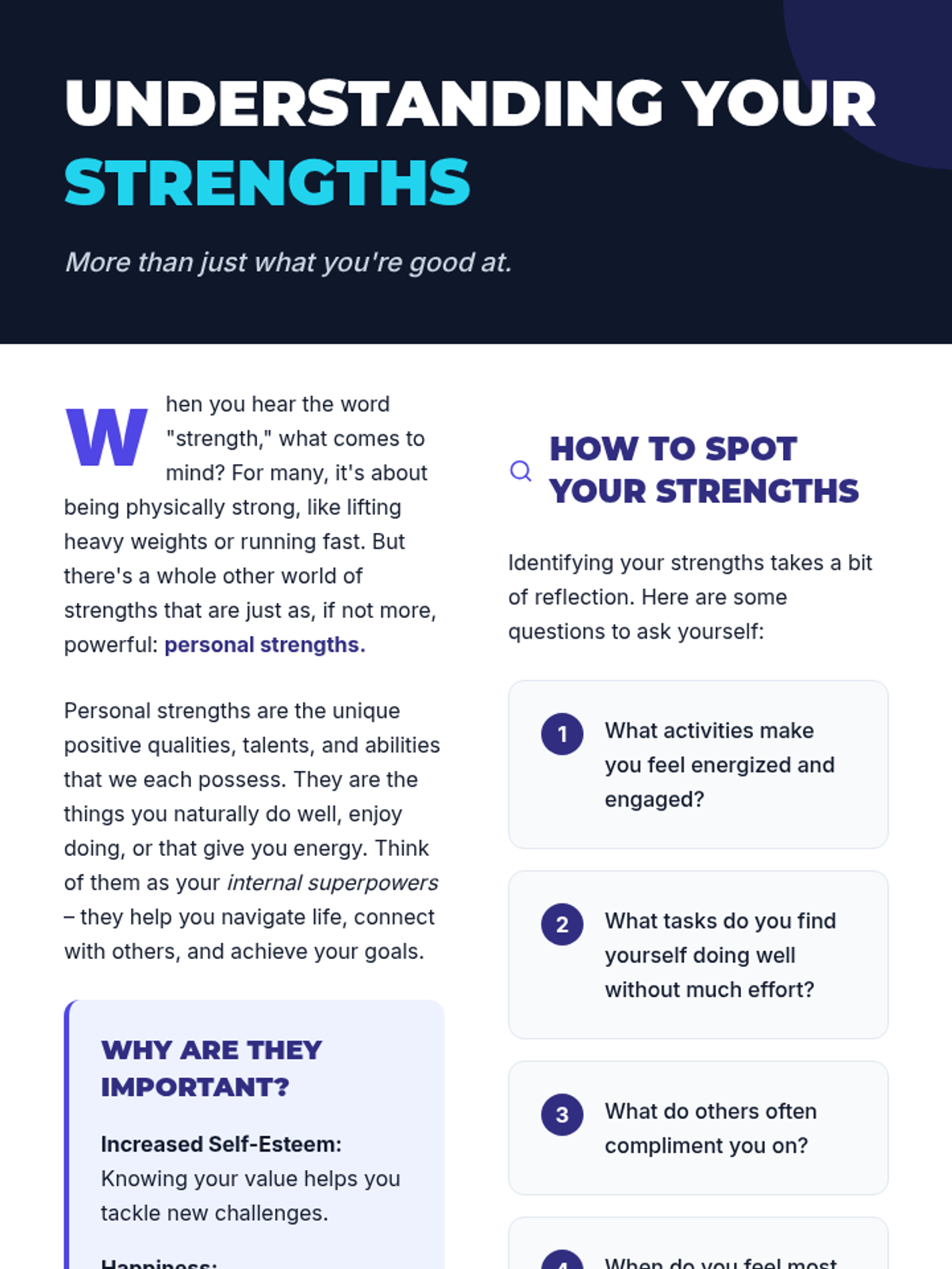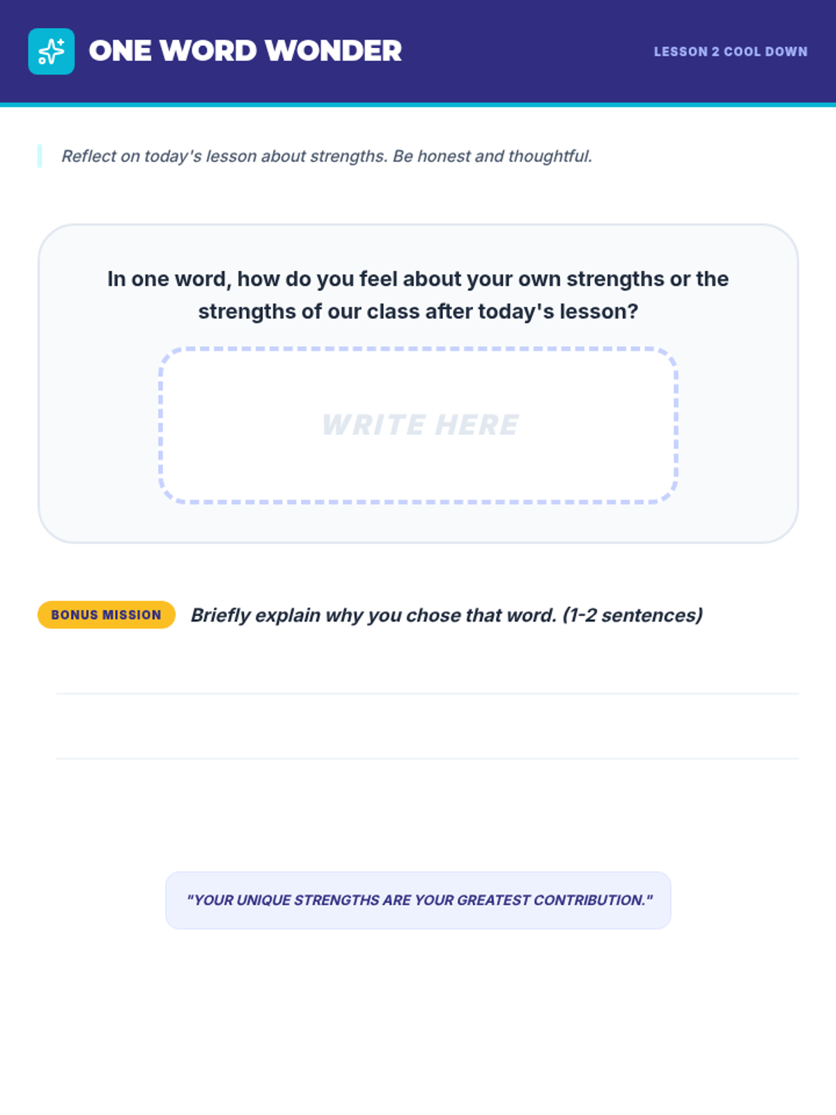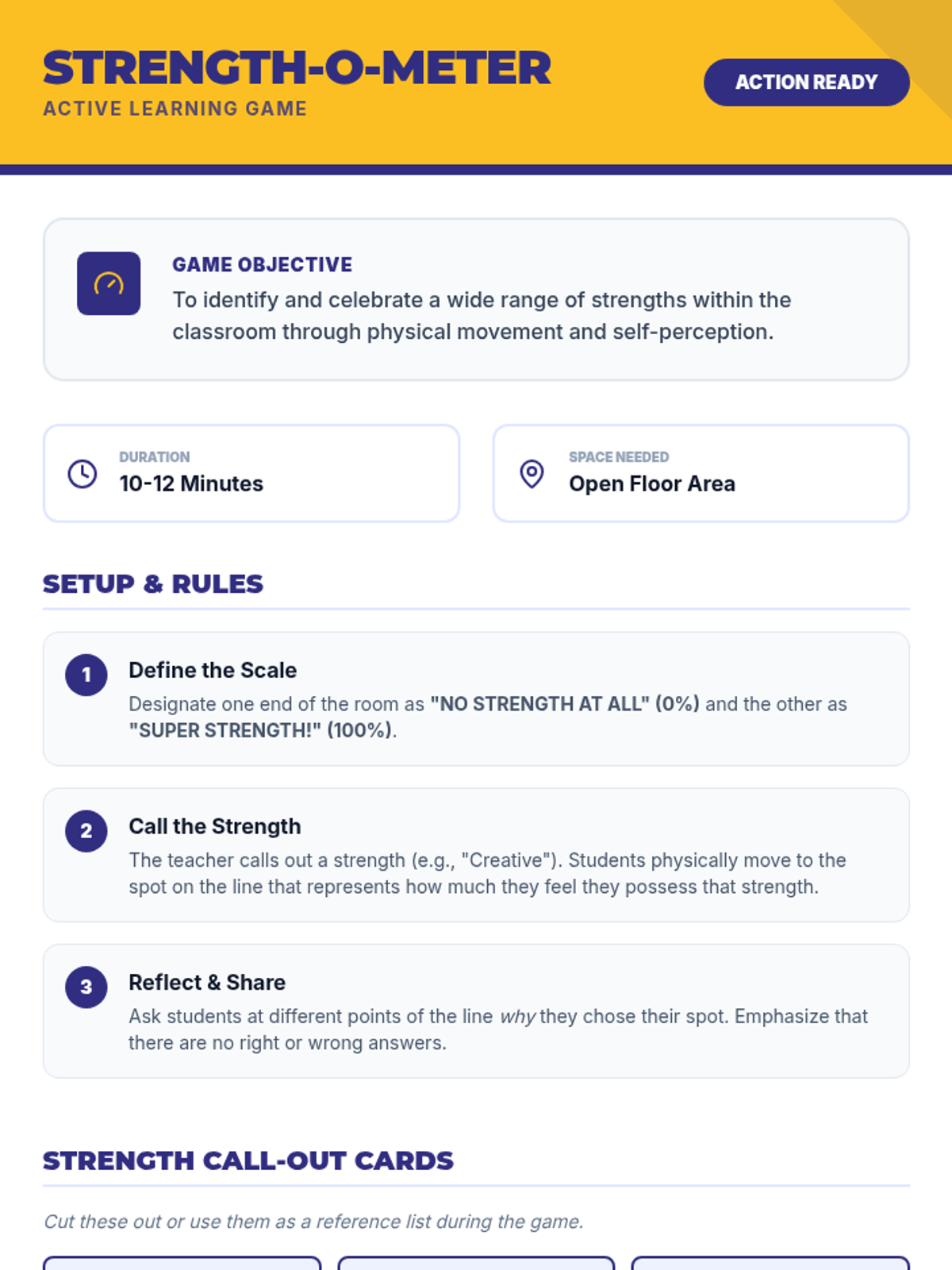 A comprehensive high school sequence focused on helping students identify, understand, and apply their personal strengths to foster self-awareness and confidence. Students explore their unique superpowers through interactive activities, reflections, and creative projects.