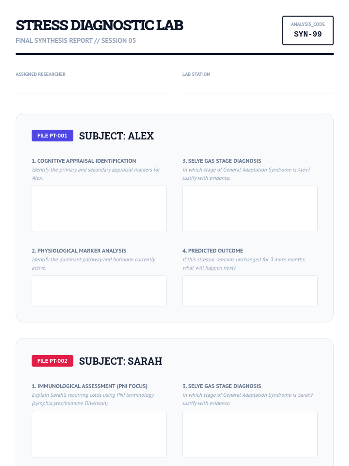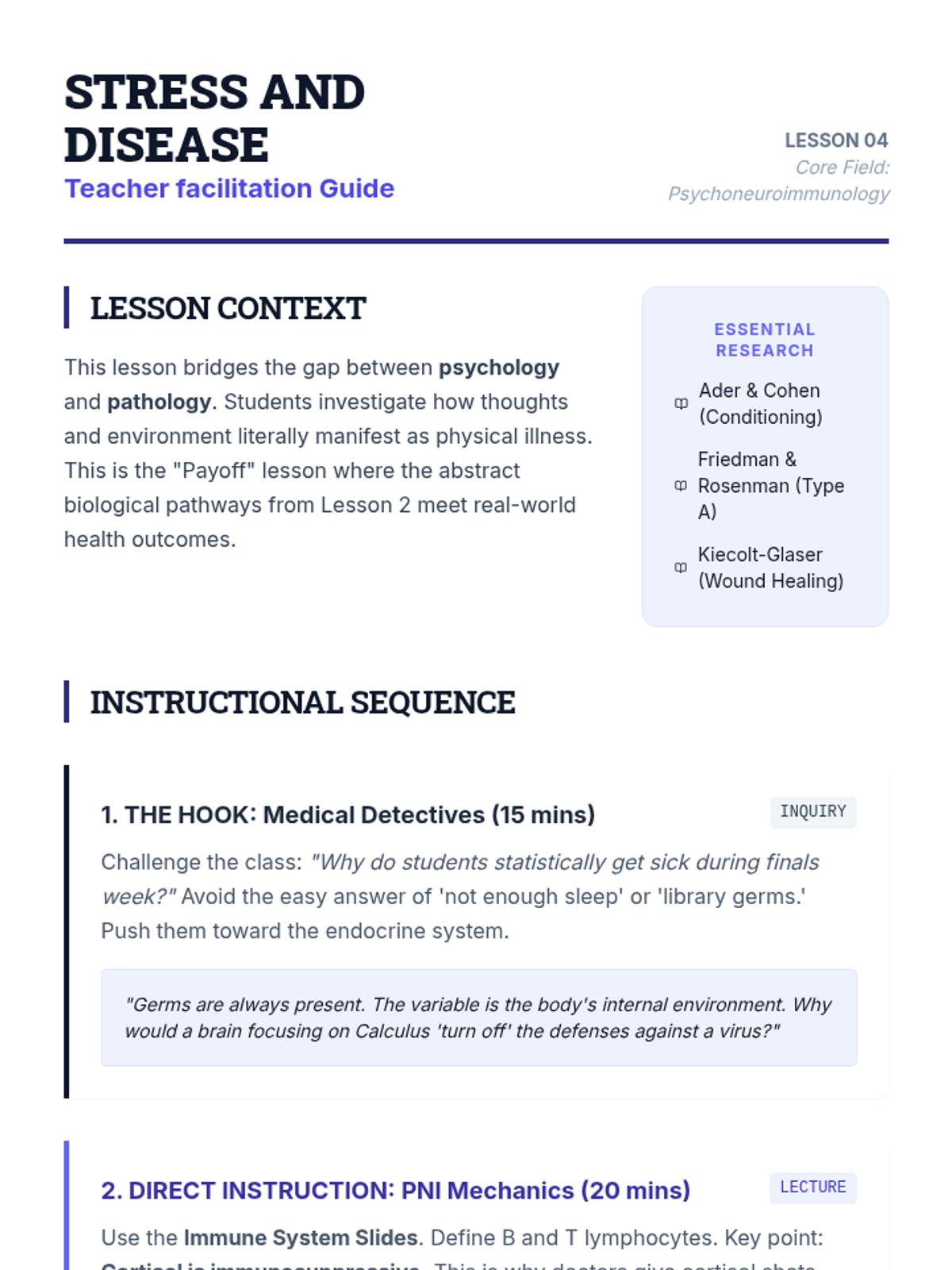 This sequence explores the biological and psychological mechanics of the stress response, analyzing the HPA axis, Selye's General Adaptation Syndrome, and the impacts of chronic stress on health through psychoneuroimmunology.