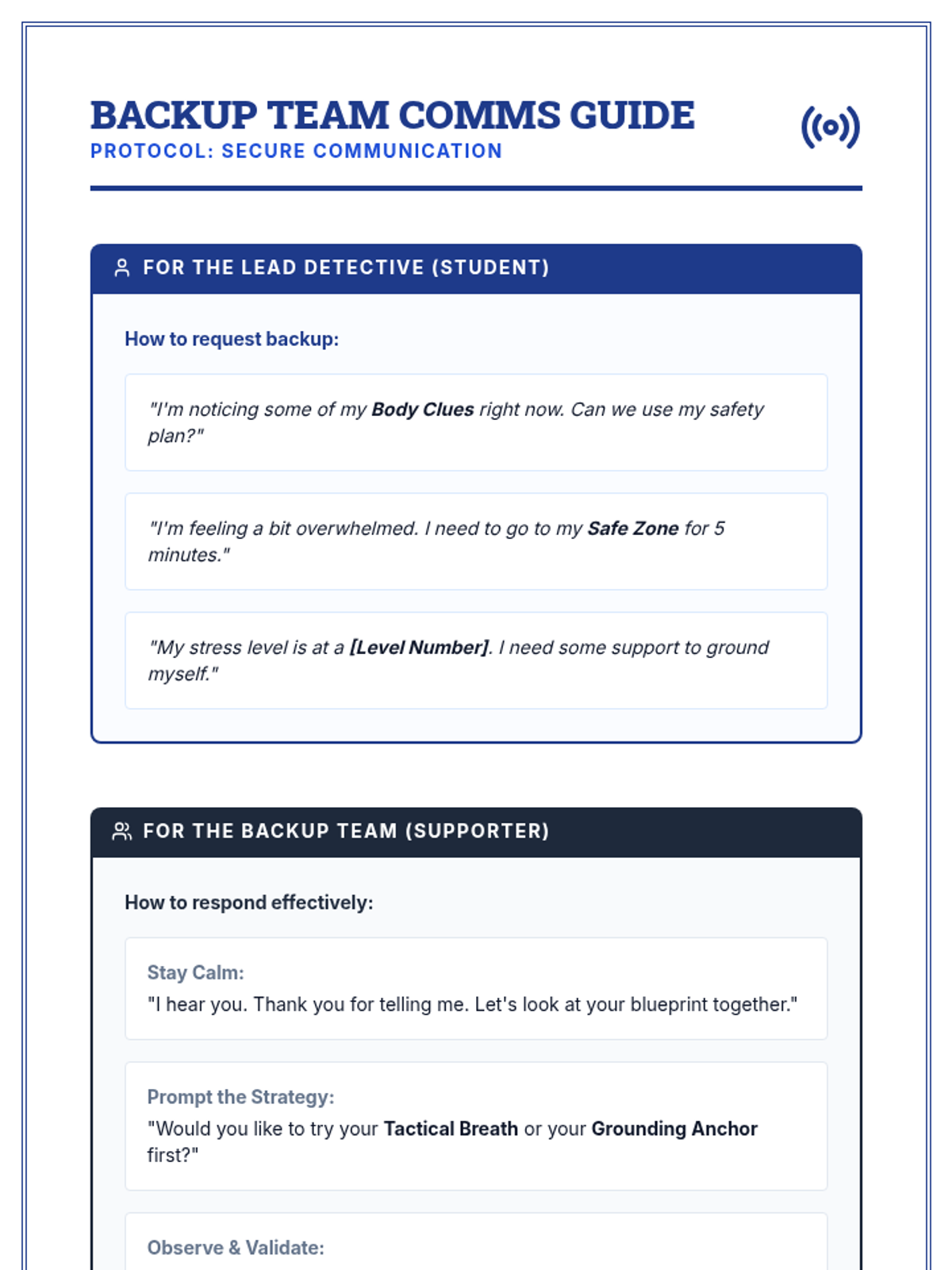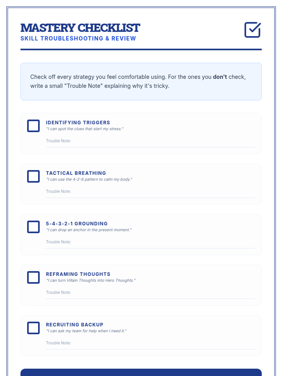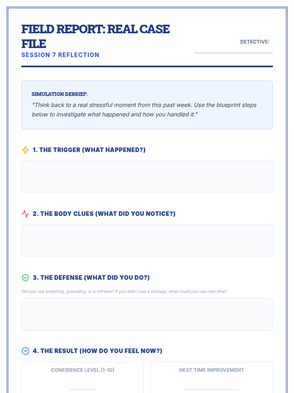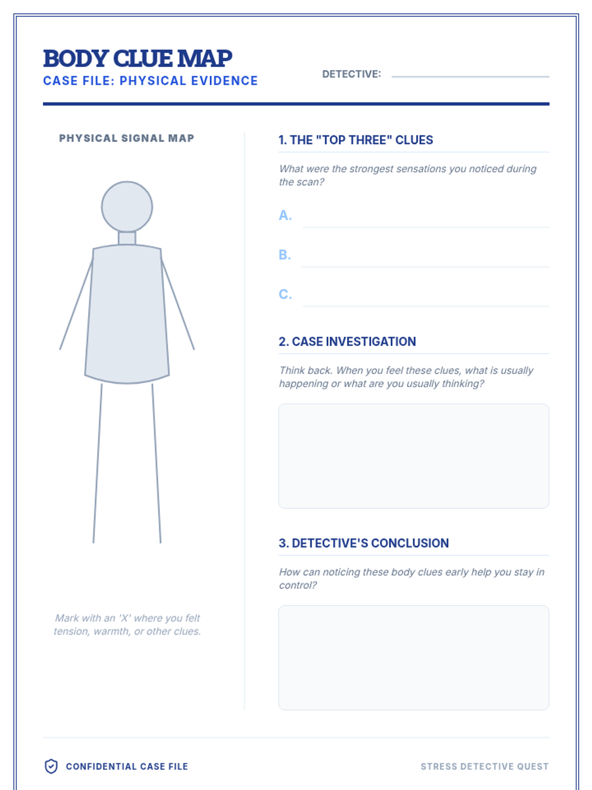 A 10-session Tier 3 support program for 7th-grade students with seizure histories, focusing on identifying stressors, physical cues, and evidence-based coping mechanisms through a 'Detective Quest' theme.
