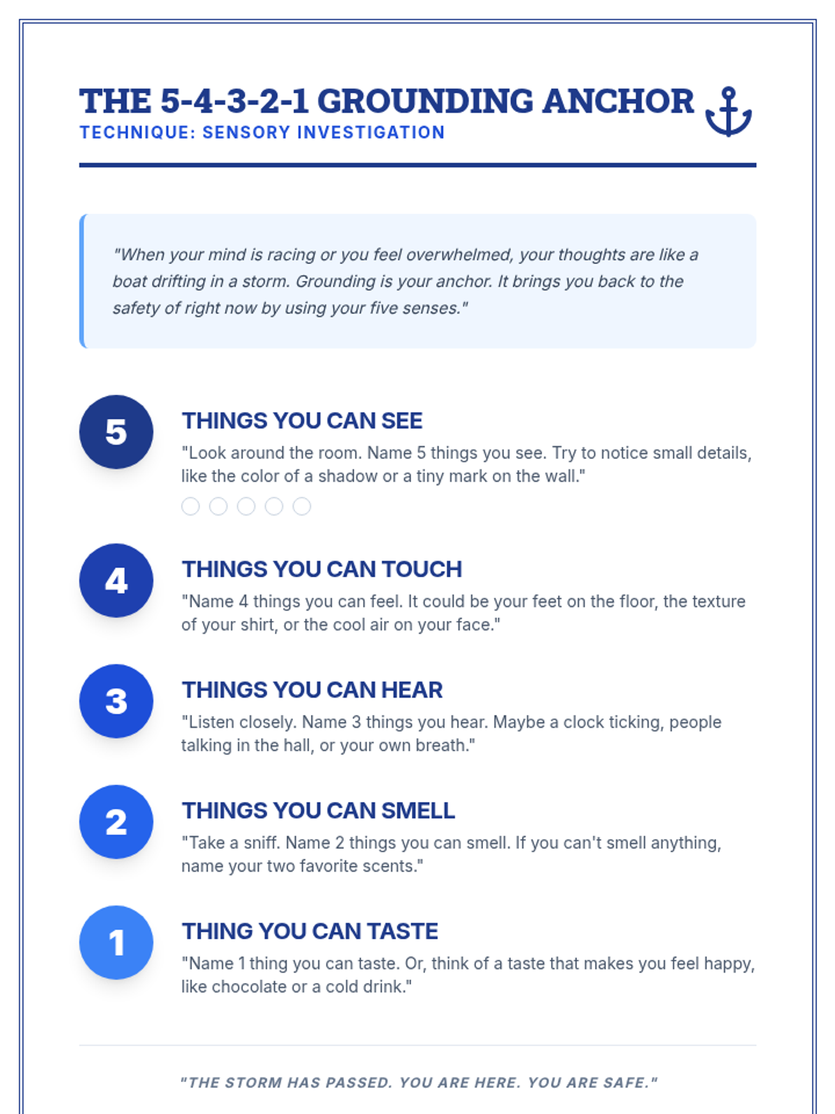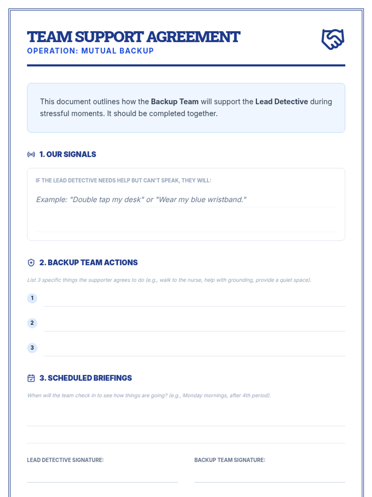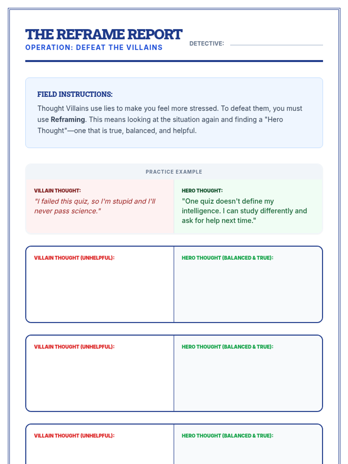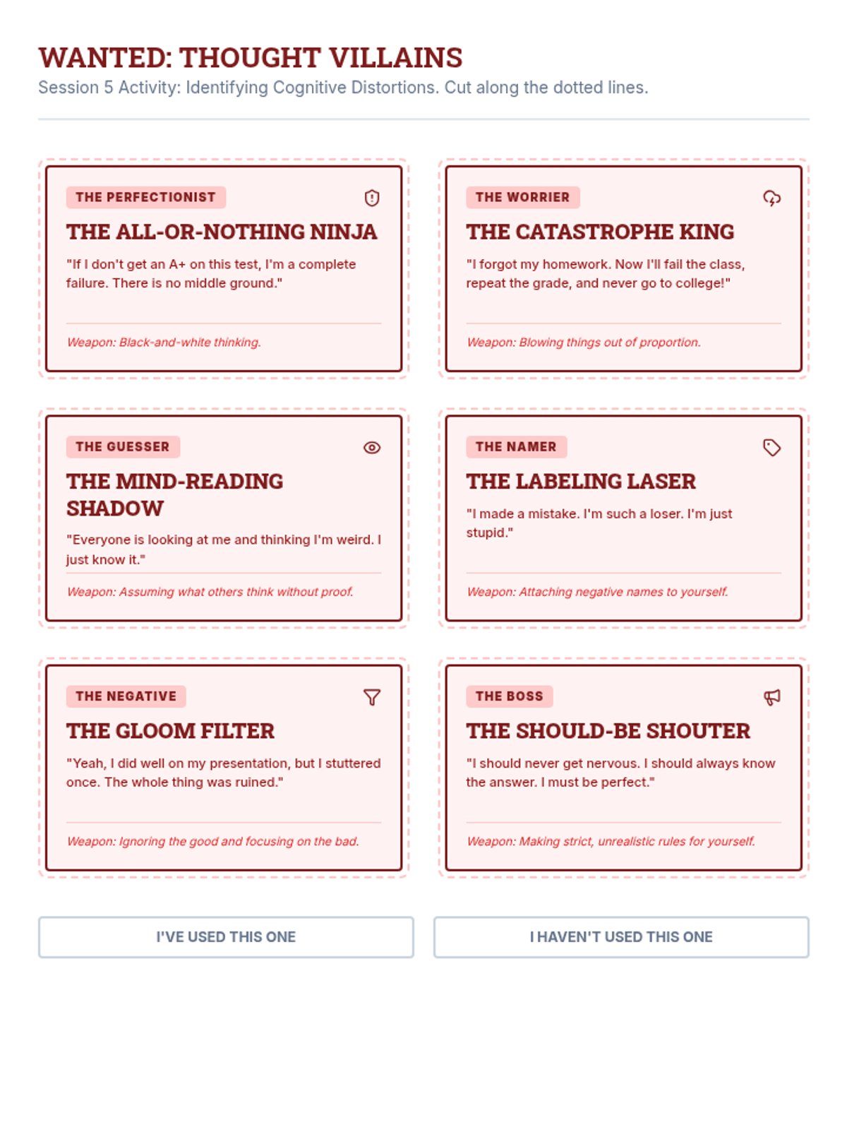 A 10-session Tier 3 support program for 7th-grade students with seizure histories, focusing on identifying stressors, physical cues, and evidence-based coping mechanisms through a 'Detective Quest' theme.