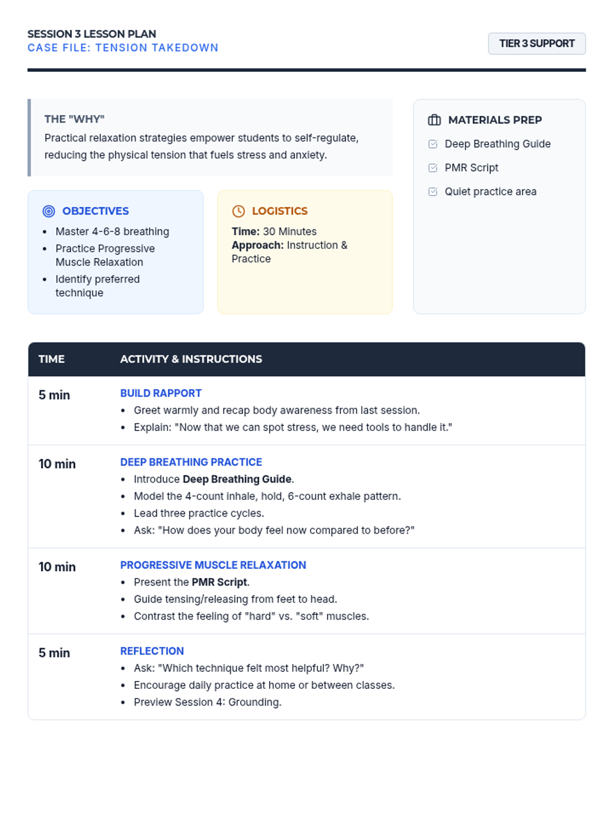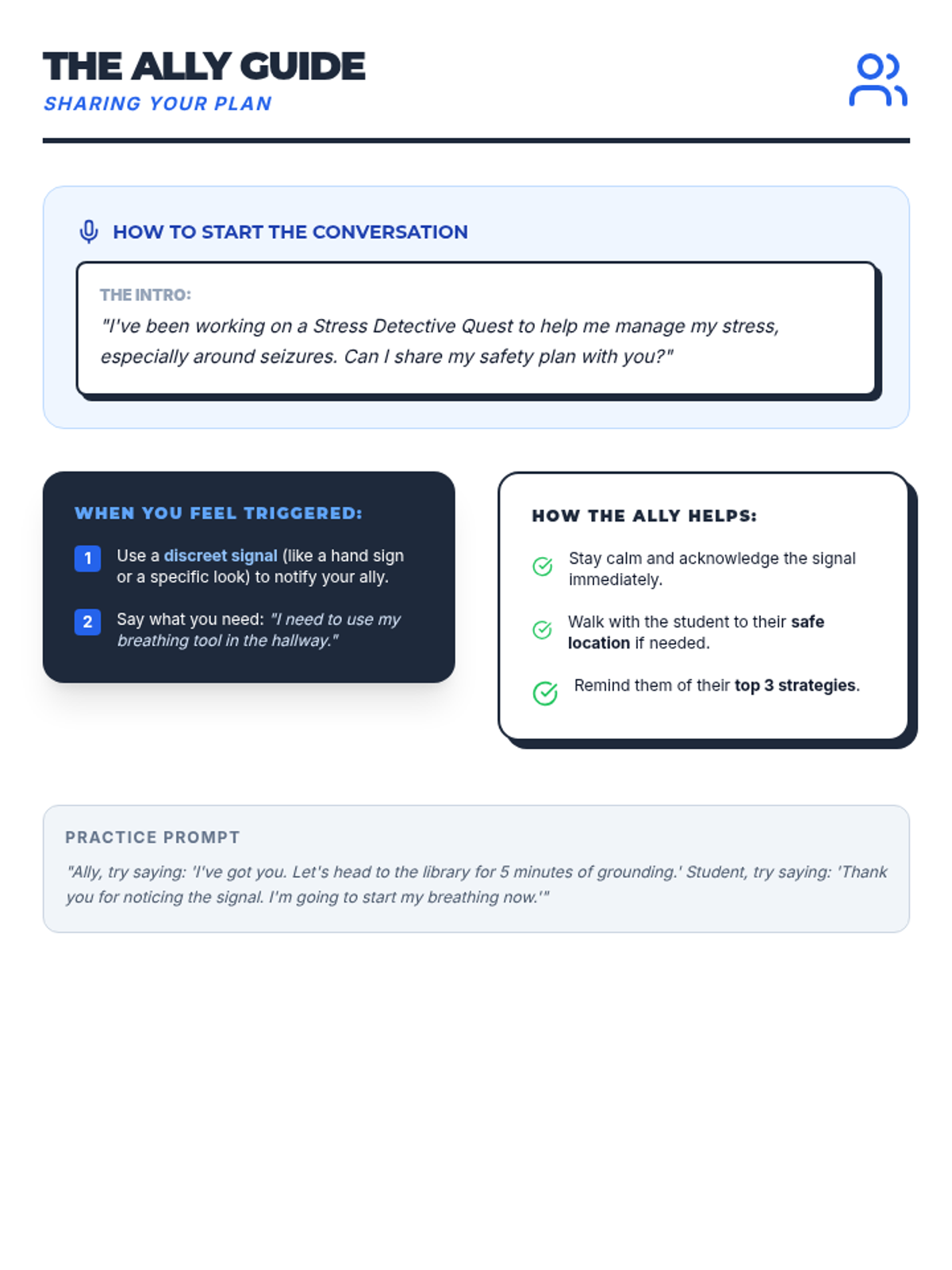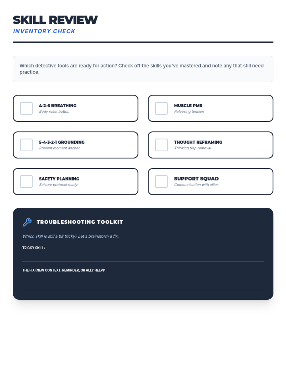 A 10-session Tier 3 intervention for a 7th-grade student with a seizure history, focusing on identifying stressors, physical cues, and building evidence-based coping resilience.