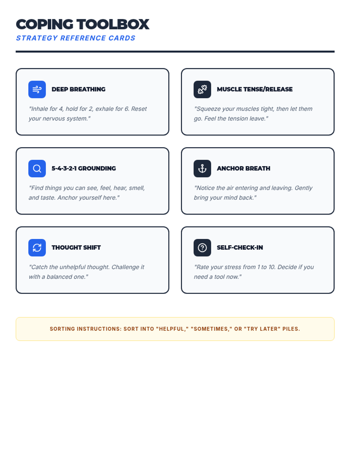 A 4-week small group counseling unit for middle school students focused on identifying stressors, understanding the physiological response to stress, and building a versatile toolkit of coping strategies. Aligned with ASCA Mindsets & Behaviors for student success.