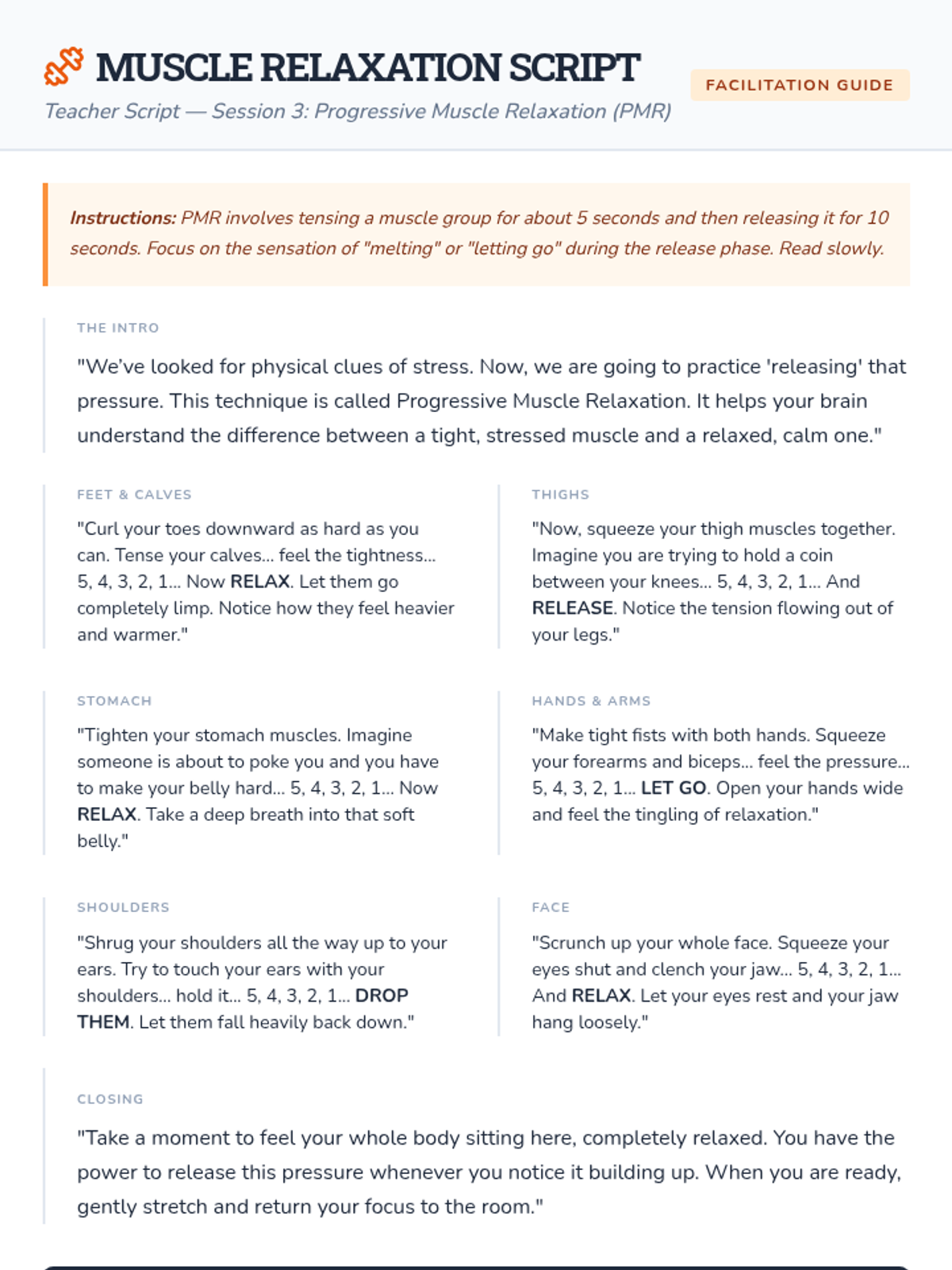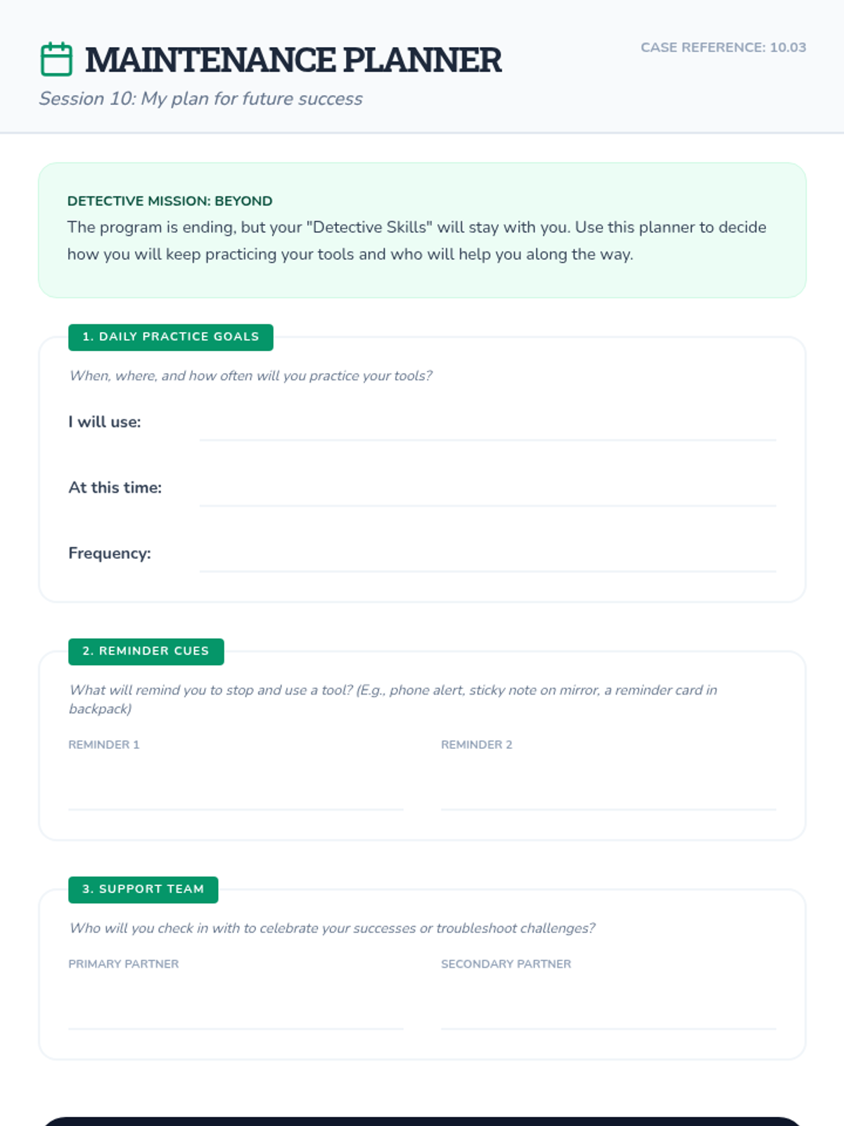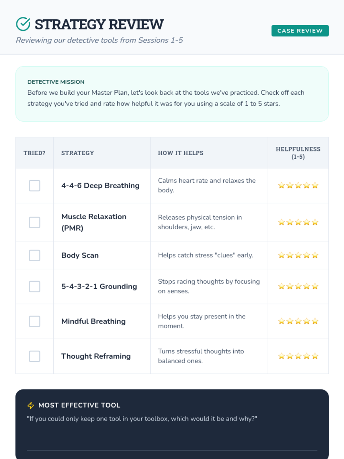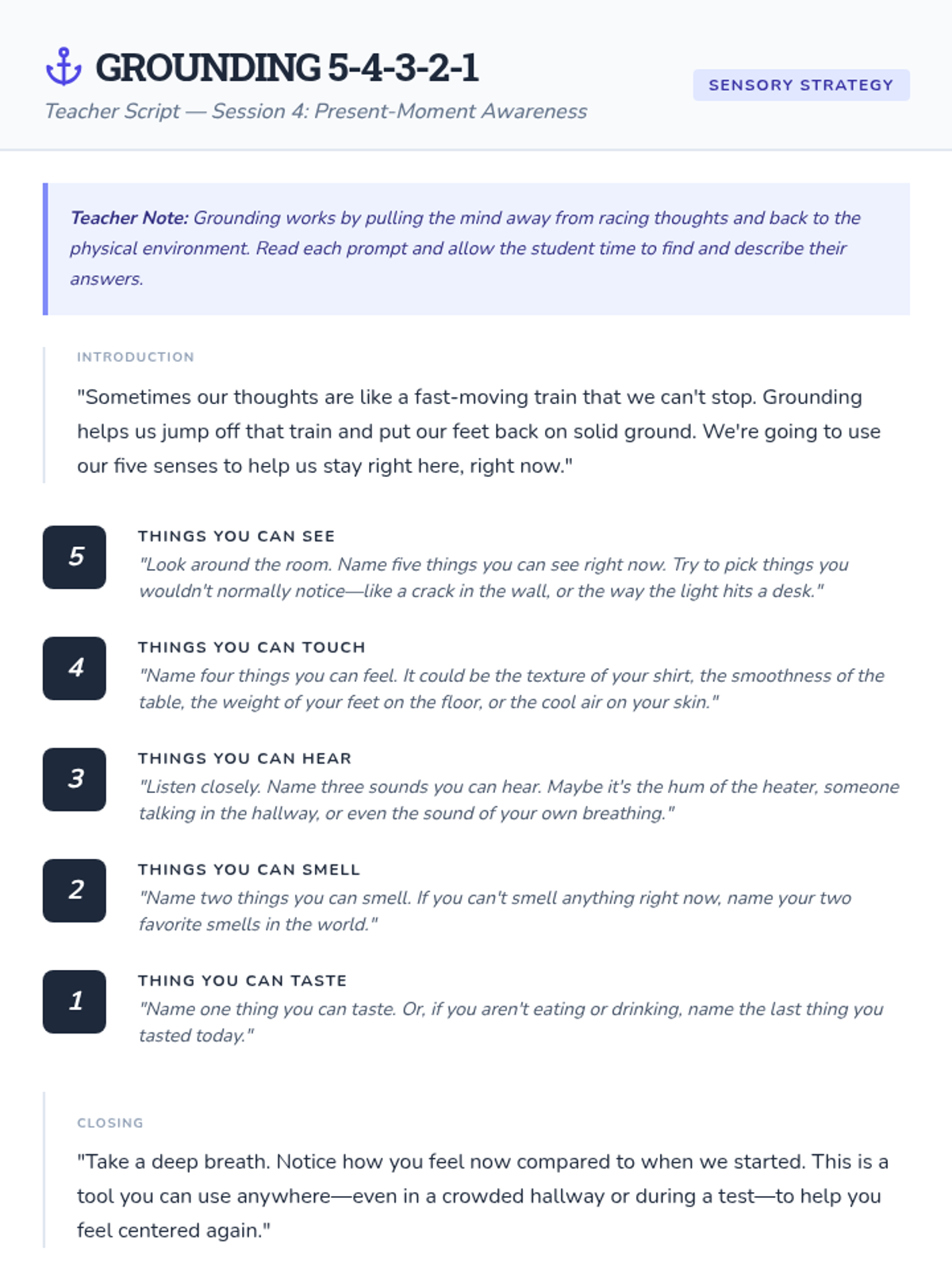 A 10-session, 30-minute individual Tier 3 support program for a 7th grader with a seizure history. Students will learn to identify personal stressors, understand emotional and physical reactions, and practice evidence-based coping strategies to build resilience and reduce stress.