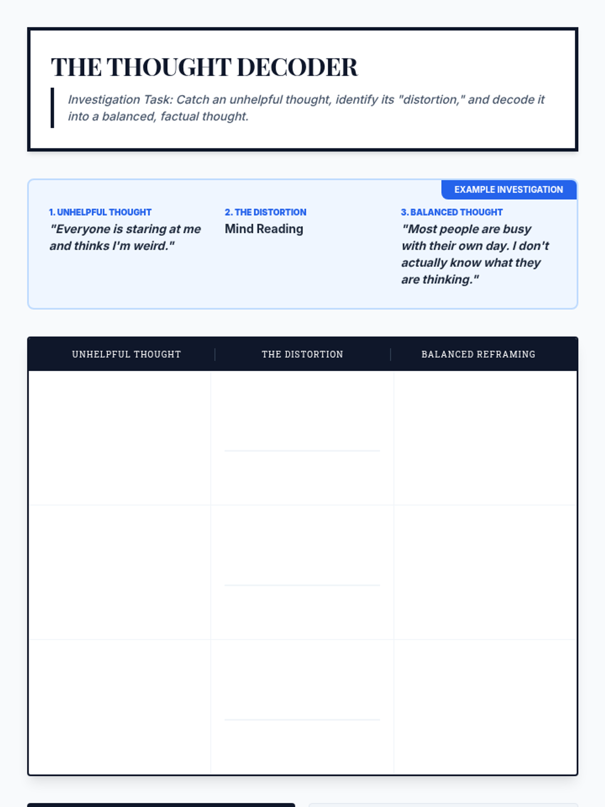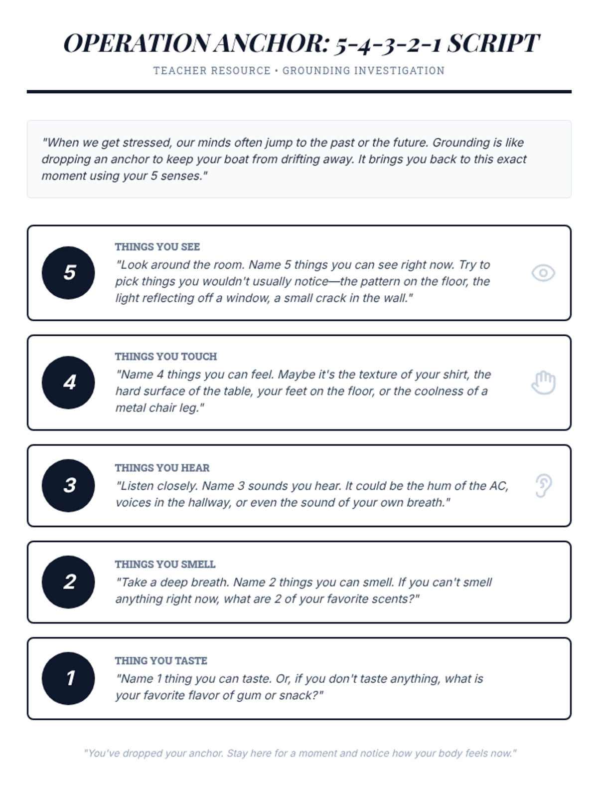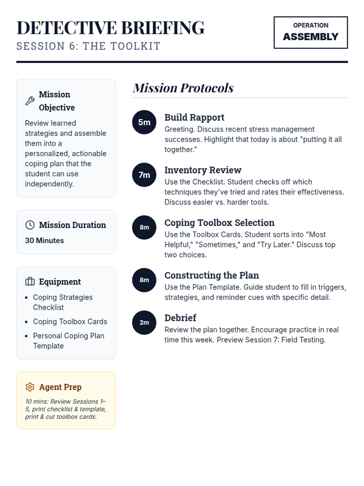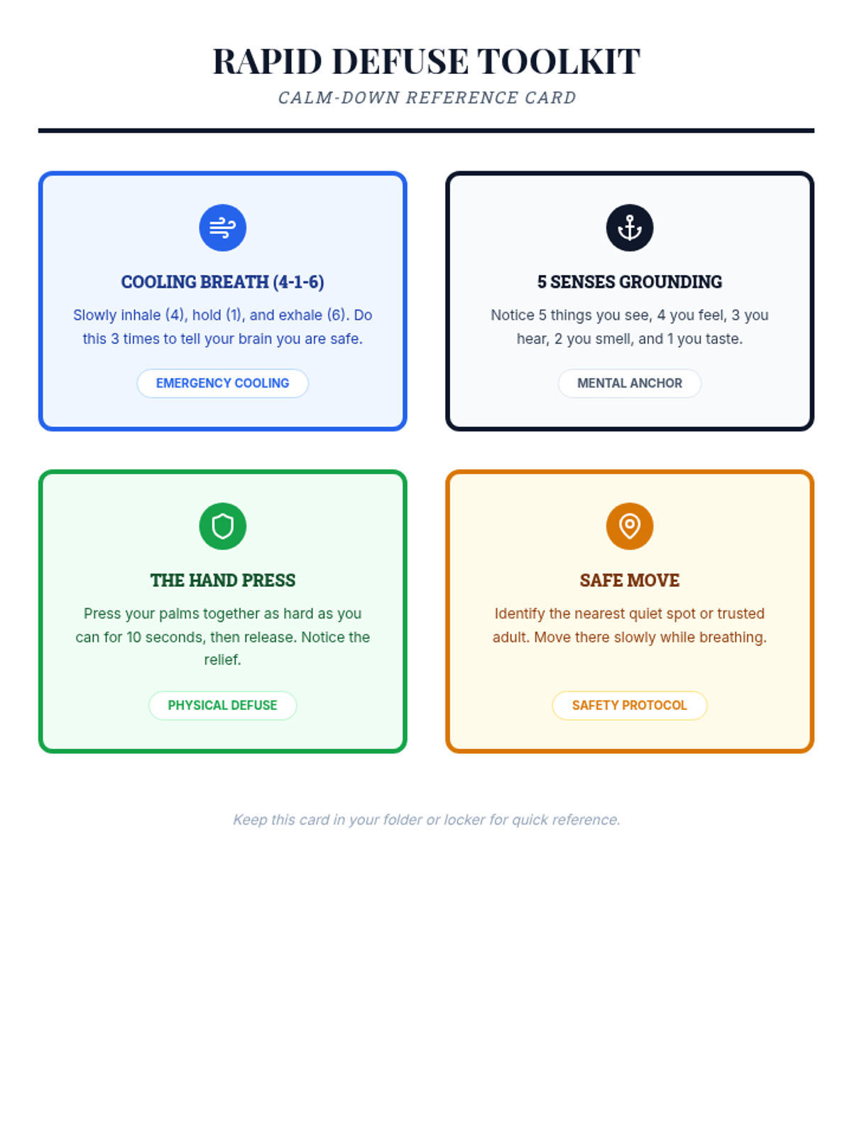 A 6-session counseling group designed to help students identify triggers, understand physical symptoms of anxiety, and build a personalized toolkit of coping strategies through a 'Calm Explorer' theme.