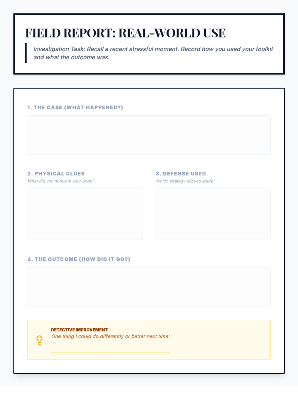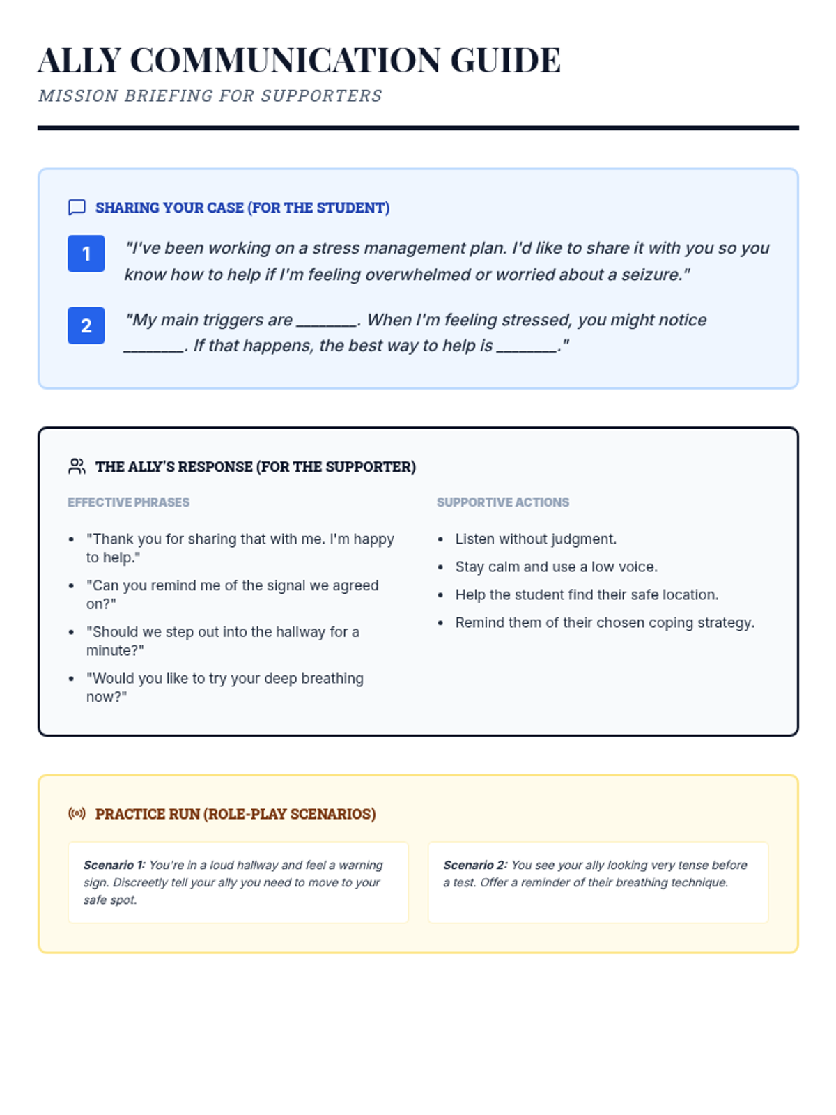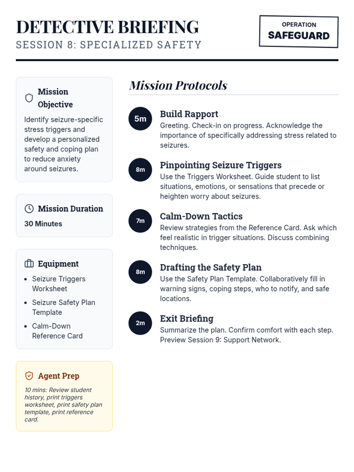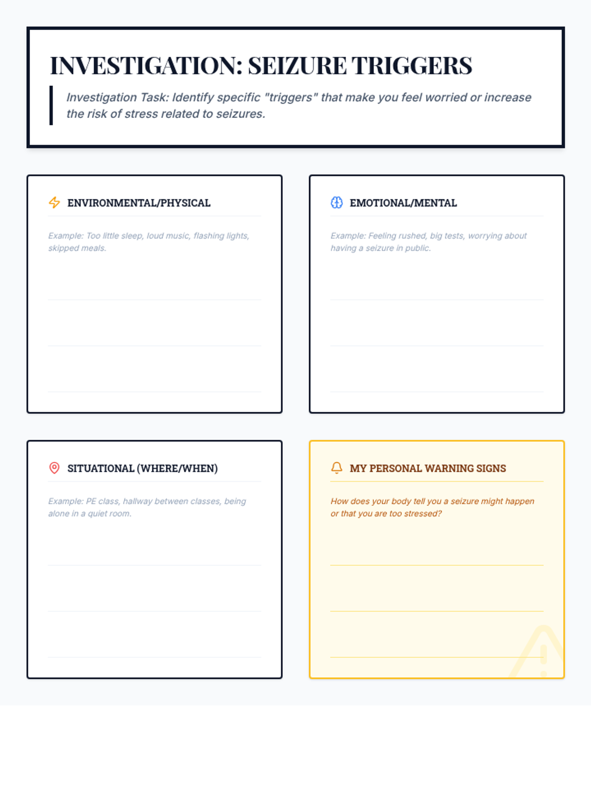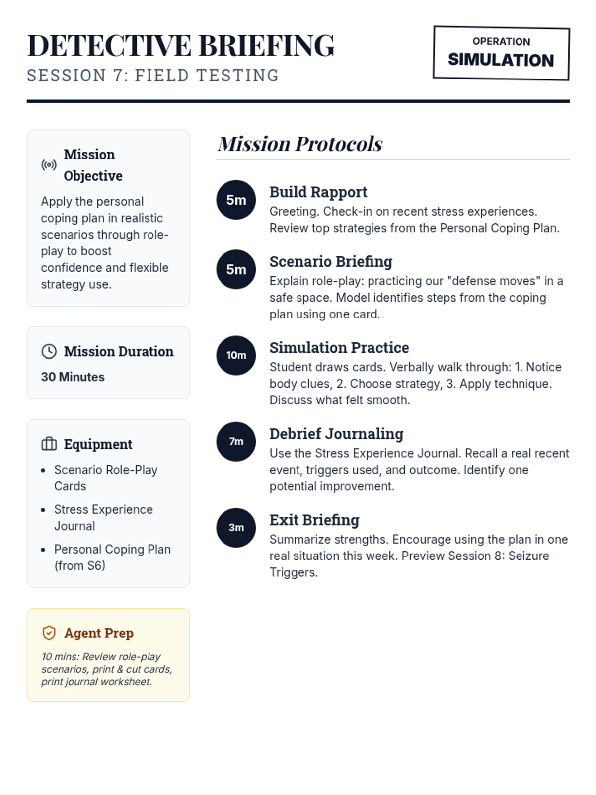 A 10-session Tier 3 intervention for 7th grade students to identify stressors, manage physical reactions, and build a personalized coping plan, specifically designed for students with seizure histories.