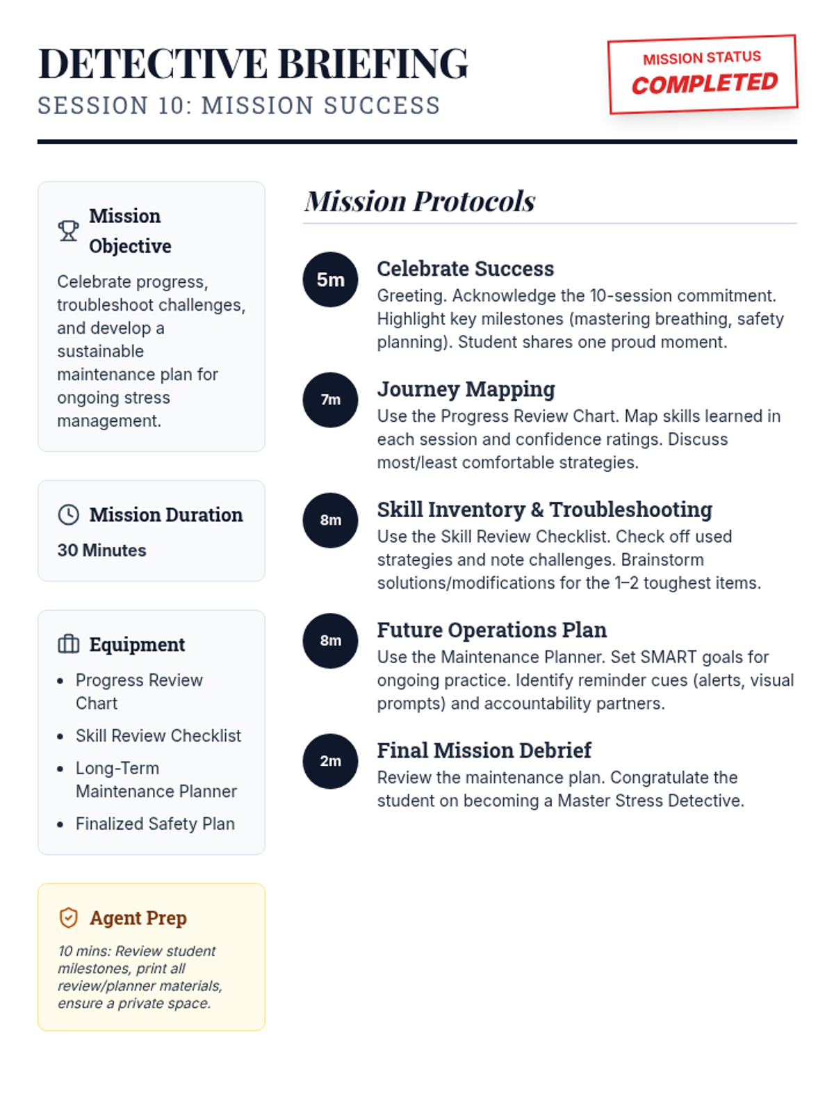 A 4-week small group counseling unit for middle school students focused on identifying stressors, understanding the physiological response to stress, and building a versatile toolkit of coping strategies. Aligned with ASCA Mindsets & Behaviors for student success.