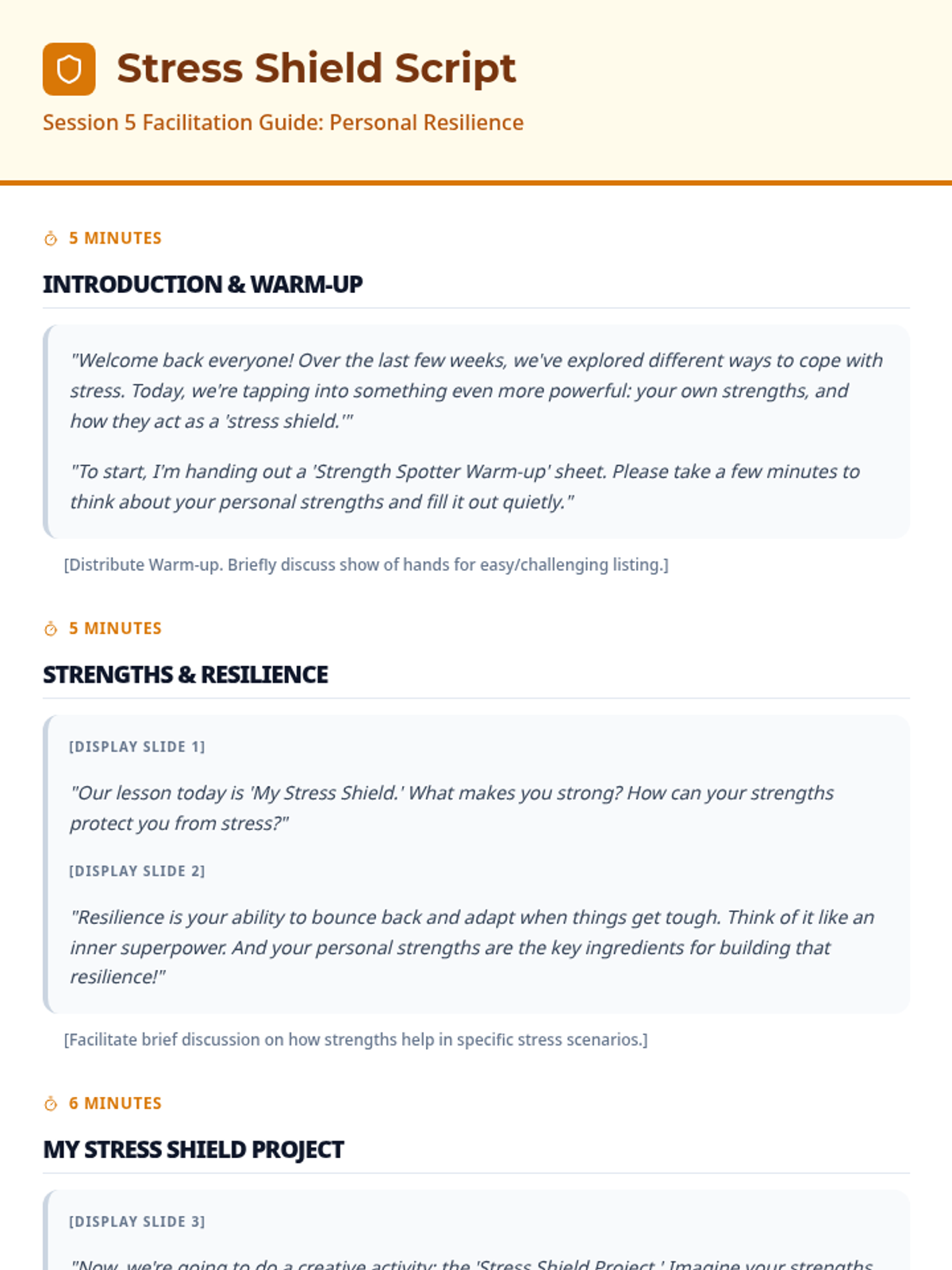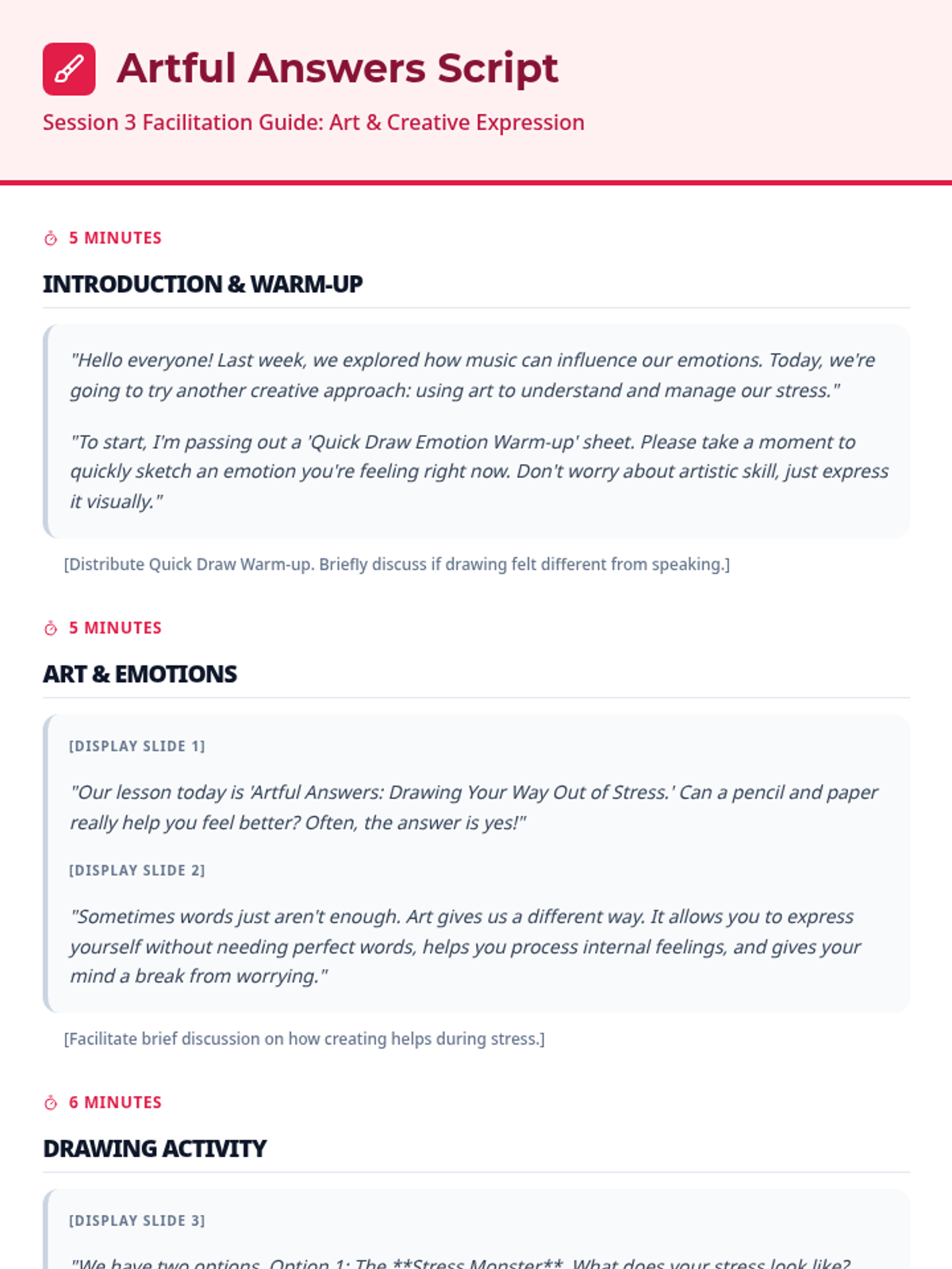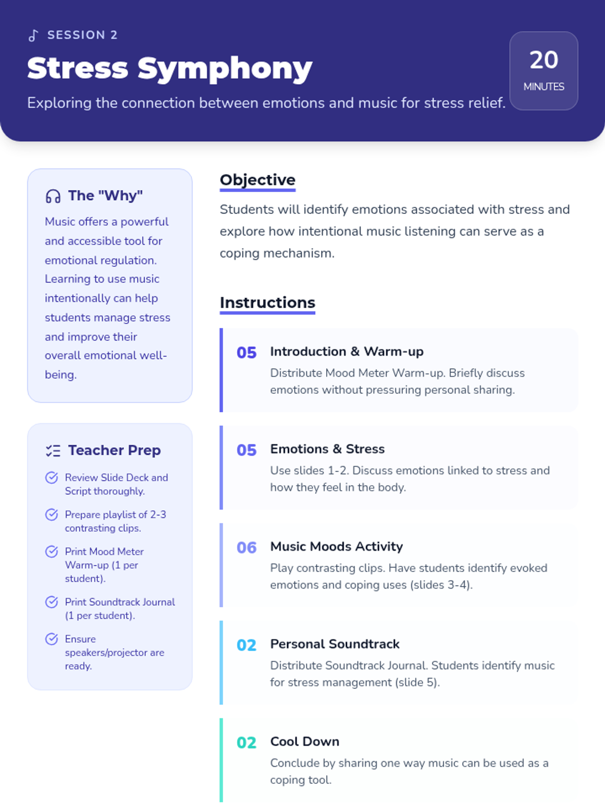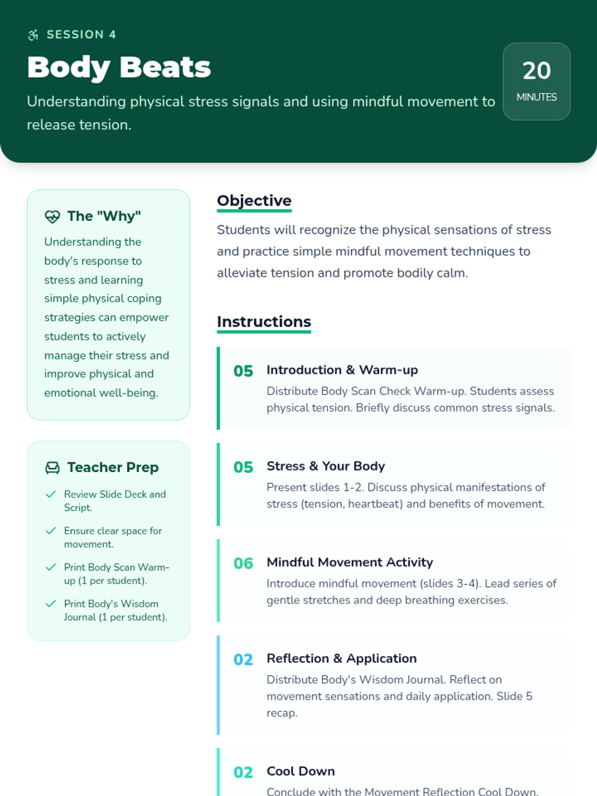 A 6-session Tier 2 small group sequence for 8th graders designed to build stress management skills and resilience through various creative and mindfulness-based strategies.