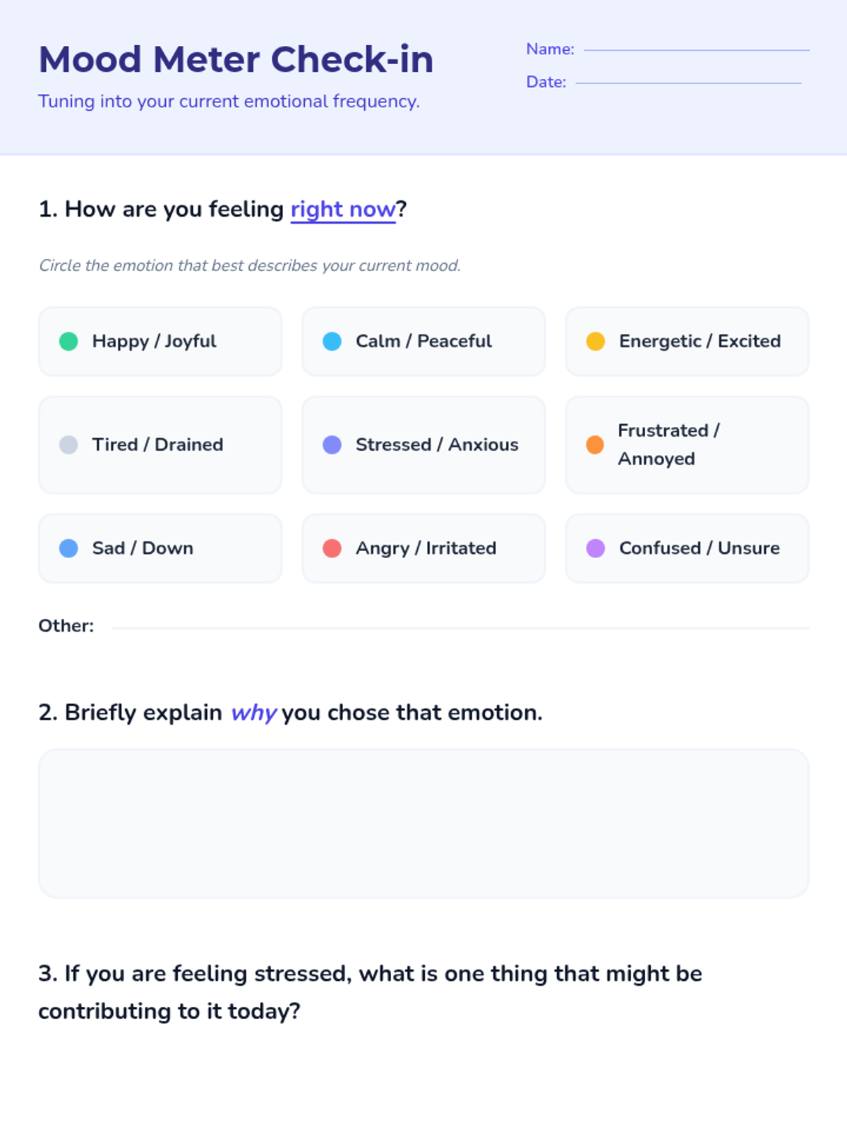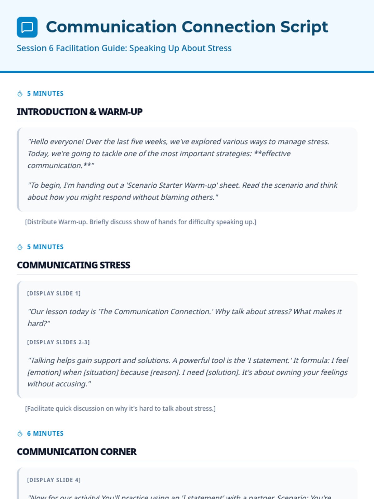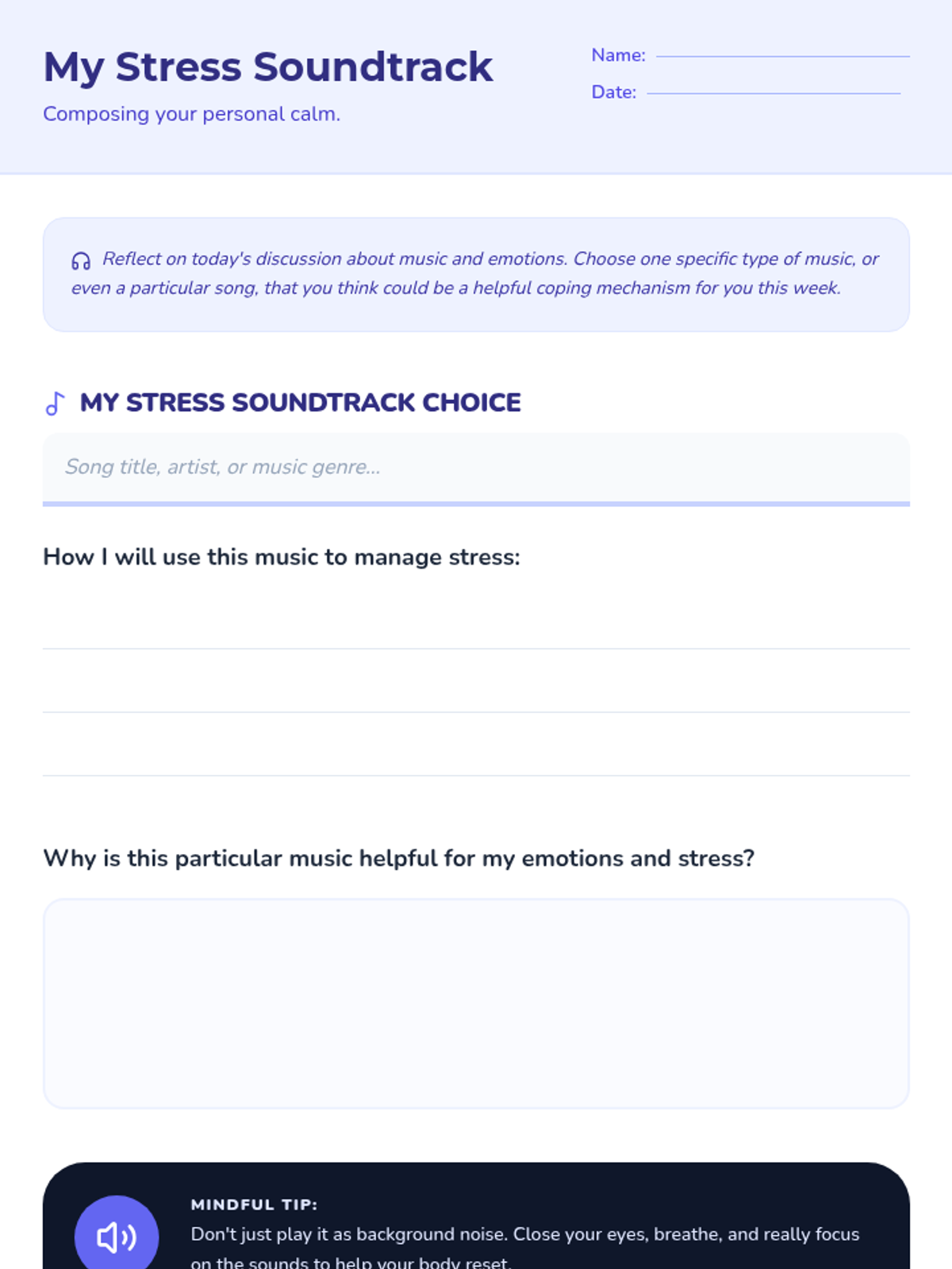 A 6-session counseling group designed to help students identify triggers, understand physical symptoms of anxiety, and build a personalized toolkit of coping strategies through a 'Calm Explorer' theme.