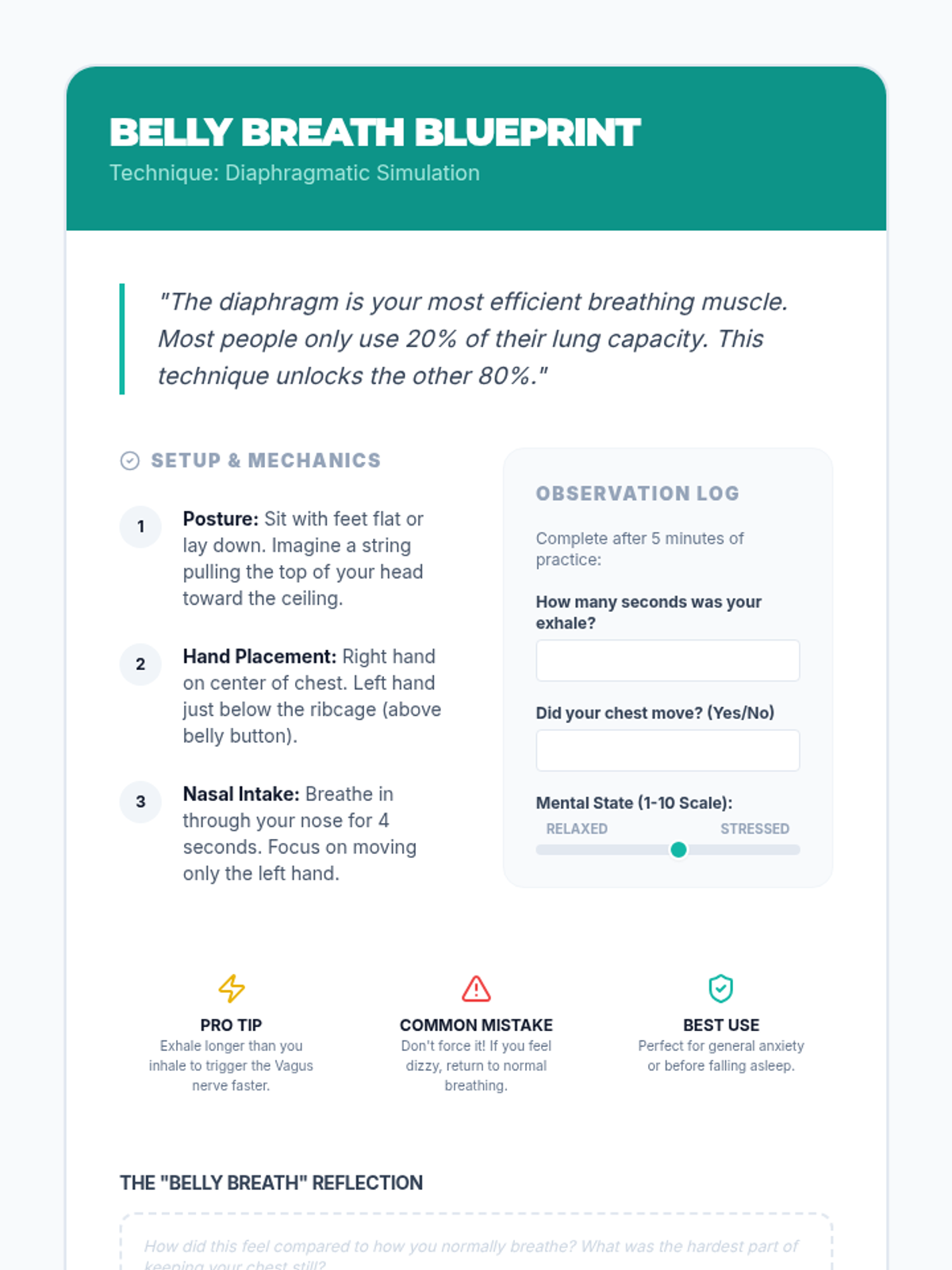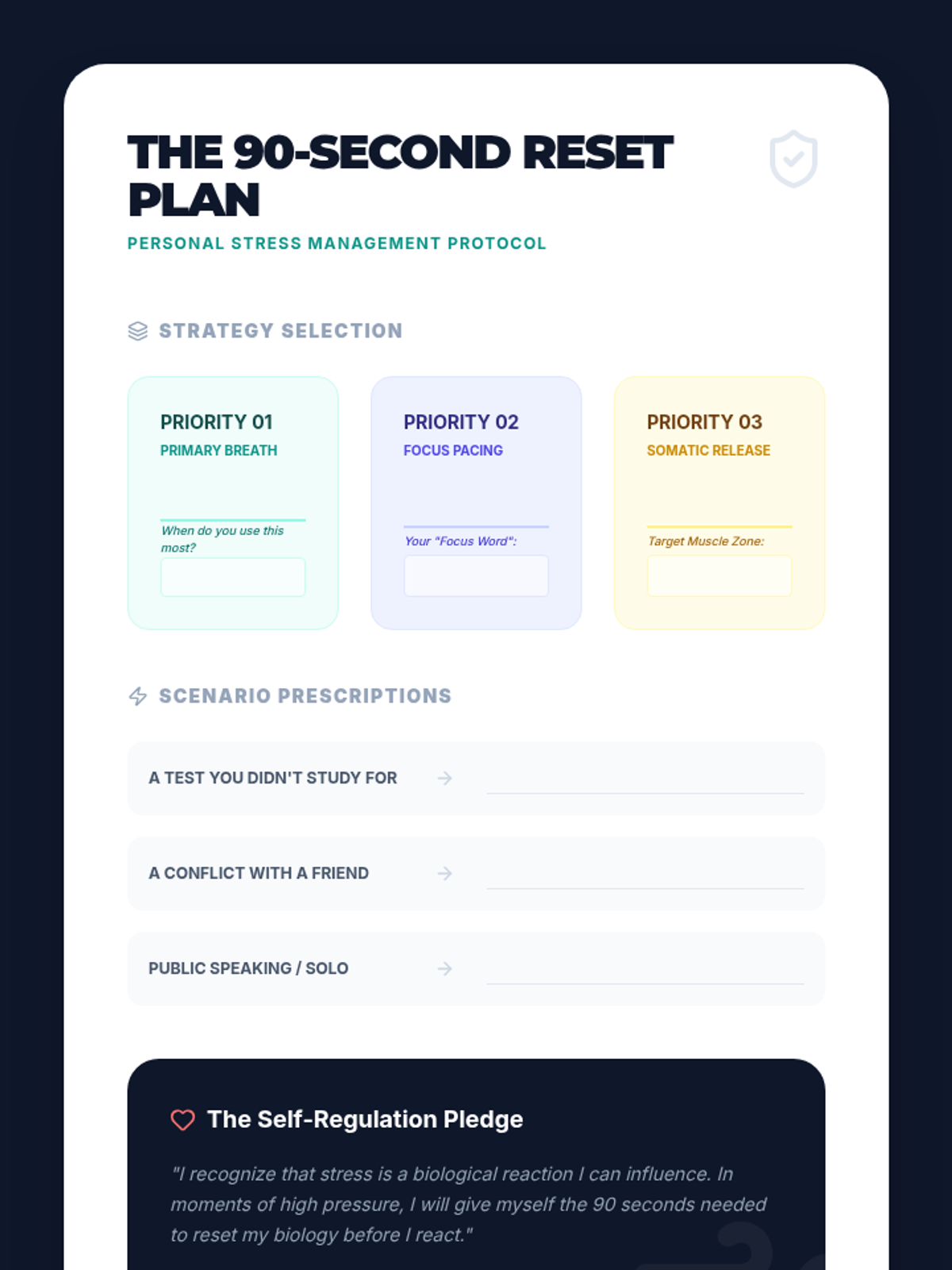 This sequence explores the physiological connection between breath, the nervous system, and stress management. Students learn to transition from 'fight or flight' to the 'rest and digest' state through evidence-based techniques like diaphragmatic breathing, box breathing, and progressive muscle relaxation, ultimately building a personalized self-regulation toolkit.