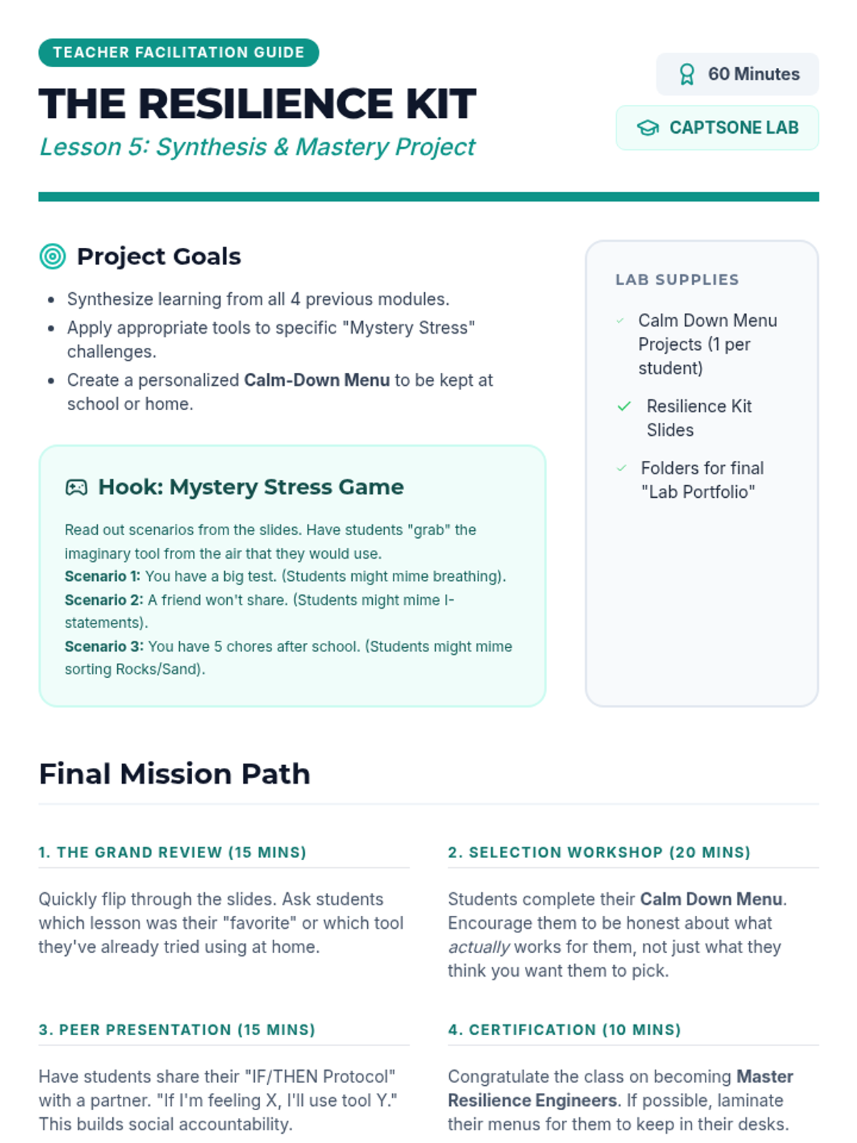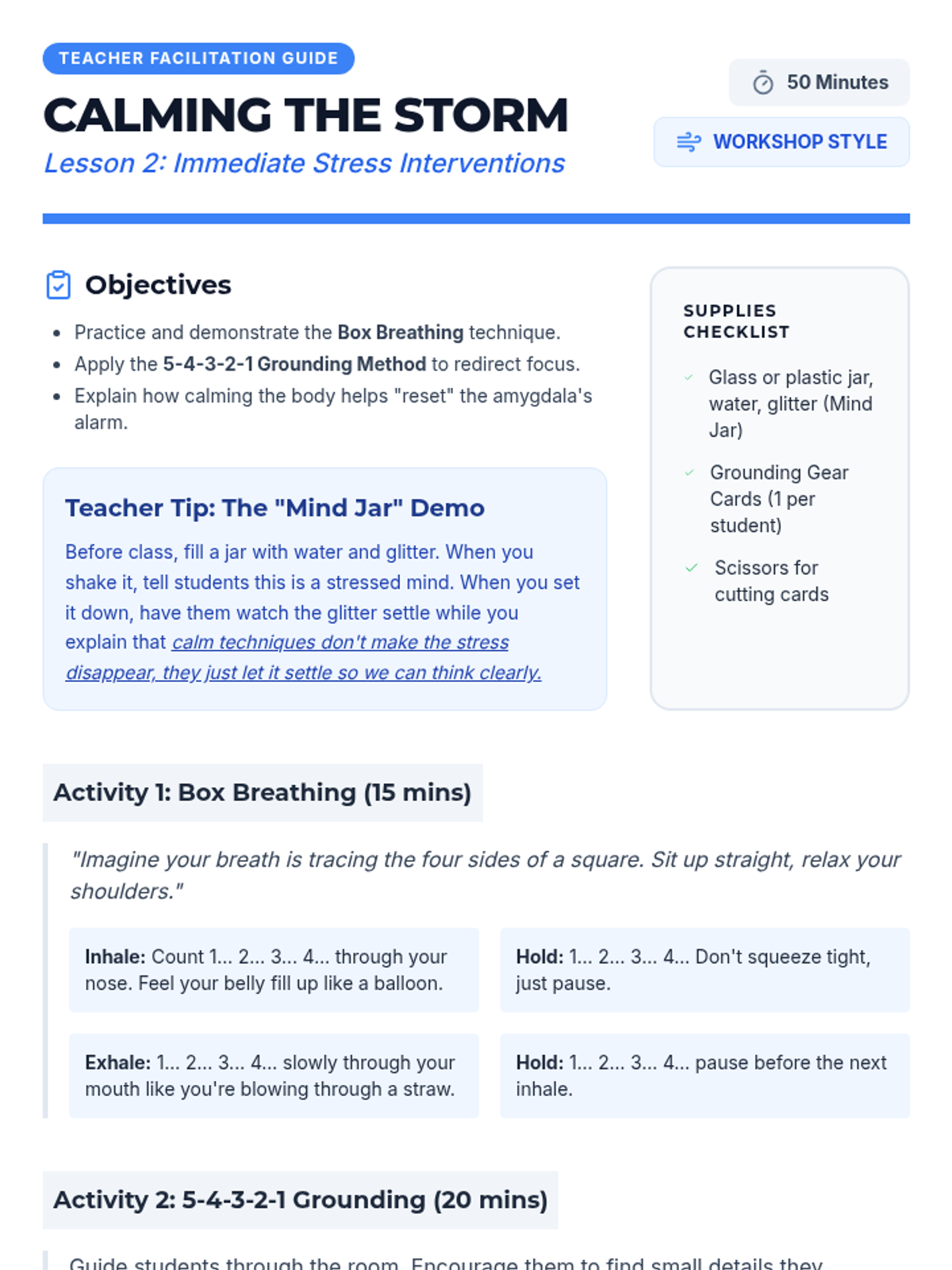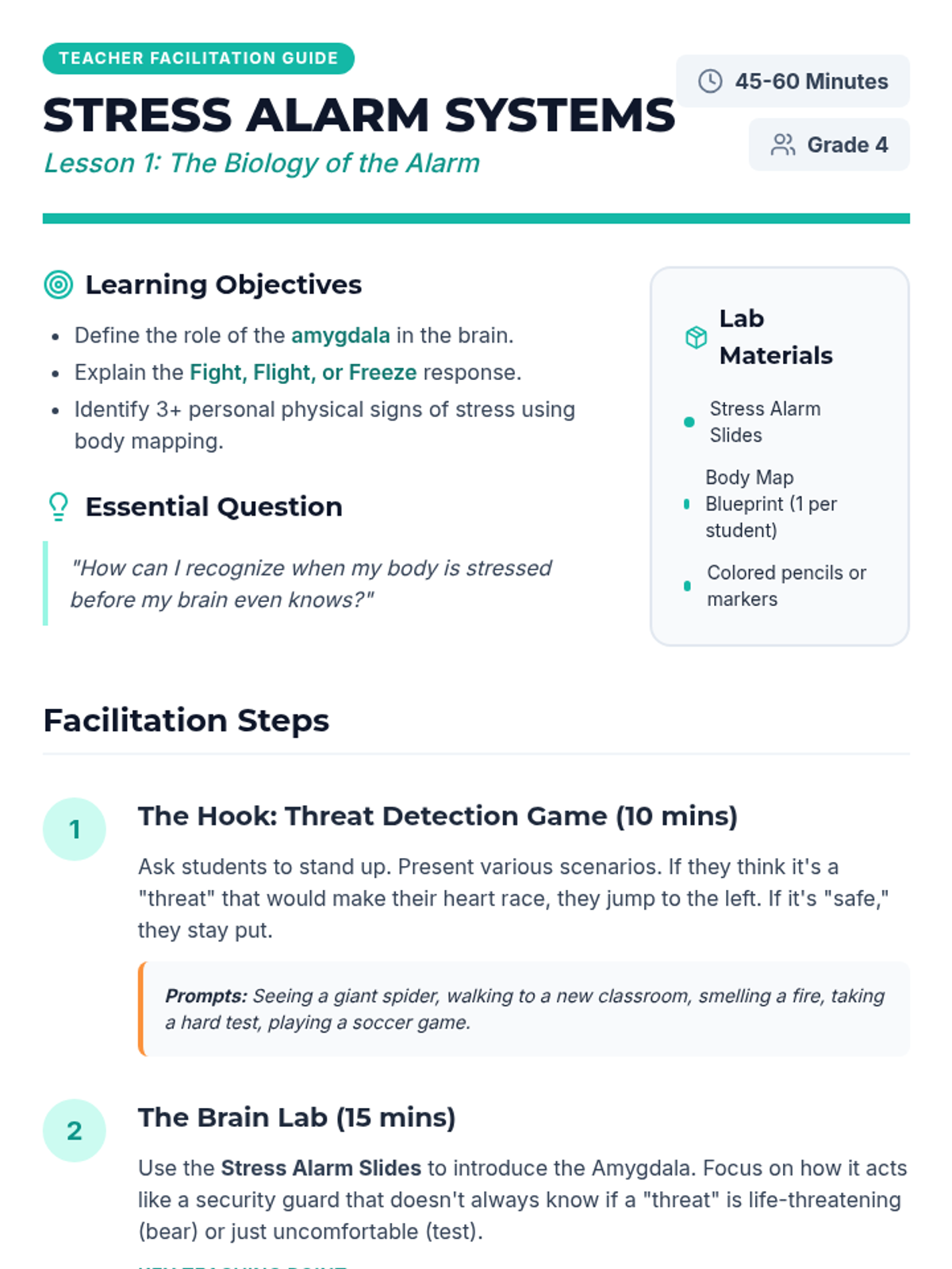 A comprehensive unit for 4th graders to understand the biology of stress, practice immediate grounding techniques, manage their time effectively, set boundaries, and build a personalized resilience toolkit.