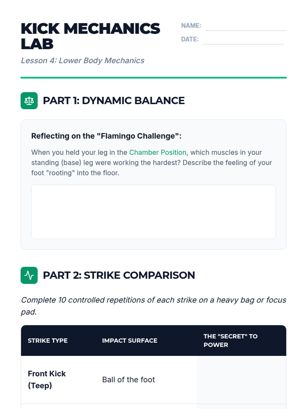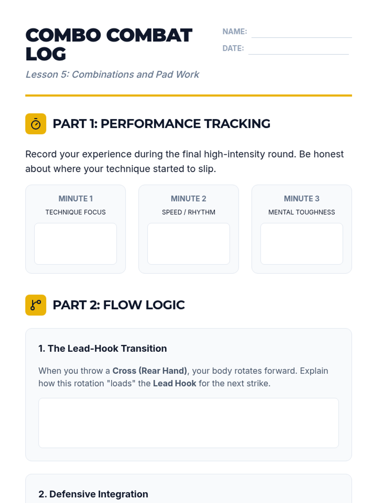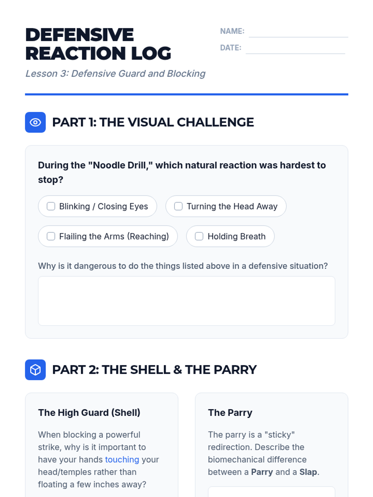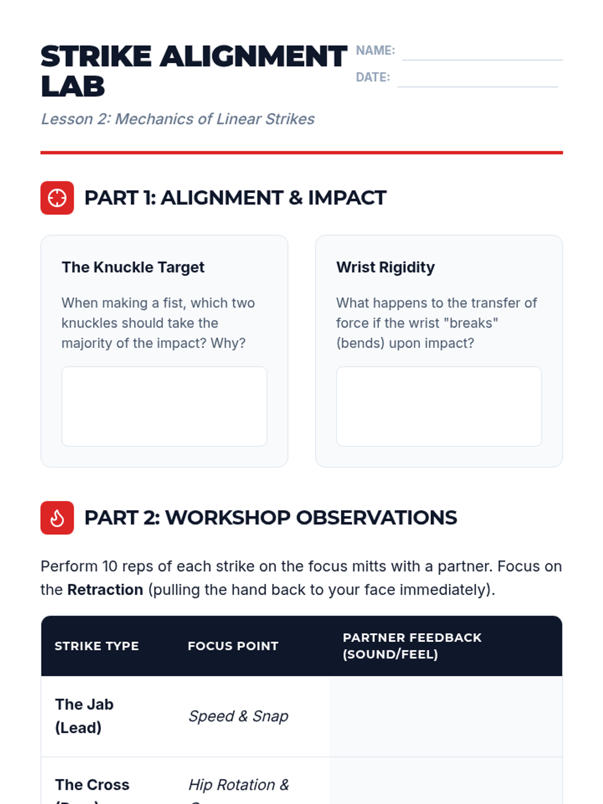 A comprehensive 5-lesson sequence for 10th-grade students focusing on the biomechanics of striking and defense. Students explore stance, linear strikes, defensive guards, lower body techniques, and high-intensity combinations.