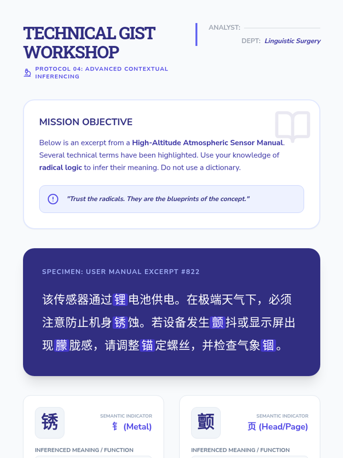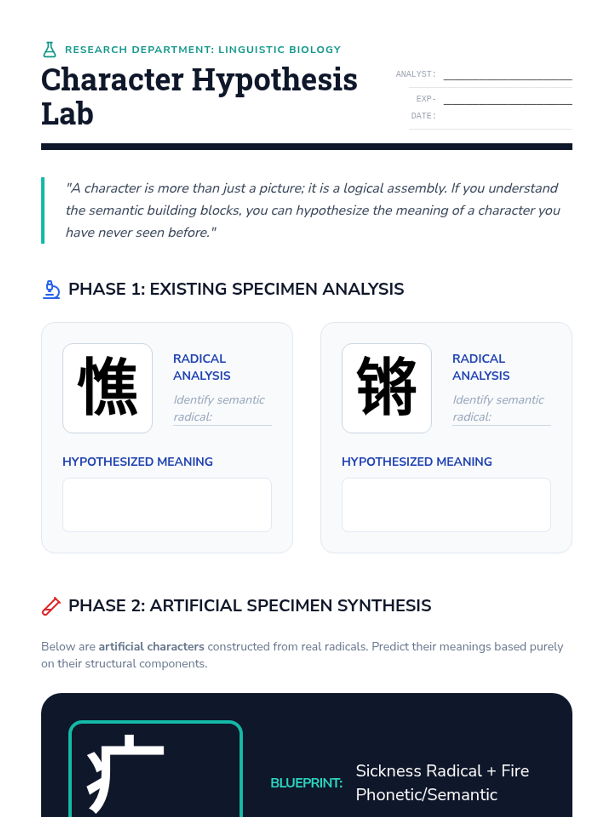 An advanced exploration of Mandarin character structure for graduate students, focusing on the semantic and phonetic logic of HSK 3-4 vocabulary to facilitate rapid lexicon expansion and academic reading skills.