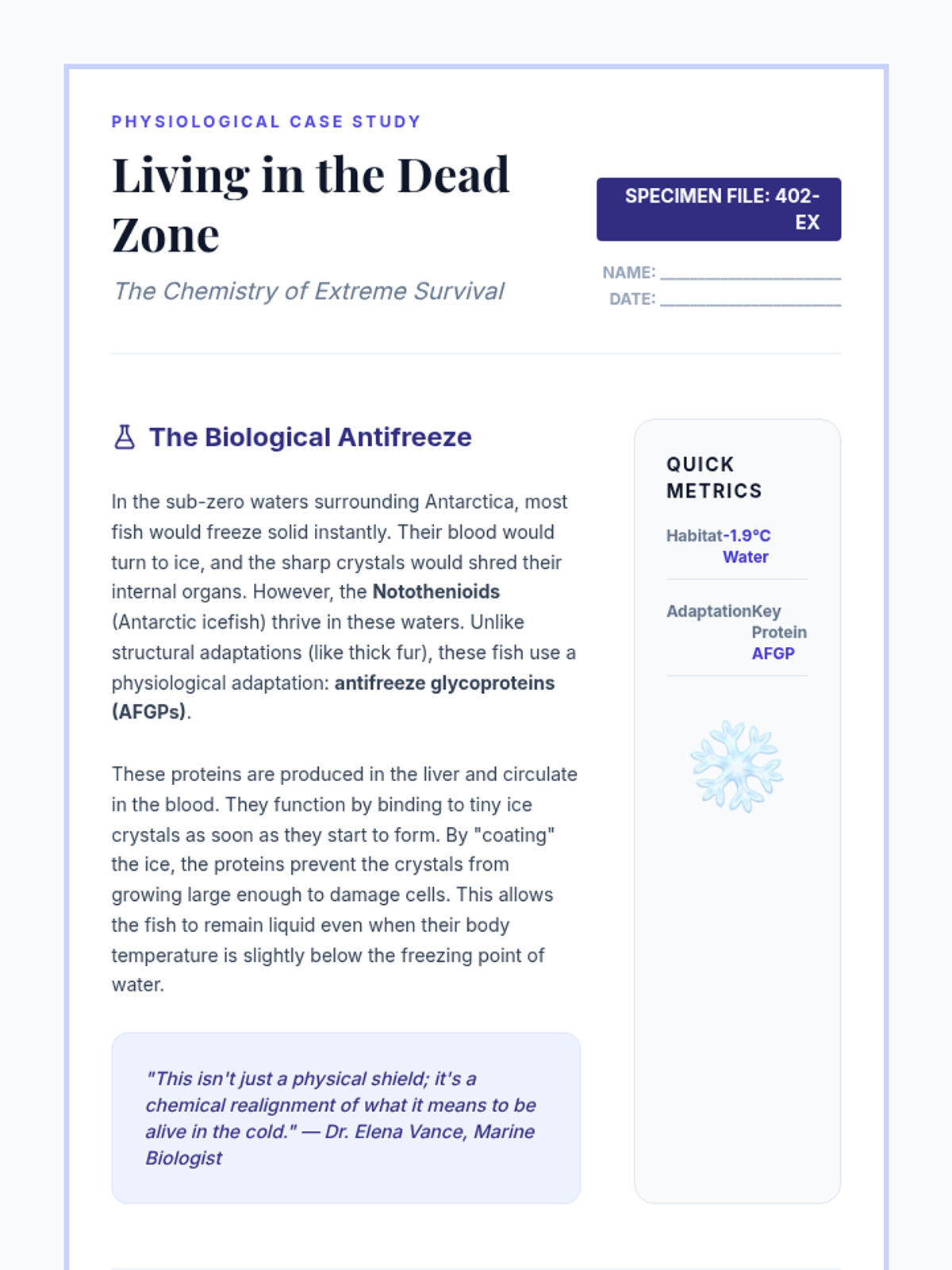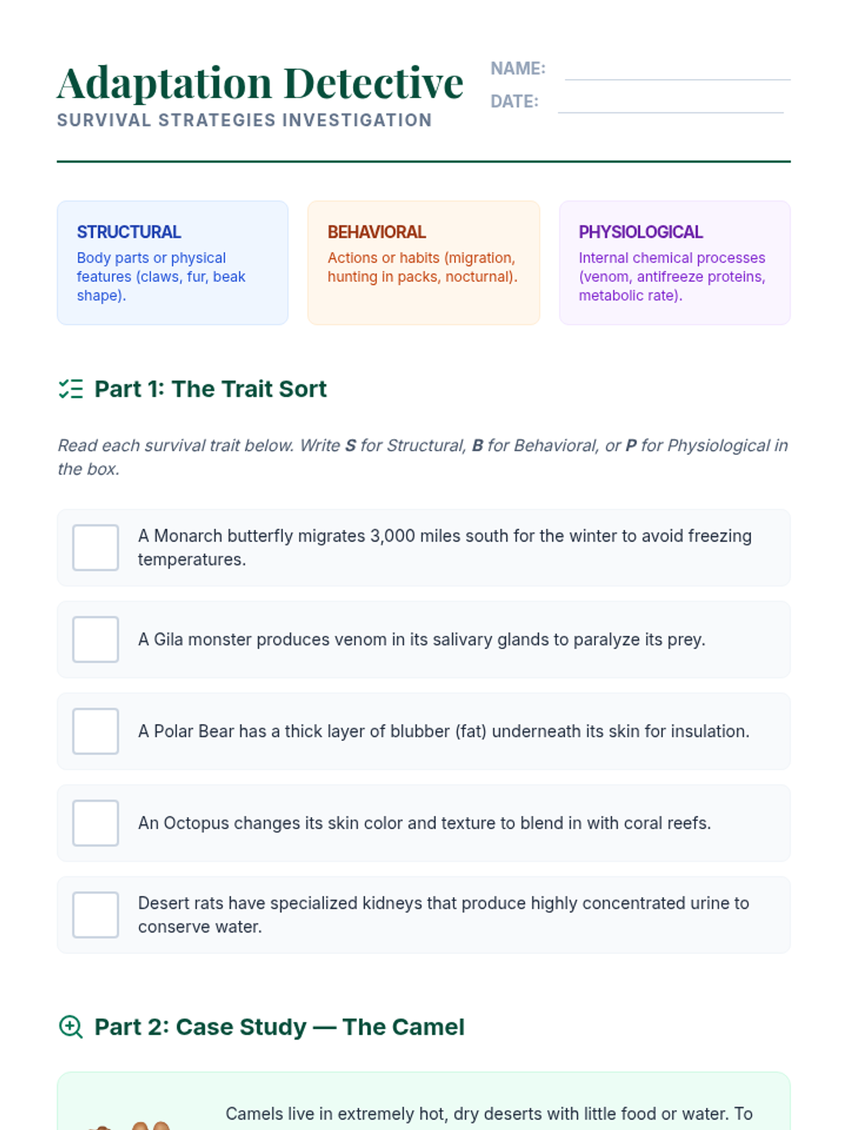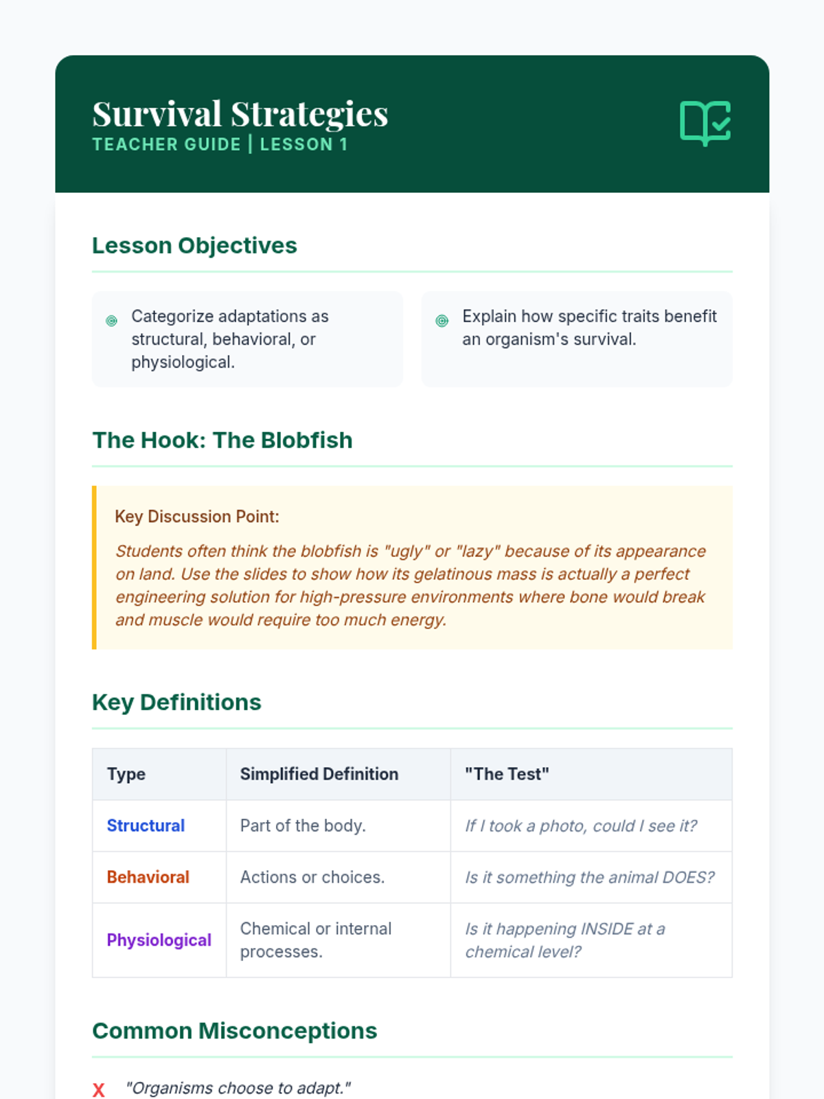 A comprehensive 9th-grade life science unit exploring how environmental pressures drive structural, physiological, and behavioral adaptations through case studies, simulations, and comparative anatomy.