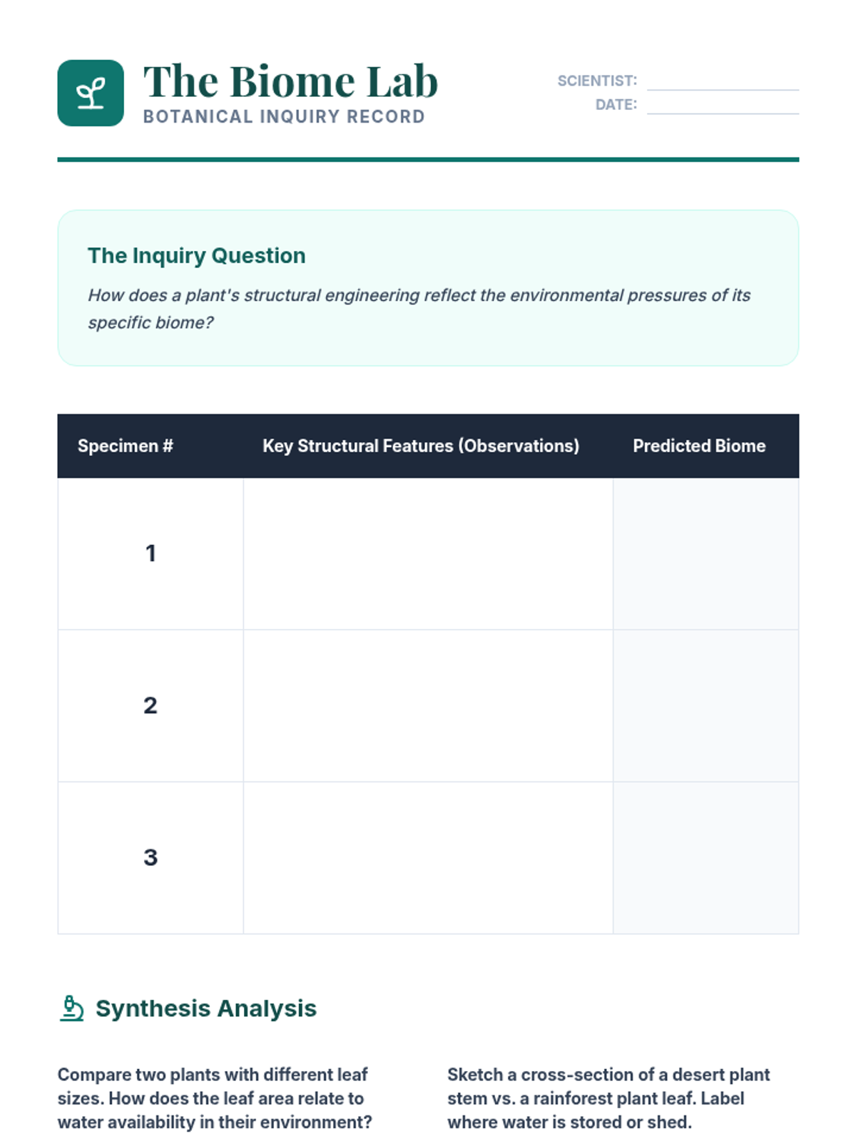 A comprehensive science unit focused on global biomes, adaptations, and ecological relationships, culminating in a creative travel brochure project.