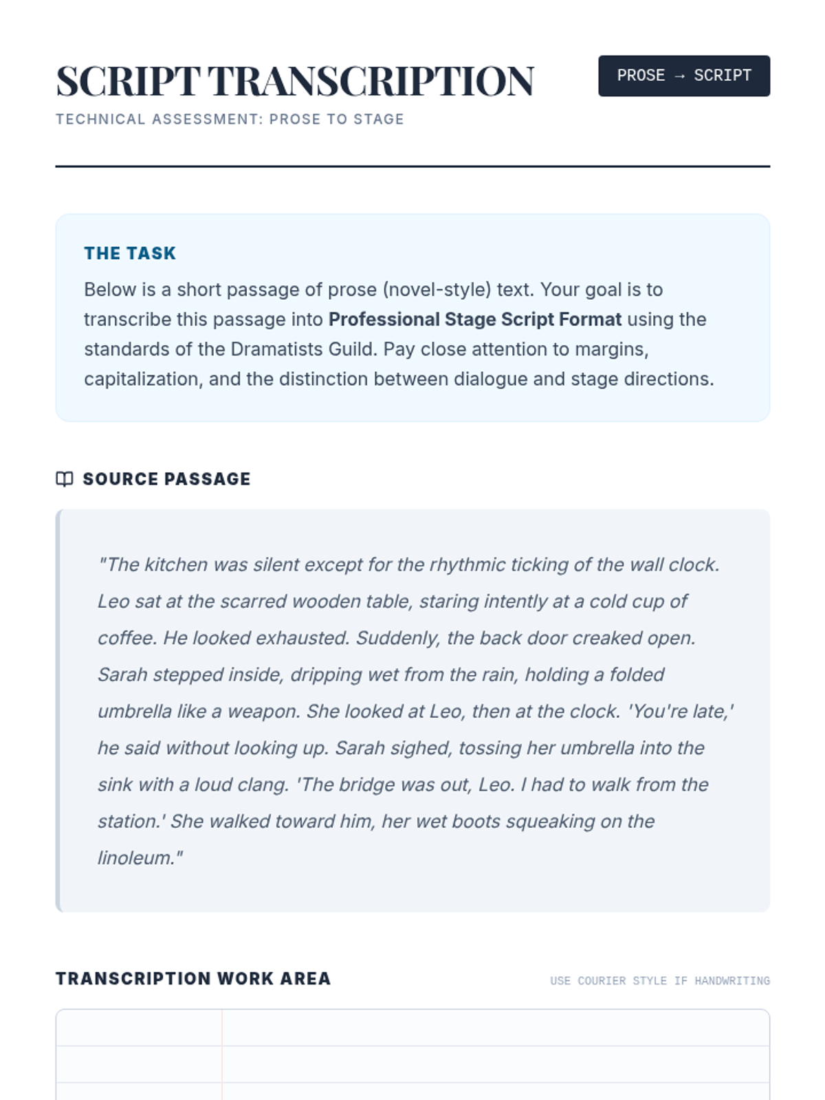 A workshop-style series for 11th-grade playwrights focusing on the craft of dialogue. Students learn to differentiate dramatic dialogue from natural speech, develop unique character voices, master subtext, and apply professional script formatting.