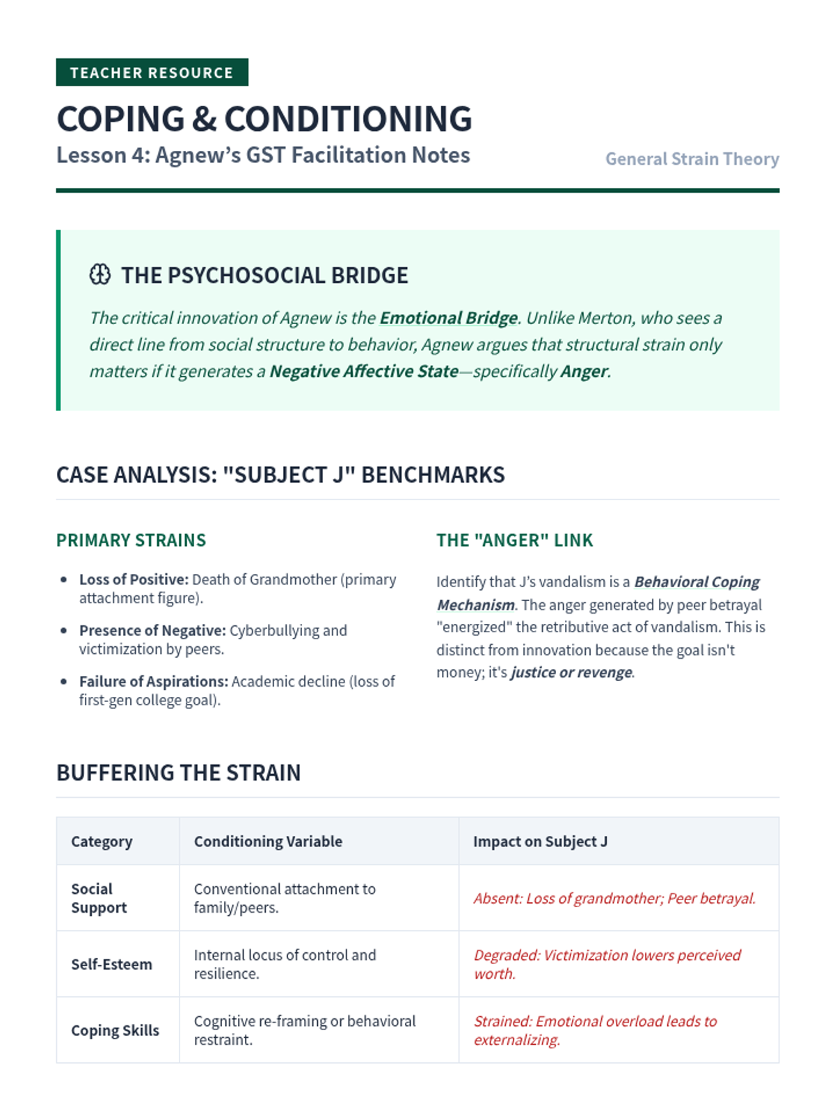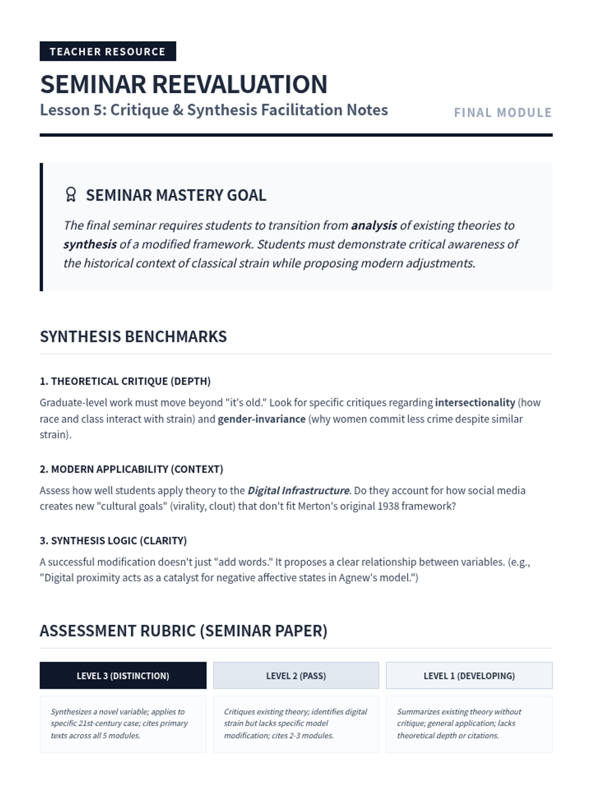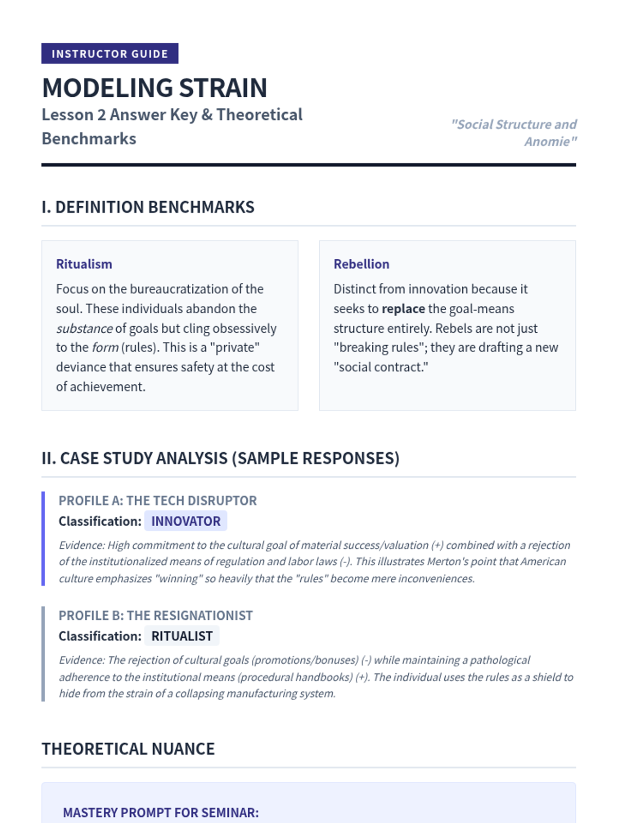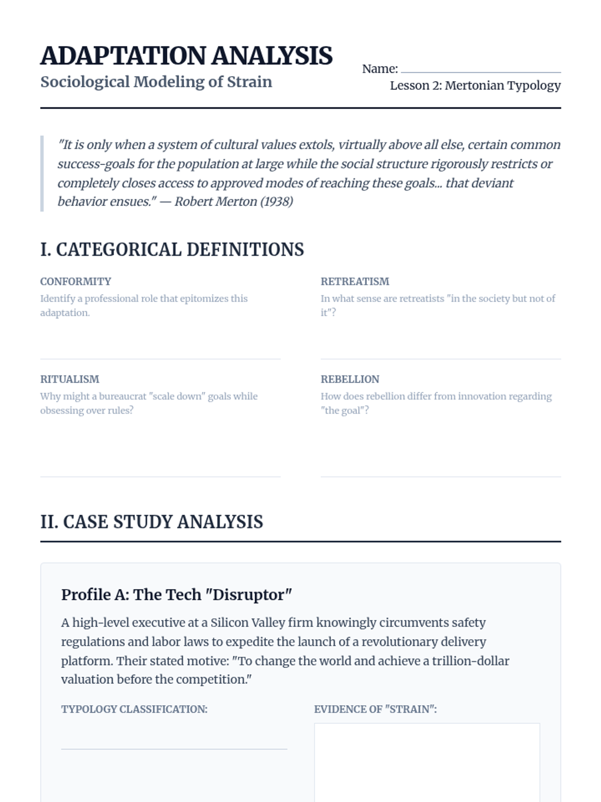 This graduate-level sequence explores the structural-functionalist roots of deviance, examining how societal organization influences nonconformity from Durkheim's anomie to Agnew's General Strain Theory. Students engage in high-level theoretical synthesis and critical evaluation of macro-social pressures.