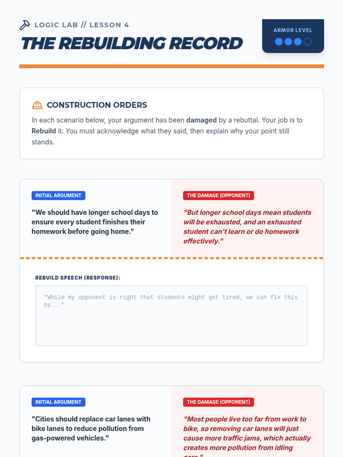 A comprehensive sequence for 6th-grade students to master the art of 'clash' and the Four-Step Refutation model in competitive and academic debate. Students move from identifying direct engagement to performing real-time rebuttals and rebuilding their own arguments after critique.