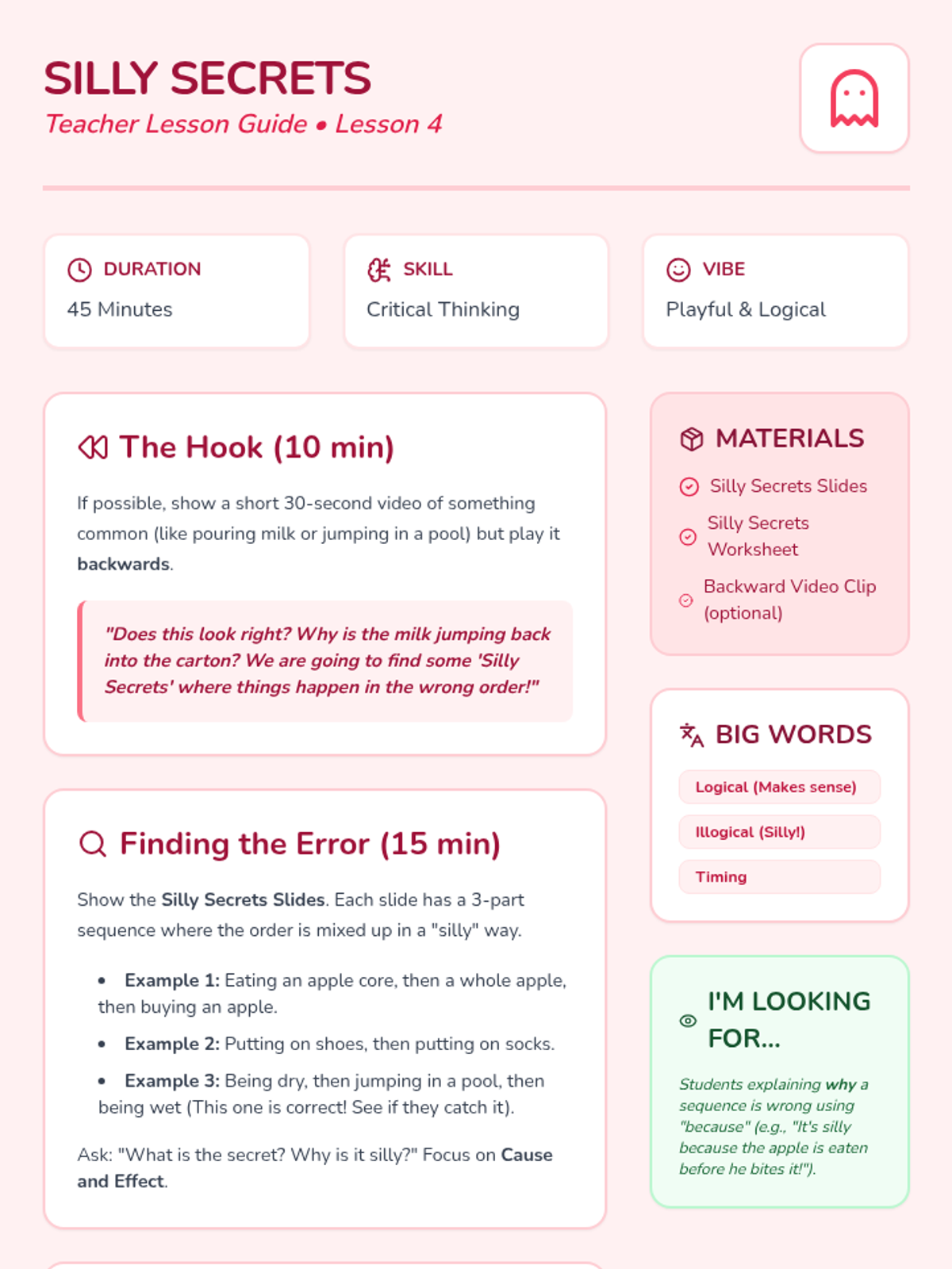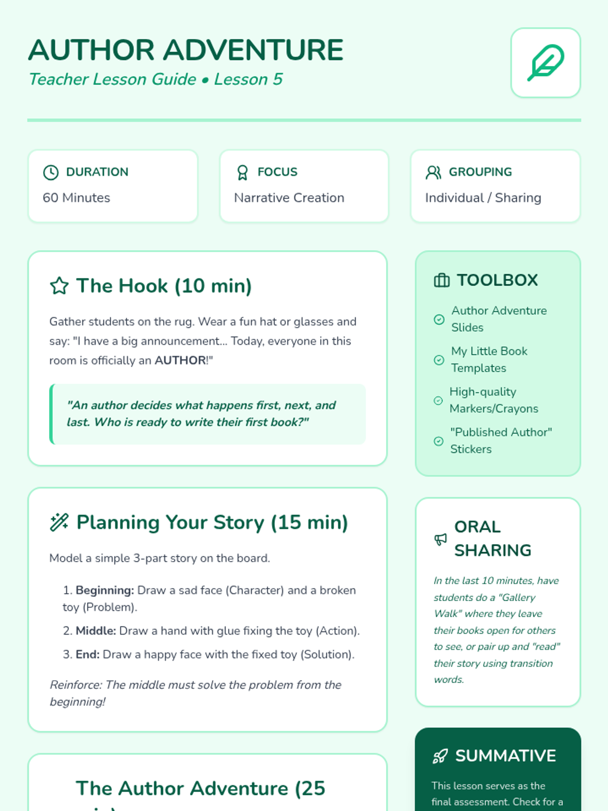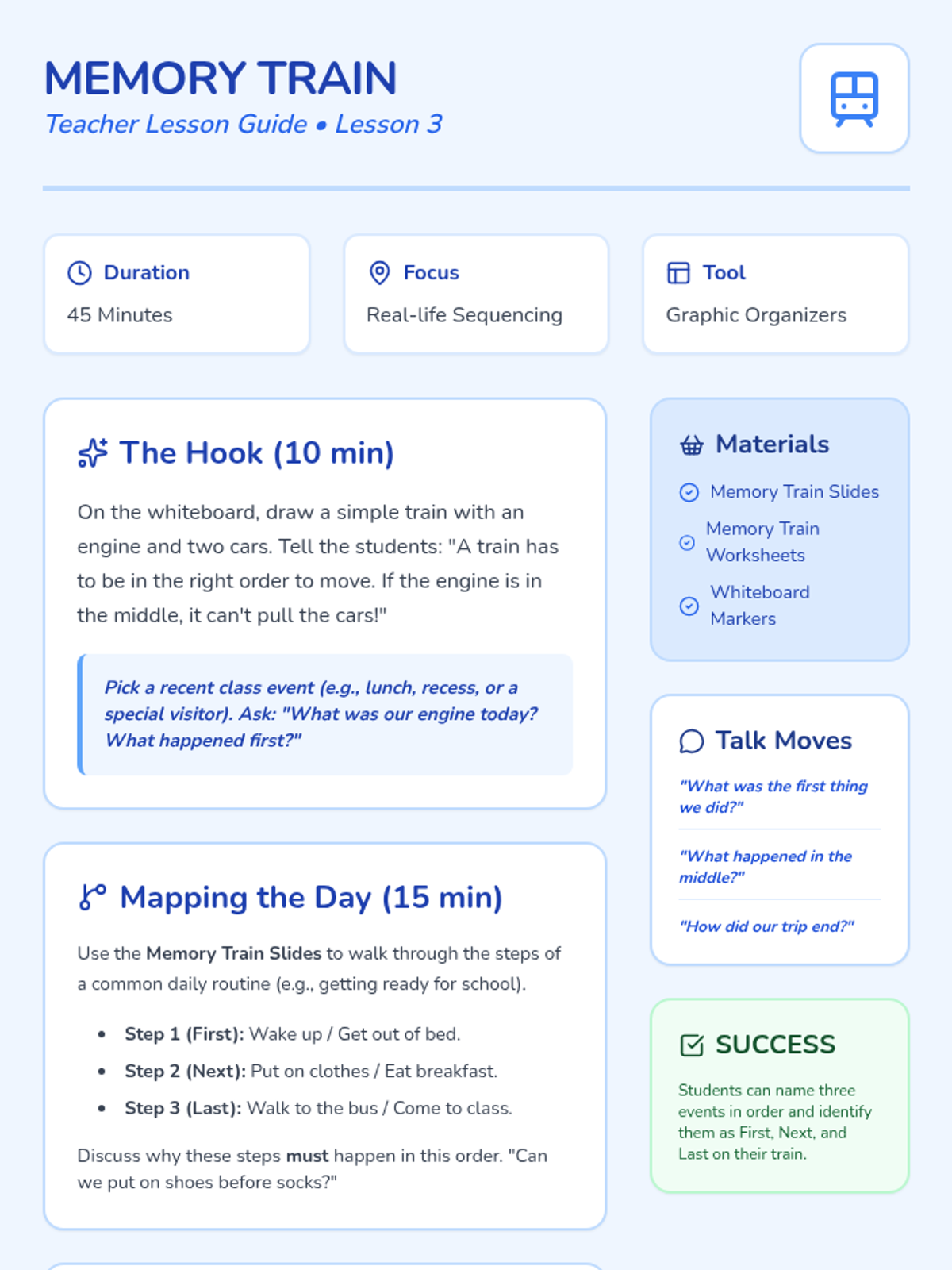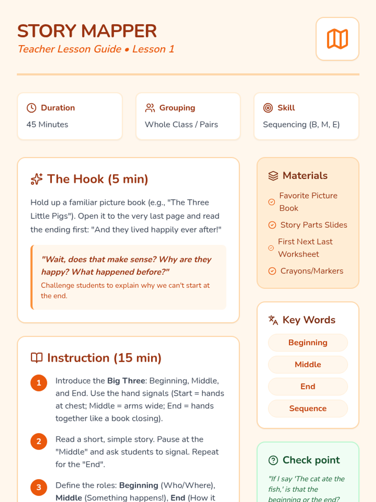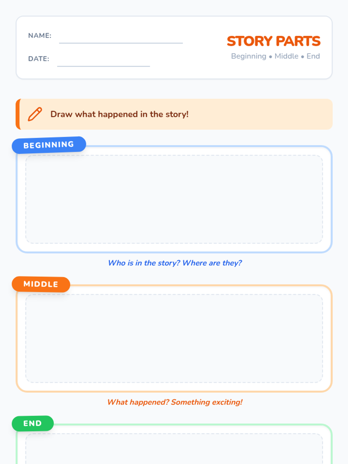 This Kindergarten sequence introduces students to the concept of chronological order through the lens of narrative structure. Students learn to identify and create sequences using the 'Beginning, Middle, and End' framework, bridging social studies sequencing skills with early literacy.