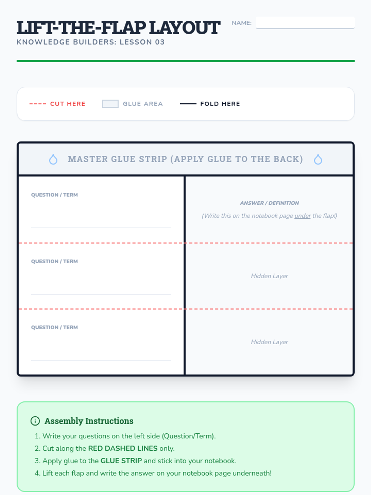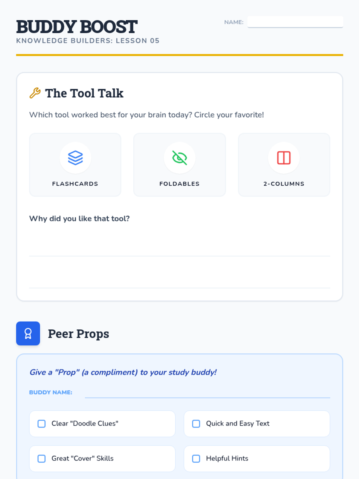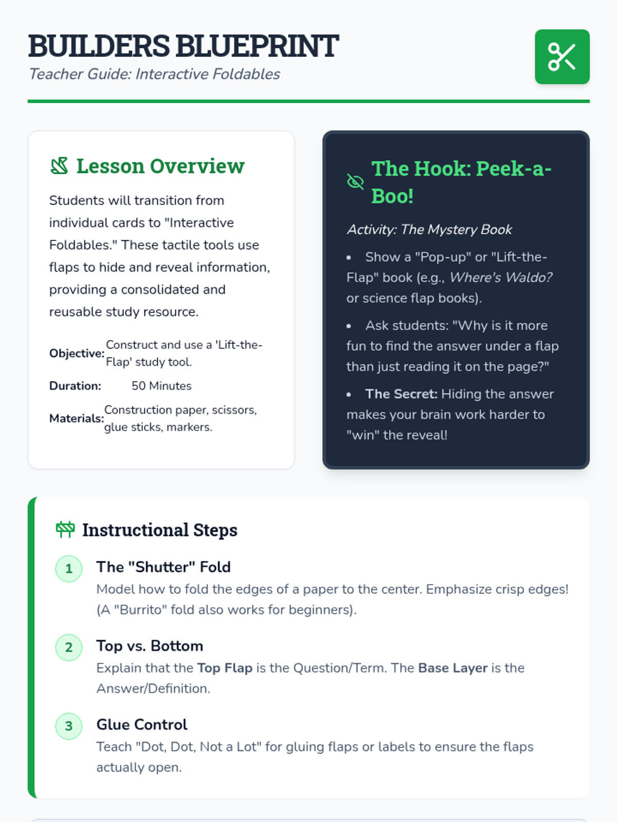 A hands-on sequence for 3rd-grade students in academic support settings, teaching them to build and use physical study tools like flashcards and foldables to become independent learners.