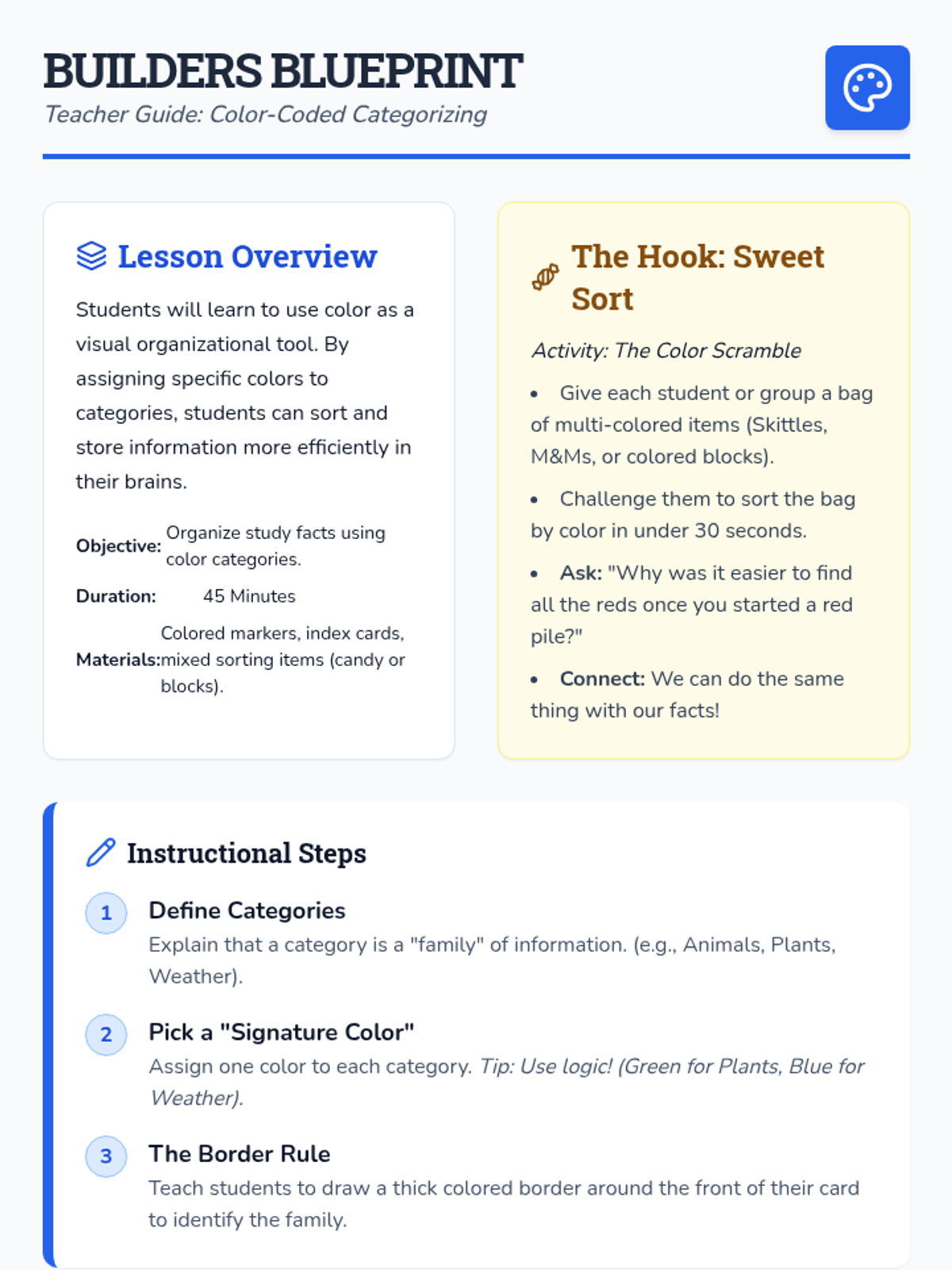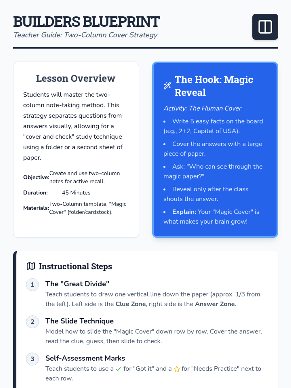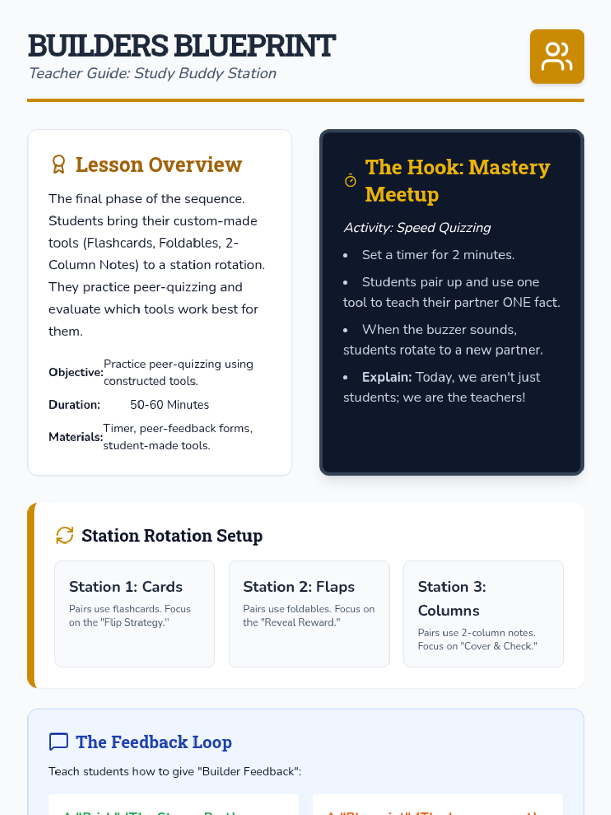 A hands-on sequence for 3rd-grade students in academic support settings, teaching them to build and use physical study tools like flashcards and foldables to become independent learners.