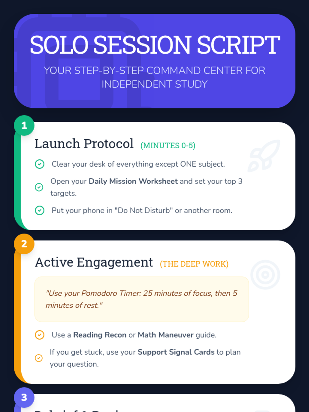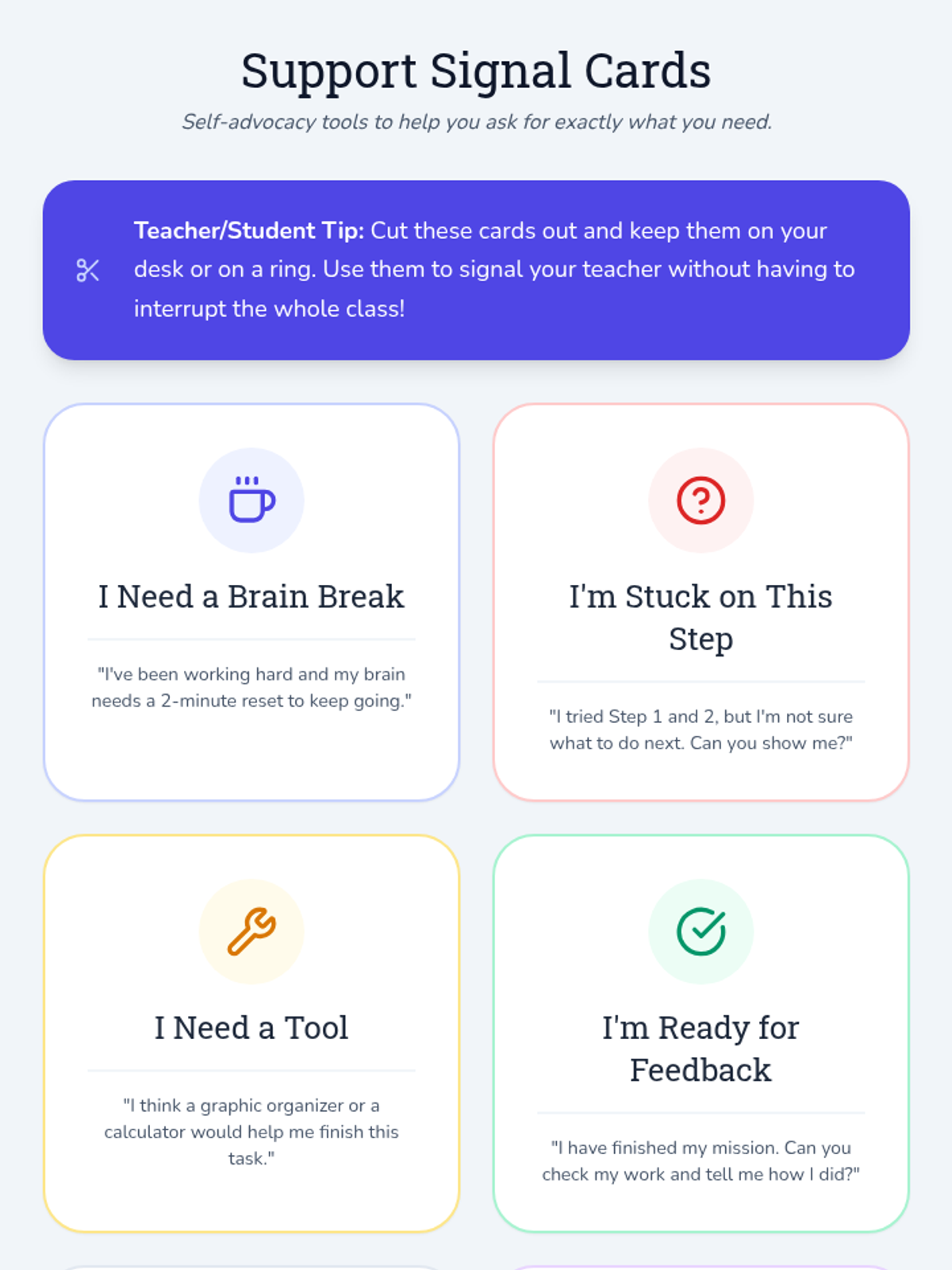 A comprehensive suite of resources designed to empower students with the habits, strategies, and tools needed for successful supported study sessions. This sequence covers organization, reading and math strategies, and self-advocacy skills.