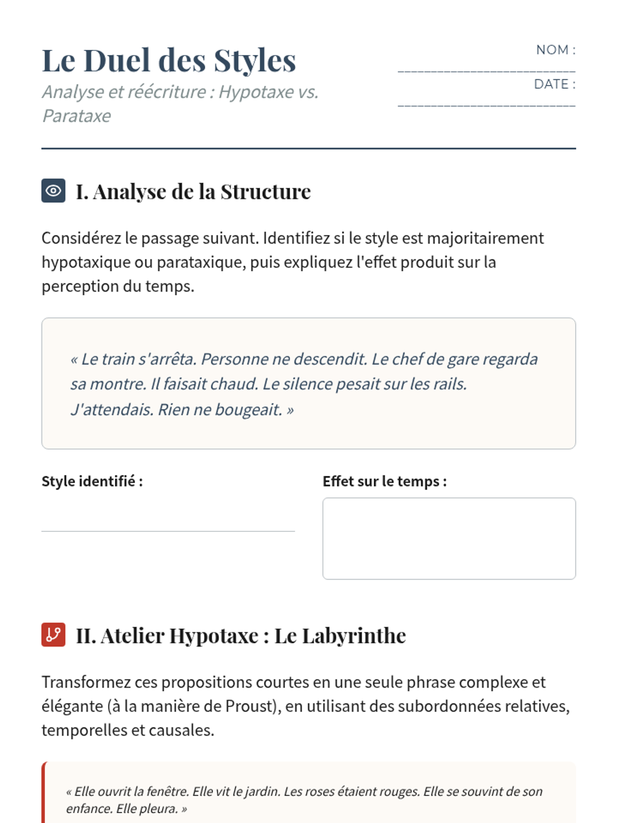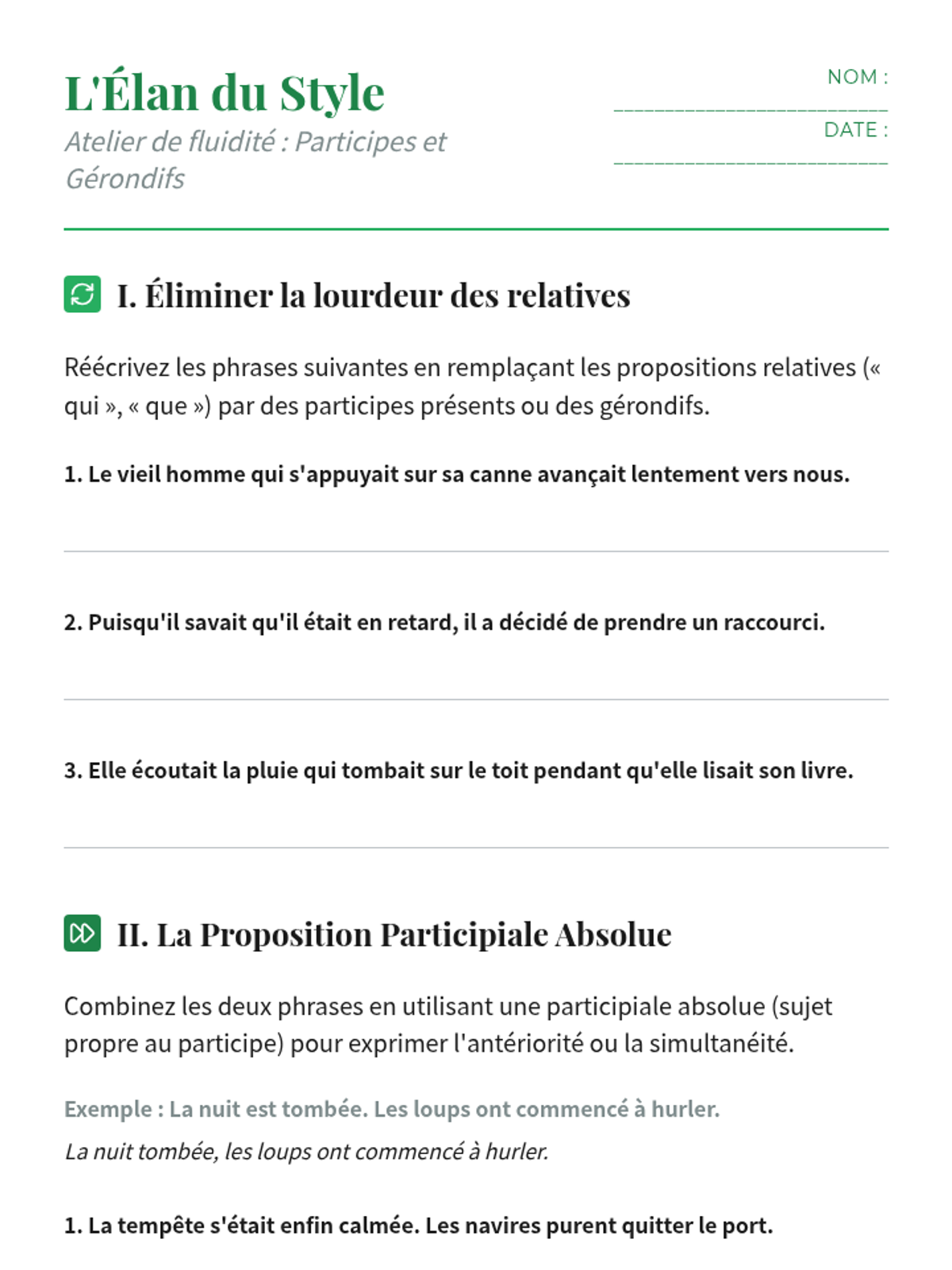 An intensive graduate-level study of French stylistics focusing on syntactic nuance, word order, and the 'art of the sentence.' Students master inversion, hypotaxis, complex verb moods, and punctuation to refine their writing with professional and literary precision.