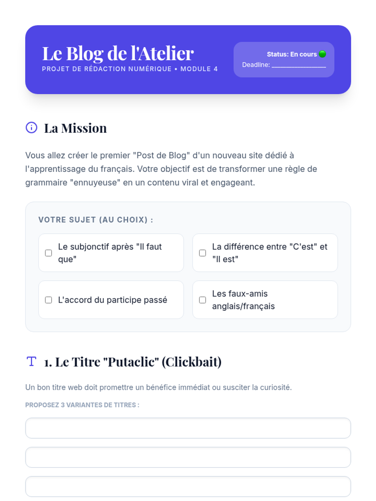This sequence immerses graduate students in the landscape of contemporary French journalism, focusing on current events and social debates. Students move from identifying the structural components of news articles to analyzing complex opinion pieces and synthesizing multiple perspectives on sensitive topics like secularism.