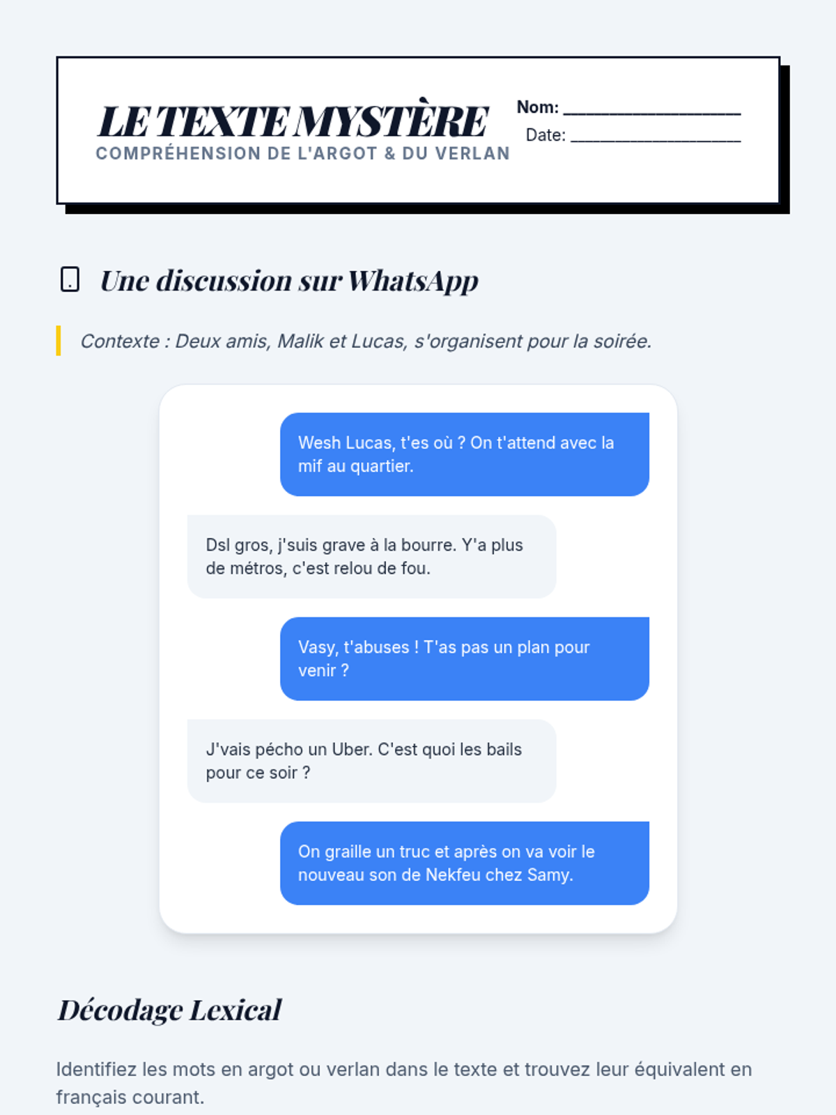 A comprehensive sequence for advanced French students focused on mastering various linguistic registers, from street slang and Verlan to the highly formal style soutenu, culminating in creative stylistic exercises.