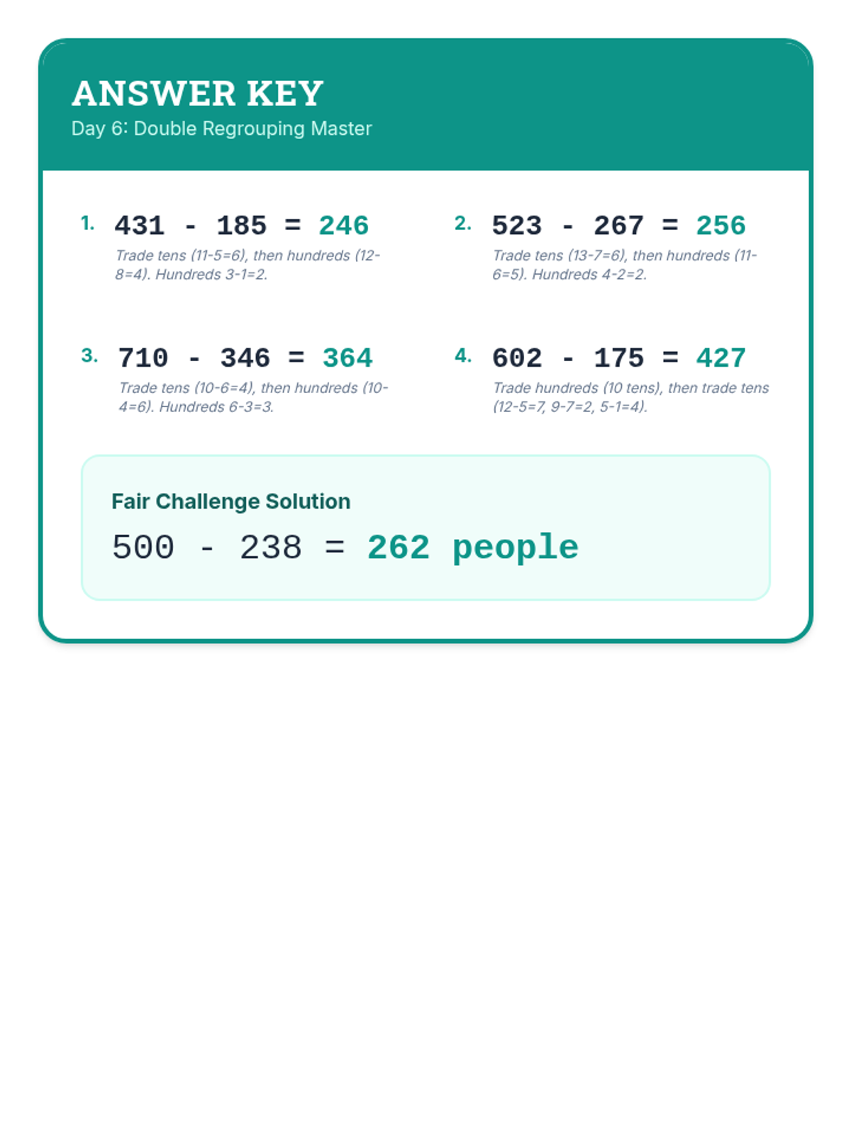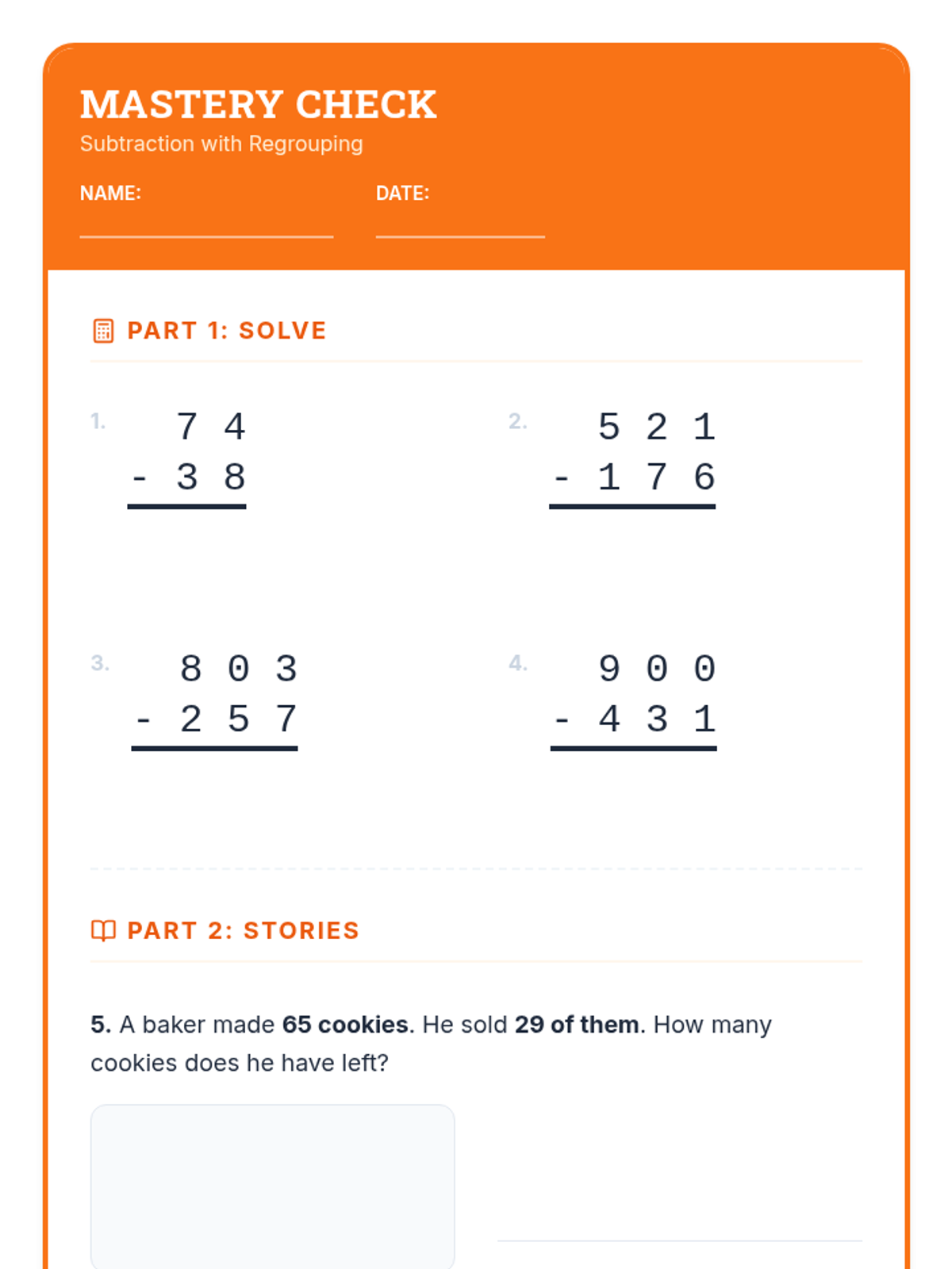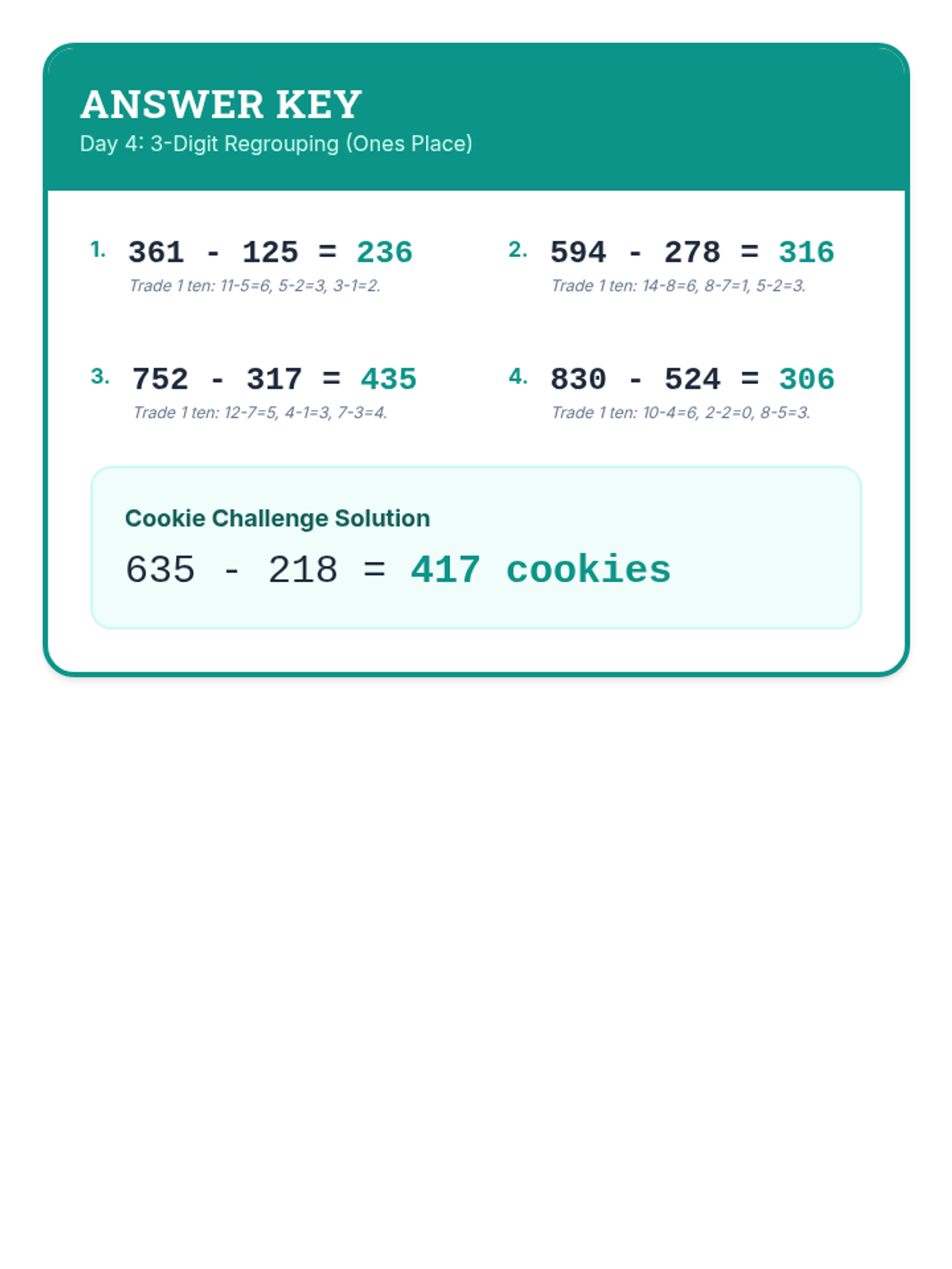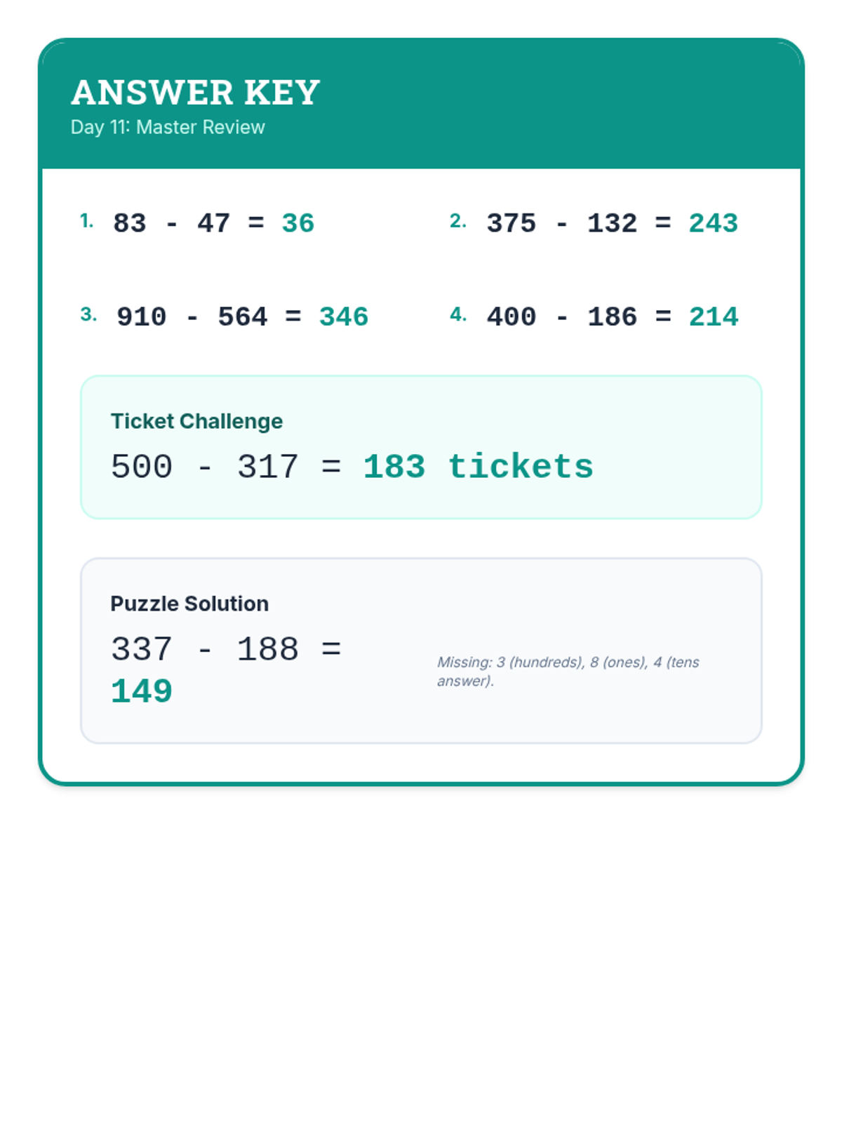 A comprehensive 12-day intervention sequence for 3rd-grade students struggling with subtraction. It covers 2 and 3-digit regrouping using expanded form and the standard algorithm, progressing from simple trades to regrouping across zeros and solving complex word problems.