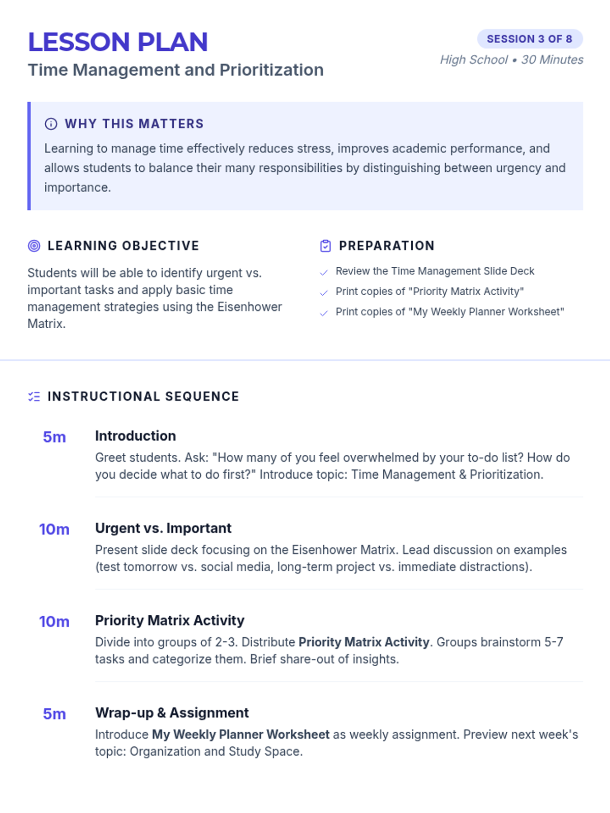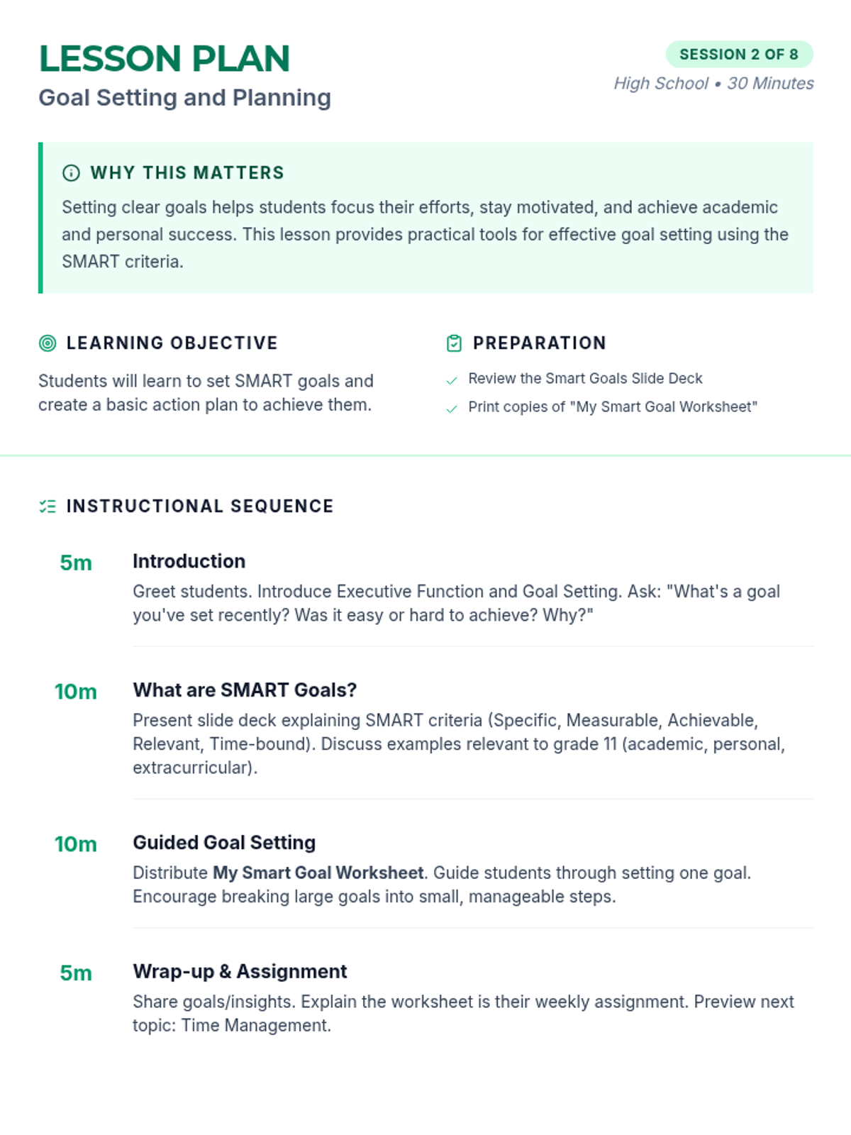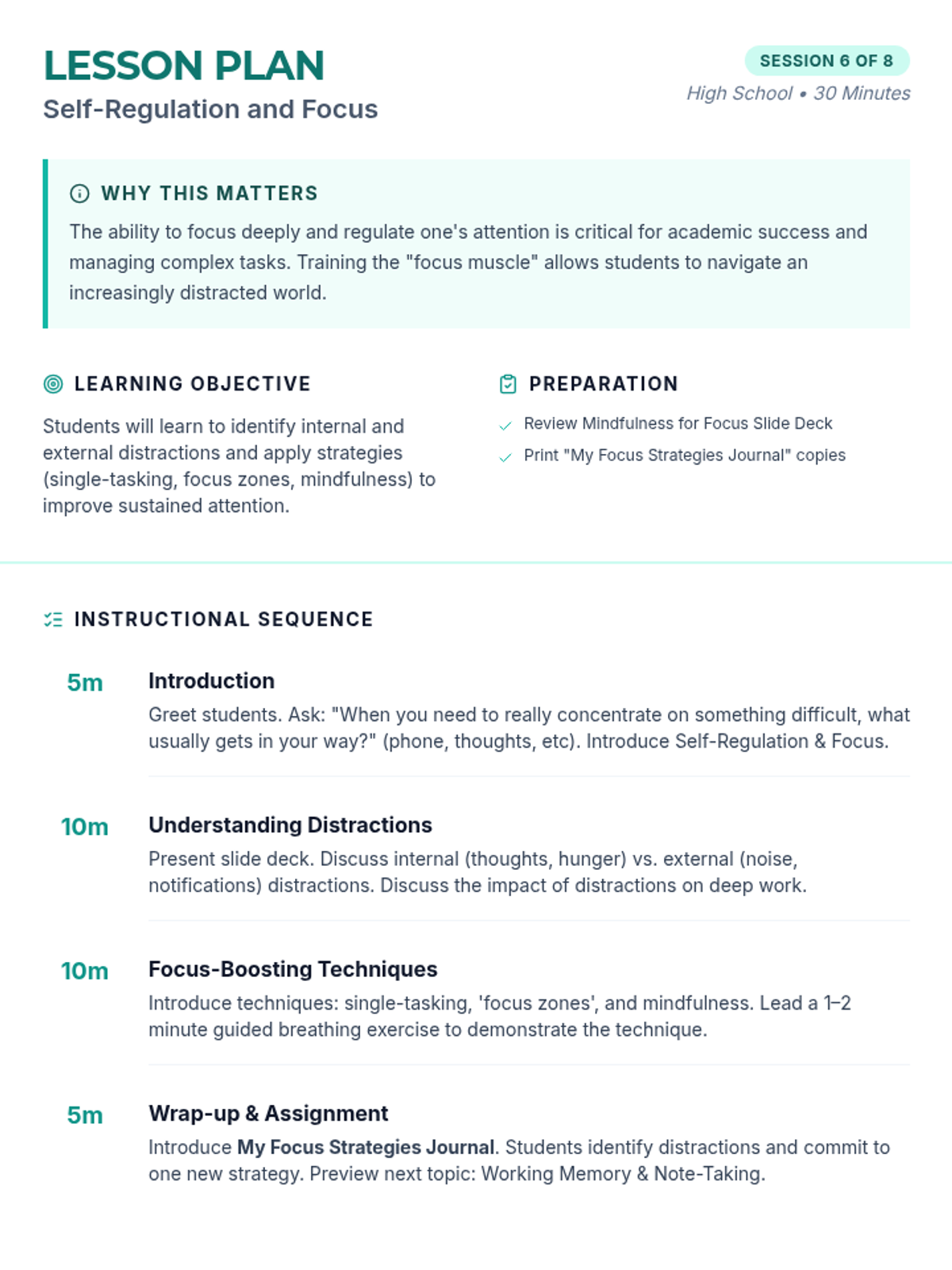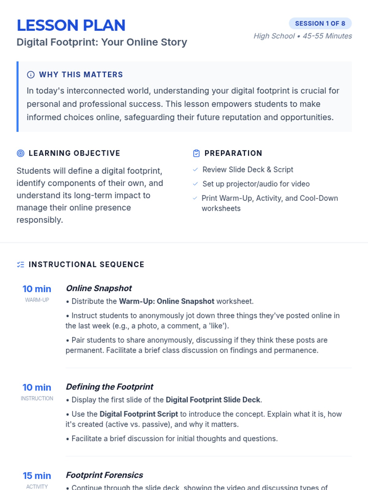A comprehensive 8-session sequence designed for high school students to master their digital presence and develop essential executive function skills for academic and personal success.
