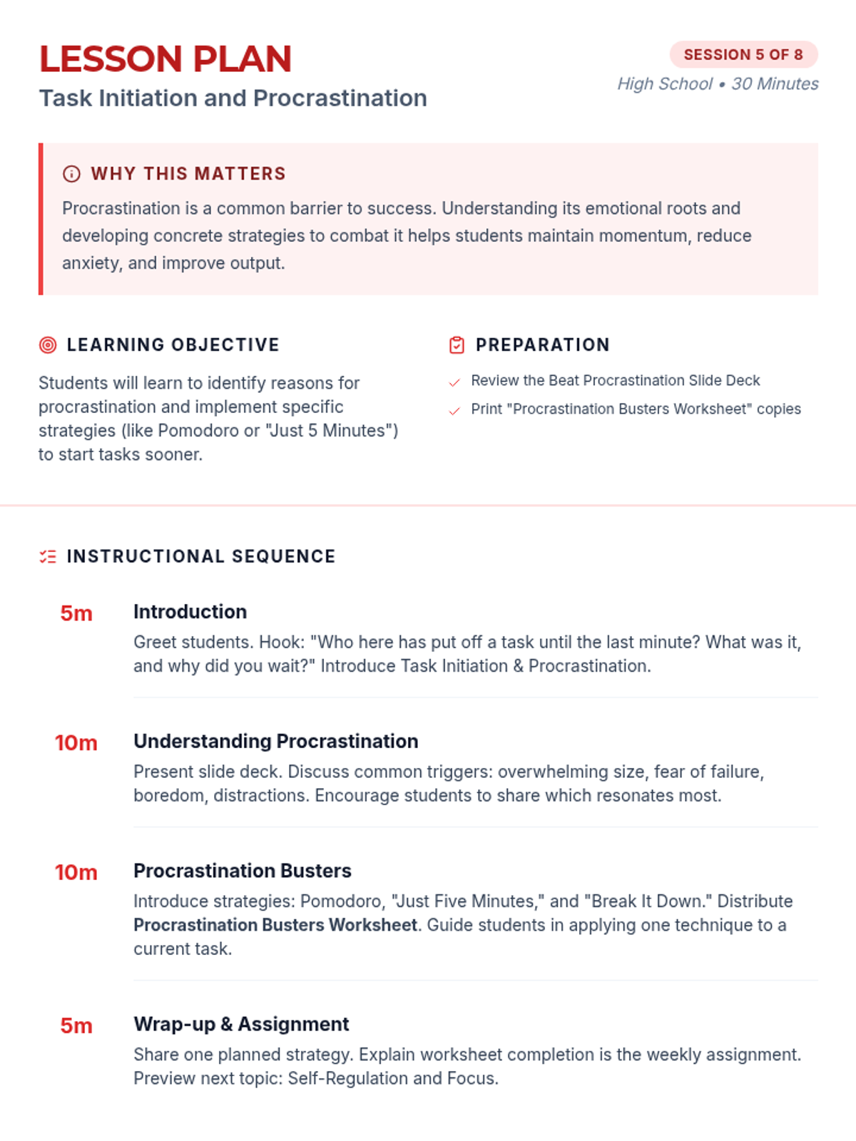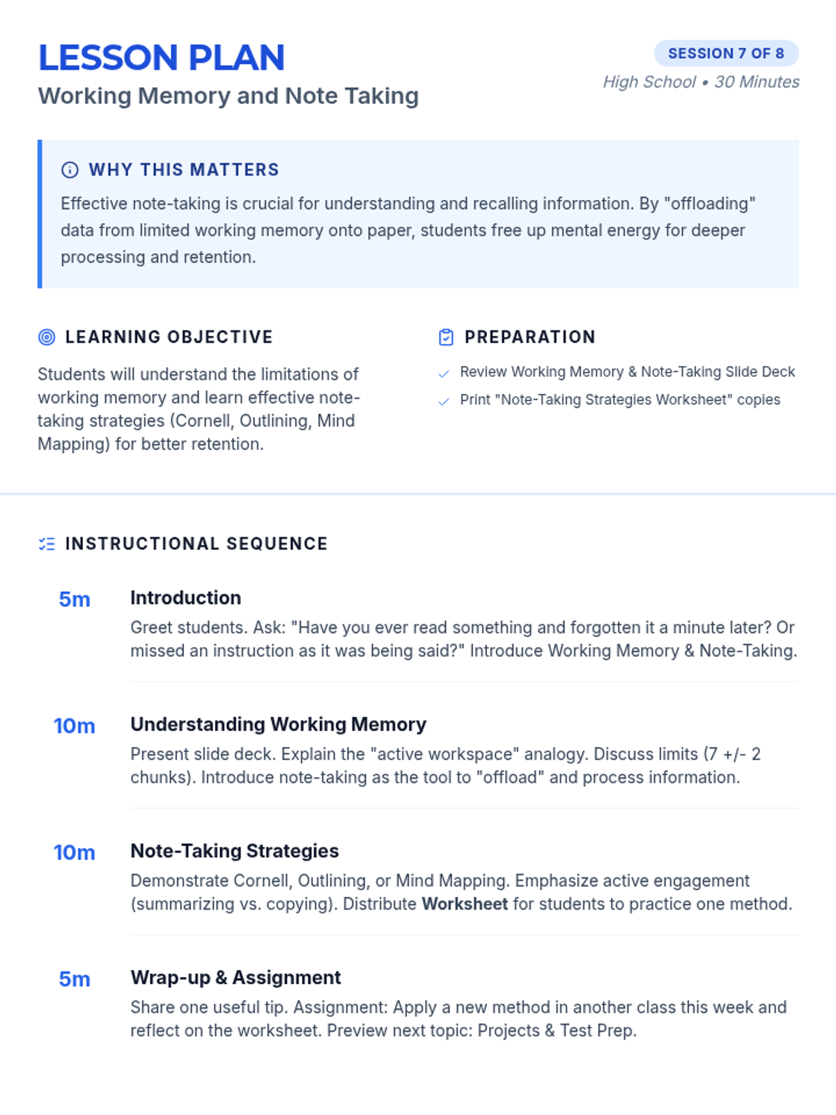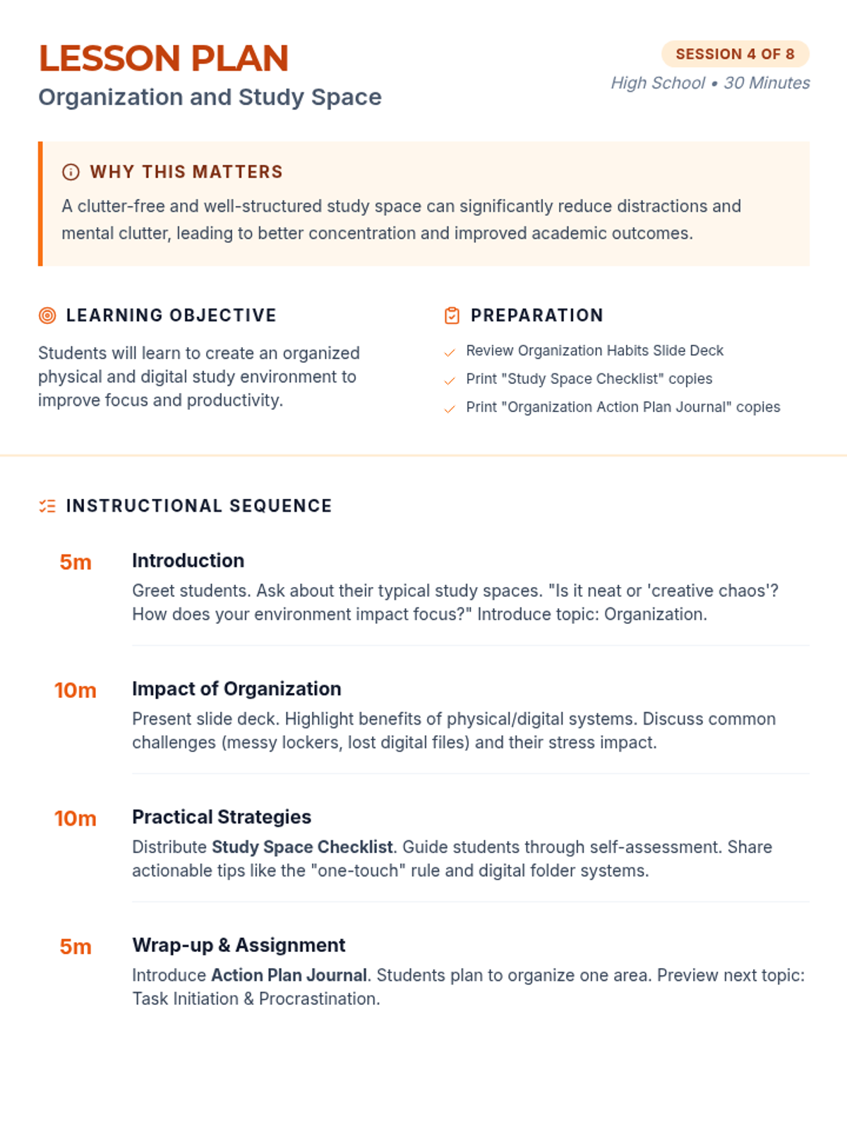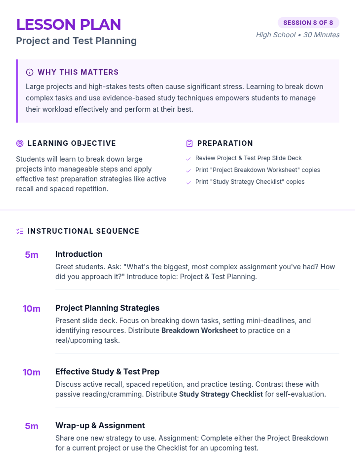 A comprehensive 8-session sequence designed for high school students to master their digital presence and develop essential executive function skills for academic and personal success.